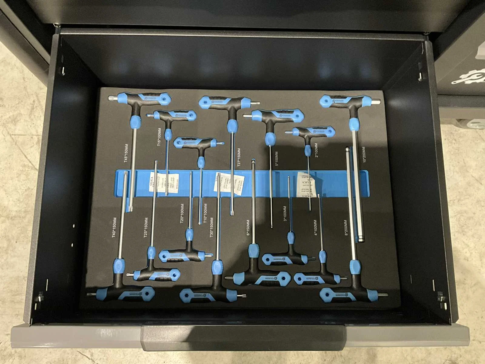 Staat: Ongebruikt, in de originele verpakking Aantal laden: 13 laden Aantal gevulde laden: 10 gevulde laden Gereedschap: Chrome Vanadium gereedschap Inhoud: 2 dopsleutel sets (1/2” & 1/4”) Momentsleutel (40-220 Nm) Impact-doppen (10-22 mm) Ringsteeksleutel set (6-32 mm) Ringratelsleutel set (8-19 mm) Inbussleutel set (1,5-10 mm) Ringsleutel set (6-32 mm) Torx sleutel set (T8-T70) Schroevendraaier set (21 stuks) Tangen set (9 stuks) Beitel en doorslagen set (18 stuks) Vijlen set (5 stuks) T-greep dopsleutel set (7-14 mm) T-greep torx sleutel set (T15-T45) Hamers (3 stuks) VDE gereedschap (3 tangen en 7 schroevendraaiers) Enzovoort... Nee Merk: Stahlgruppe Type: Jumbo Bouwjaar: 2025 Aantal laden: 13 Met inhoud: true Eigen gewicht: 153kg Totale afmeting L: 1150mm Totale afmeting Breedte: 550mm Totale afmeting Hoogte: 1100mm