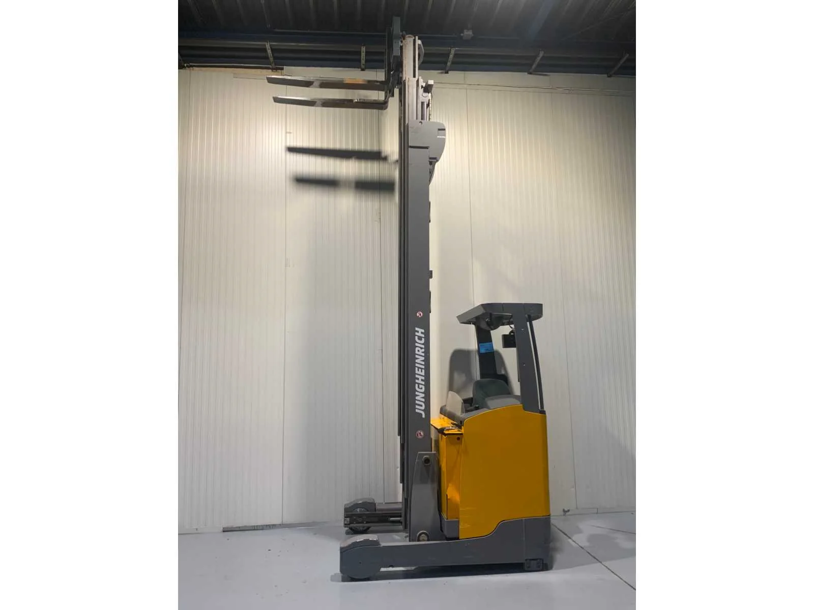 Extra opties: Camera op vorken, 360 graden functie, Vorken positioneer functie, Nee Merk: Jungheinrich Type: ETV 216 Bouwjaar: 2016 Serienummer: 91104865 Brandstof: Elektrisch Mast: Triple Aantal wielen: 3 Afgelezen urenstand: 4013 Free-lift: true Side-shift: true Triple mast: true Eigen gewicht: 5110kg Hefvermogen: 1600kg Lepellengte: 1200mm Max. hefhoogte: 10250mm Hefhoogte: 10250mm Totale afmeting L: 2500mm Totale afmeting Breedte: 1260mm Totale afmeting Hoogte: 3950mm Elektrisch: true