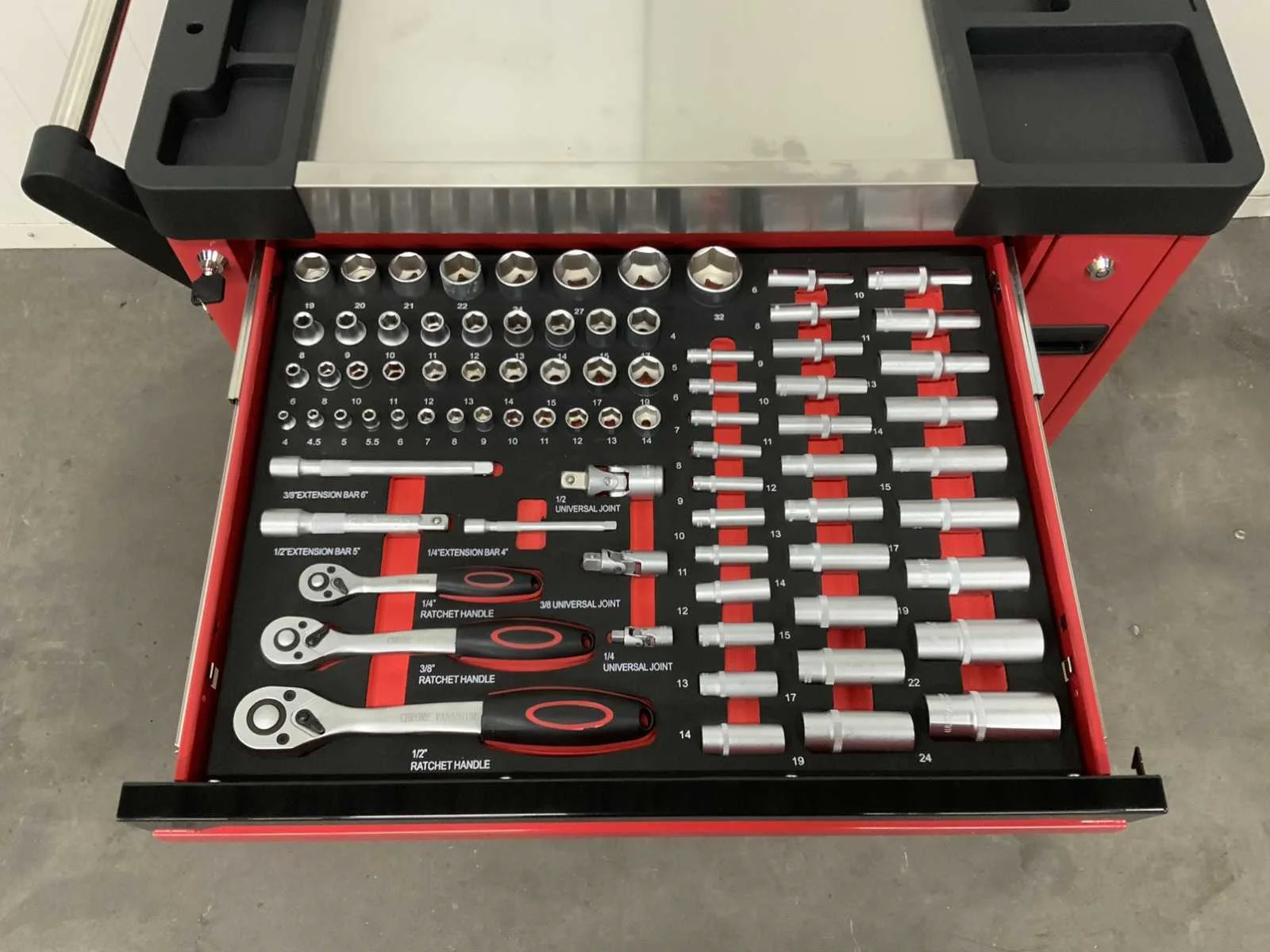 7 laden incl. gereedschap v.v. 2 zwenkwielen; ongebruikt in doos Nee Merk: Sg Tools Type: Uitschuifrek Bouwjaar: 2025 Aantal laden: 7 Met inhoud: true Totale afmeting L: 845mm Totale afmeting Breedte: 460mm Totale afmeting Hoogte: 975mm