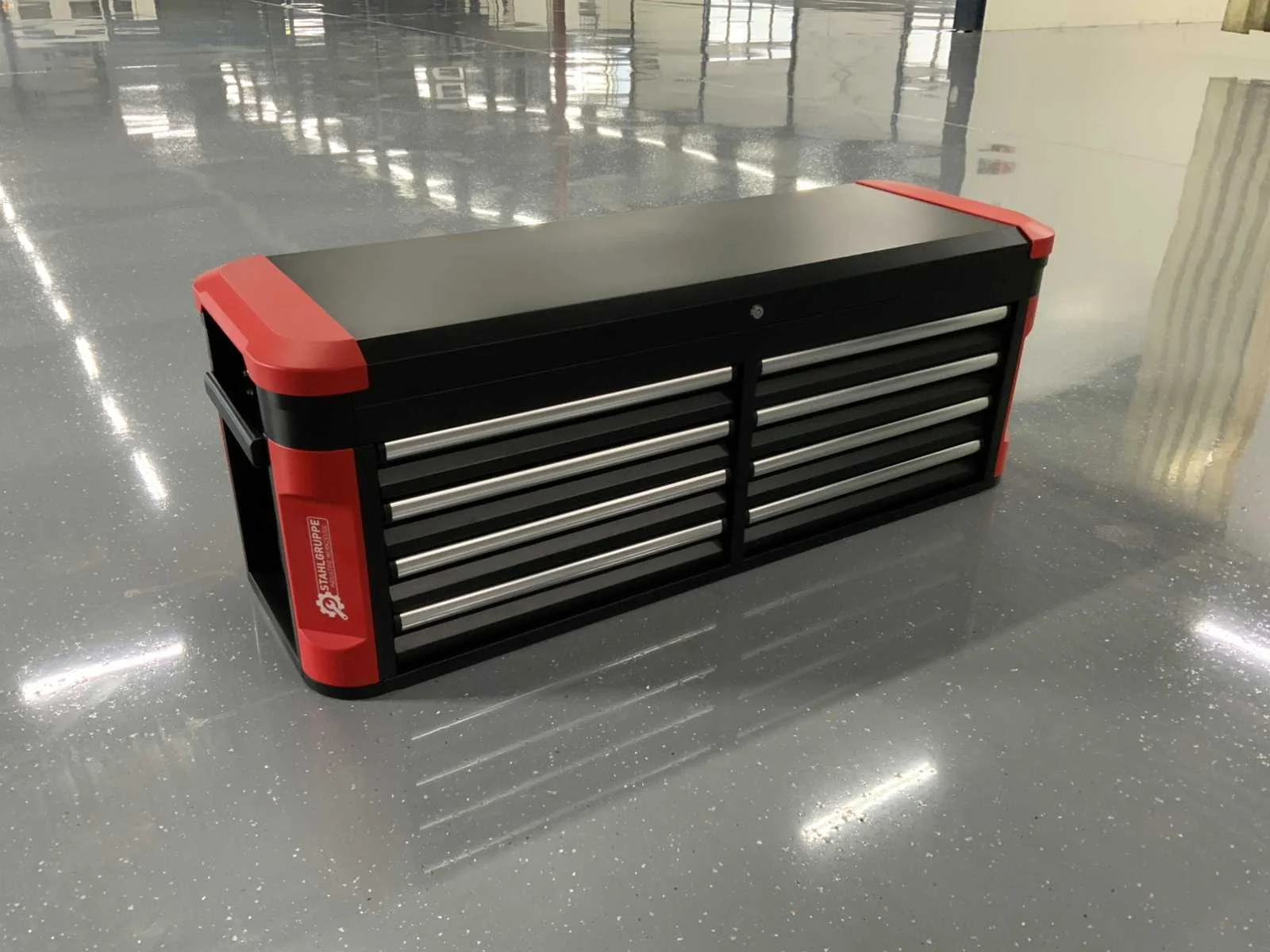 13 Laden, 9 gevuld, 327 pcs gereedschap. Kar met afneembare topbox Top box met 8 laden en boven klep Kar met 5 laden en kast met dubbele openslaande deuren Hoeken schuin afgewerkt met bumpers Stevig kunststof handvaten 2 zwenkwielen waarvan 2 geremd Hoge kwaliteit cilinder sloten Mat zwart afgewerkt met rode accenten Nee Merk: Stahlgruppe Type: XL PRO Deluxe Bouwjaar: 2025 Aantal laden: 13 Met inhoud: true