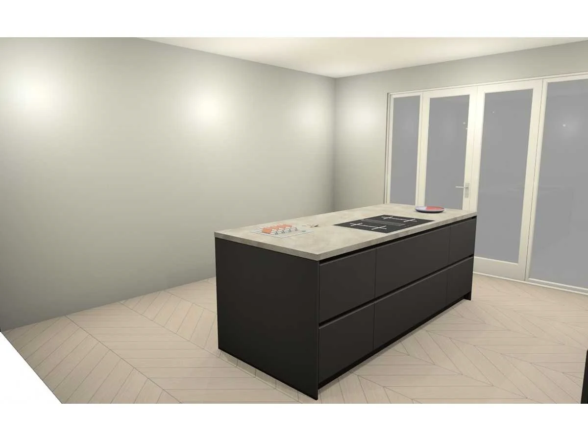 Miele KMDA7473FR-U Inductiekookplaat inclusief afzuigsysteem, 4 kookzones, 2 flex zones, 80cm. Let op! Staat niet opgesteld in de showroom, enkel via 3D tekening; wordt geleverd ongebruikt in doos. Let op! Excl. Kraan en accessoires. Nee Merk: Häcker Concept130 Model: TOP SOFT-GL grafiet mat lak Type keukenopstelling: Eiland Lengte: 270cm Breedte: 60cm Hoogte: 218cm Gootsteen: Reginox amsterdam 50 pure black Pure opbouw Werkblad hoogte: 92cm Aanrechtblad: HPL kalksteen repro (115) 3.8cm Softclose: true Oven: Miele H7240BMCLST Compacte multifunctionele oven met magnetronfunctie PureLine, inhoud 43 liter, nis 45cm Vaatwasser: Miele G5150SCVI Volledig integreerbare vaatwasmachine met 5 reinigingsprogramma's waaronder QuickPowerWash, 3 opties, capaciteit 14 couverts, geluidsniveau 45 dB(A) Lengte kookeiland: 244cm Breedte kookeiland: 100cm Hoogte kookeiland: 92cm Plintkleur: grafiet mat Hoofdkleur: grafiet mat lak Style: Modern greeploos Kleur: grafiet mat lak