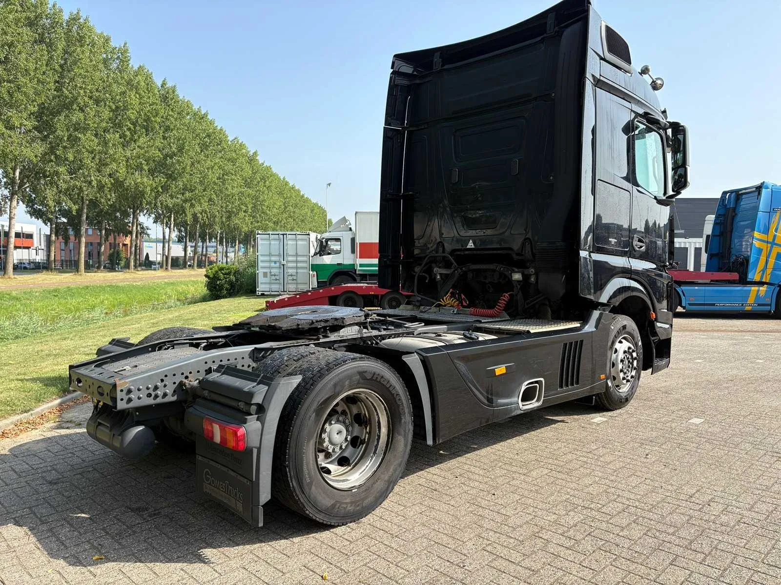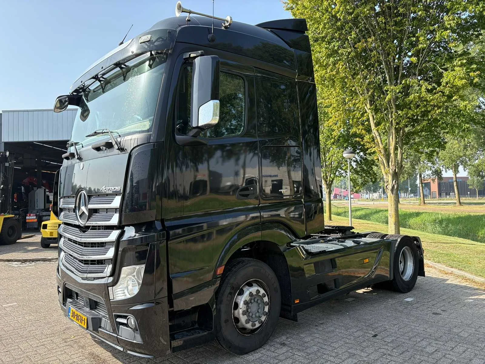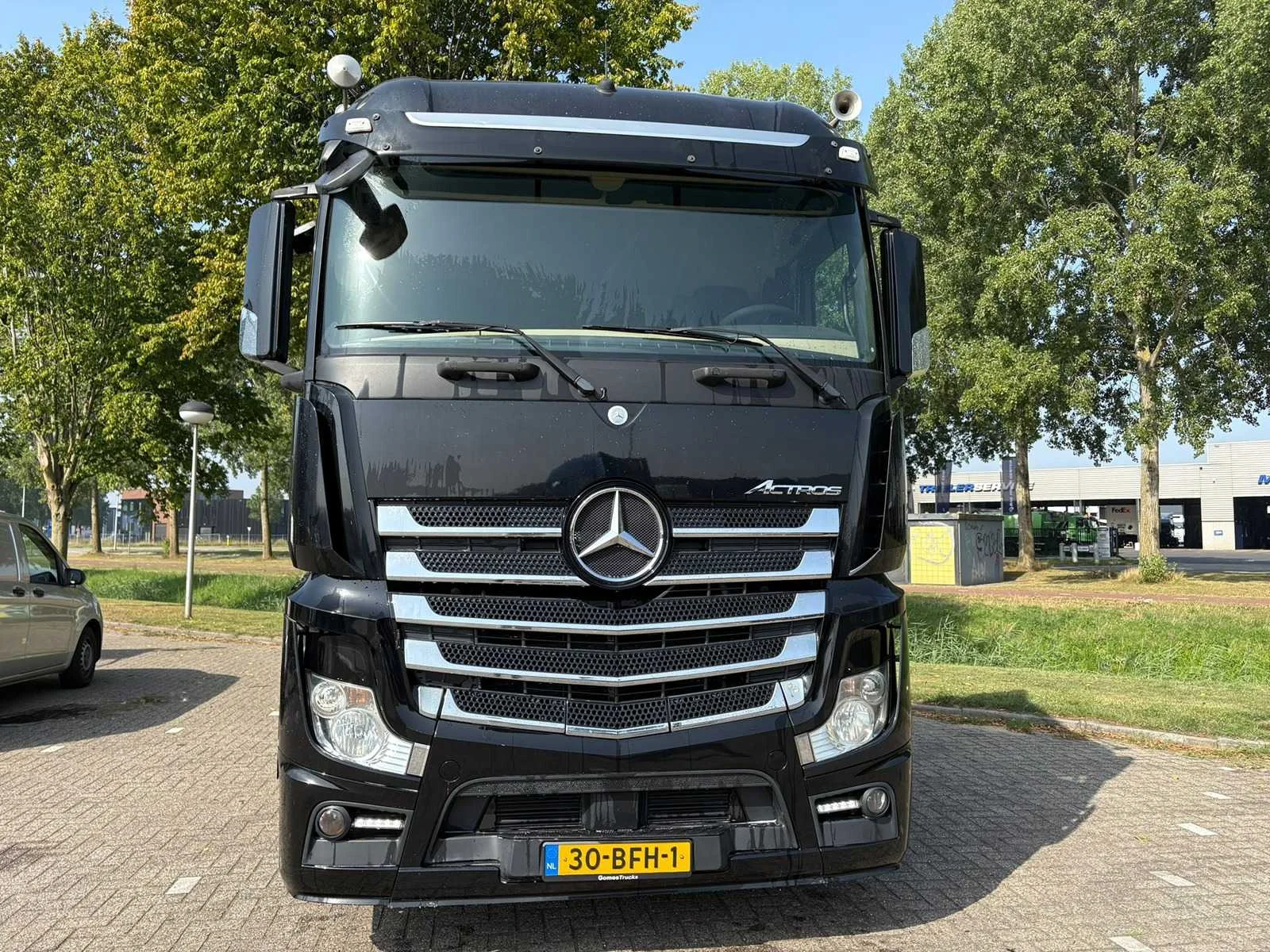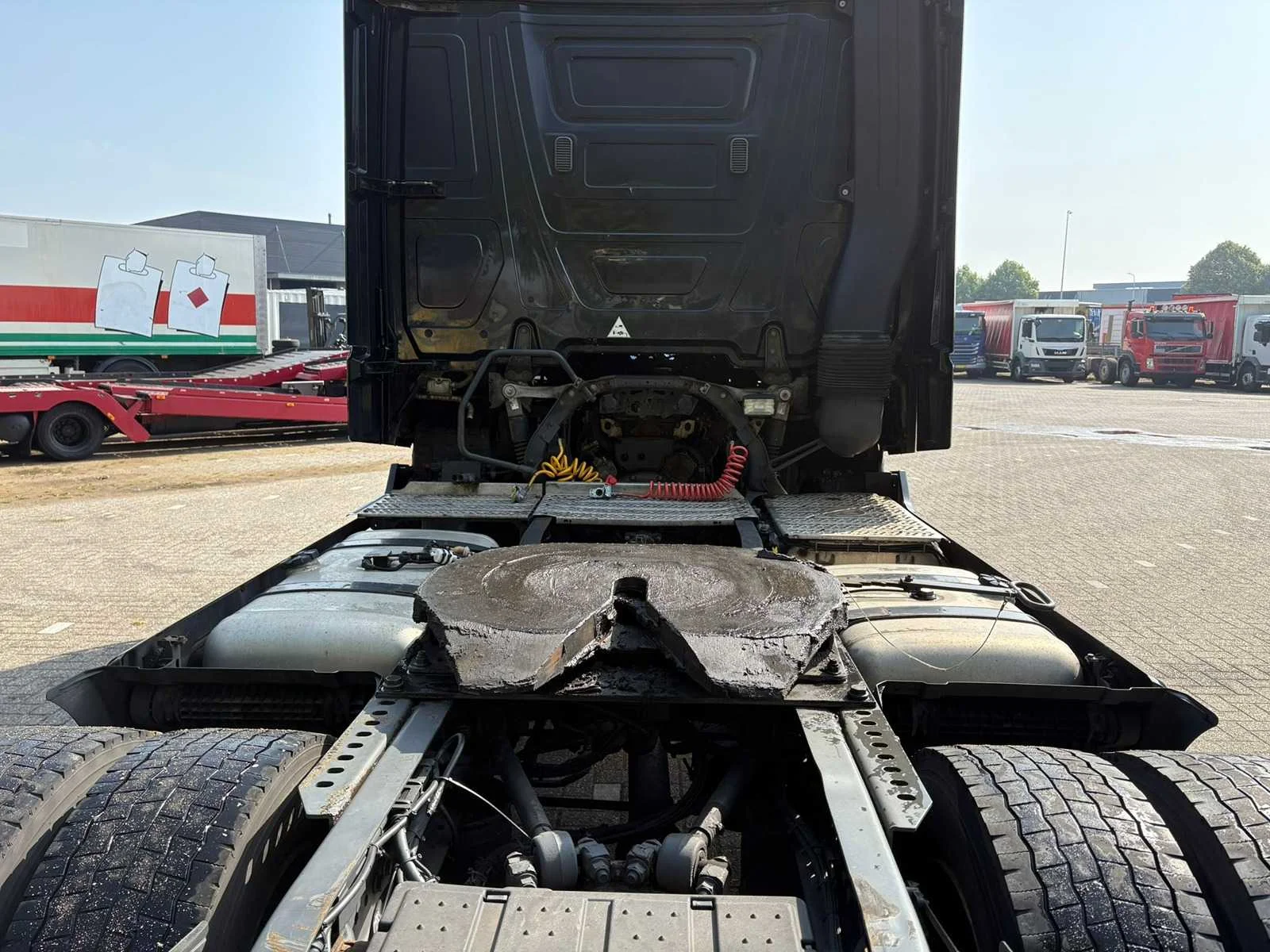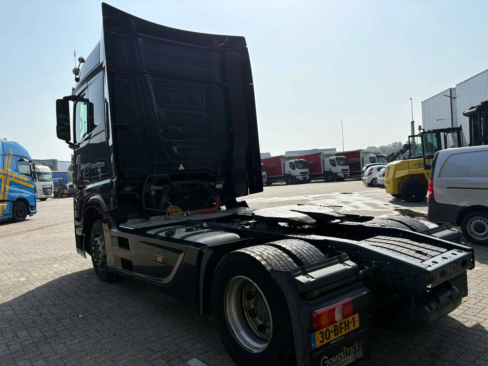 - Motor Merk: Mercedes Benz OM470 Type: in lijn Vermogen: 400 PK (294 kW) Brandstof: Diesel Turbo, Intercooler Volume: 10.700 cm³ Aantal cilinders: 6 Euro: Euro 6 Versnellingsbak Merk: Mercedes-Benz Type: PowerShift Assen: Aantal assen: 2 Configuratie assen: 4x2 Vering: veer/lucht Wielbasis: 3.700 mm Eerste as: 315/70r22,5, restant 30 %, remmen - schijfremmen Tweede as: 315/70r22,5, restant 30 %, remmen - schijfremmen Remmen: AutoHold, ABD, ABS, EBS, Motorrem - Cabine en comfort Boordcomputer Cruise control (tempomaat) Koelkast Schuifdak Elektrische spiegels Spiegelverwarming Spoilers Luchtgeveerde stoelen Zonneklep Cabine Type: MegaSpace - Extra opties Airco Standkachel: Webasto Elektrische ramen: voorkant Stuurwielverstelling: op hoogte en bereik Stuurbekrachtiging: hydraulisch Stoelverwarming Veiligheidsfuncties Airbag Luchthoorn Alarm systeem Centrale vergrendeling Startonderbreker Snelheidsbegrenzer Differentieelblokkering ESP Optiek Mistlampen Aanvullende uitrusting ASR AdBlue tank - Conditie: gebruikt Technische staat: eerste eigenaar, functioneert, in goede staat Technische inspectie geldig tot: 2025-11 Kleur: zwart, metallic Overige details — Mercedes-Benz Actros 1940 trekker Kenmerken van de Mercedes-Benz Actros 1940 - Motor: OM4710 zescilinder dieselmotor met 400pk - Transmissie: Mercedes PowerShift 3 geautomatiseerde versnellingsbak. - Brandstofverbruik: Zeer efficiënt door Euro 6-technologie. - Spoilerset - Metalic zwart met Chrome accenten - Luchthoorns - 2x dieseltank Nee Kenteken: 30-BFH-1 Merk: Mercedes-Benz Type: Actros 1940 Bouwjaar: 2014 Cilinderinhoud: 12809cc Kilometerstand bij opname: 876868km APK vervaldatum: 2025-11-02 Datum eerste toelating: 2014-10-31 Datum eerste toelating (NL): 2014-10-31 Aantal assen: 2 Asconfiguratie: 4x2 Fuel Type: Diesel Laadvermogen: 11649kg Emissieklasse: 6 Slaapcabine: true Eigen gewicht: 7351kg Afgelezen kilometerstand: 876868km Nationaliteit documenten: NL Aantal zitplaatsen: 2 Automaat: true Diesel: true