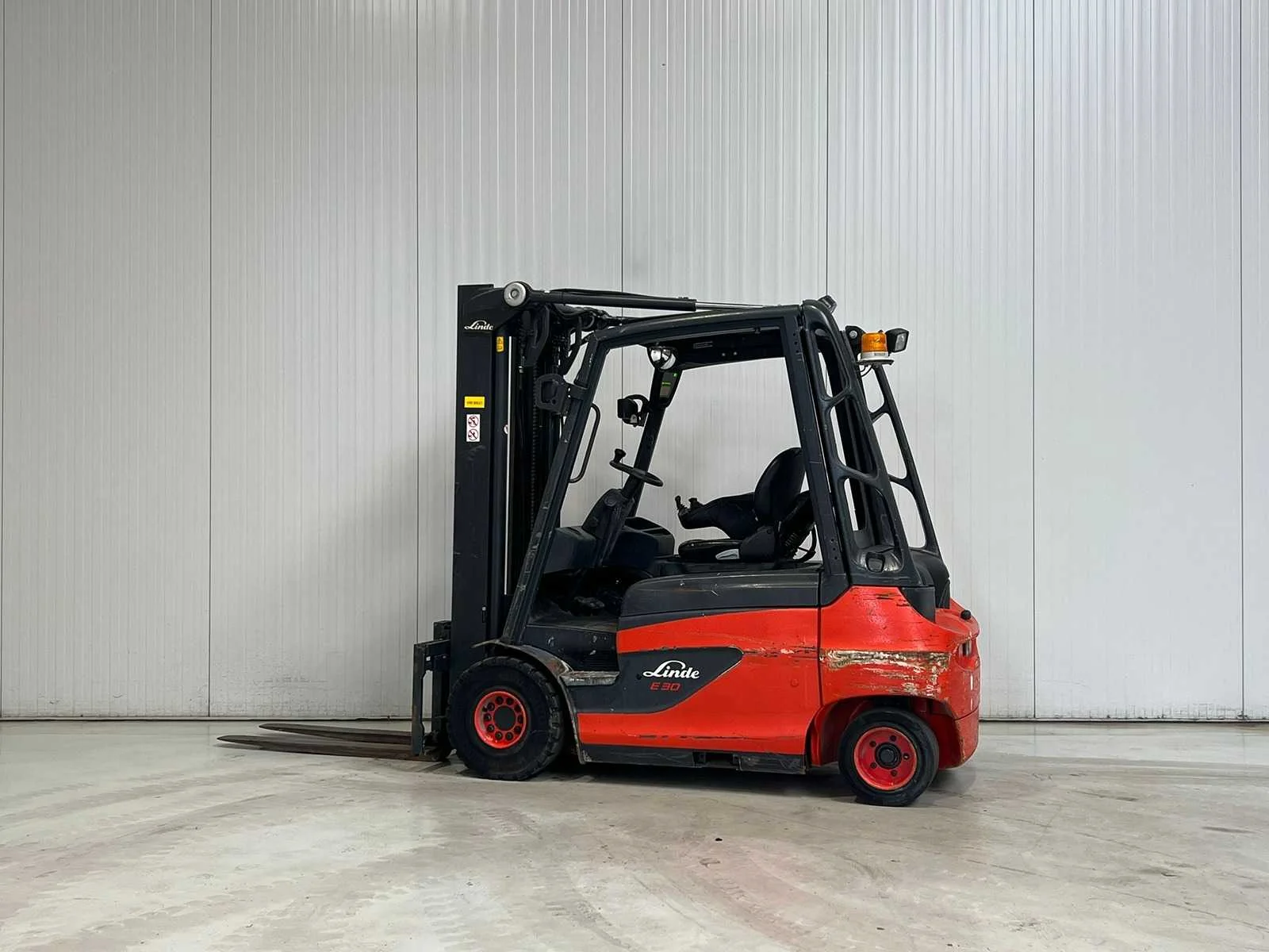 Nee Merk: Linde Type: E30-01 Bouwjaar: 2014 Brandstof: Electric Mast: Duplo Aantal wielen: 4 Afgelezen urenstand: 1227 Side-shift: true Duplex mast: true Eigen gewicht: 5200kg Hefvermogen: 3000kg Hefhoogte: 3190mm Vol rubber banden: true Totale afmeting L: 2500mm Totale afmeting Breedte: 1200mm Totale afmeting Hoogte: 2350mm