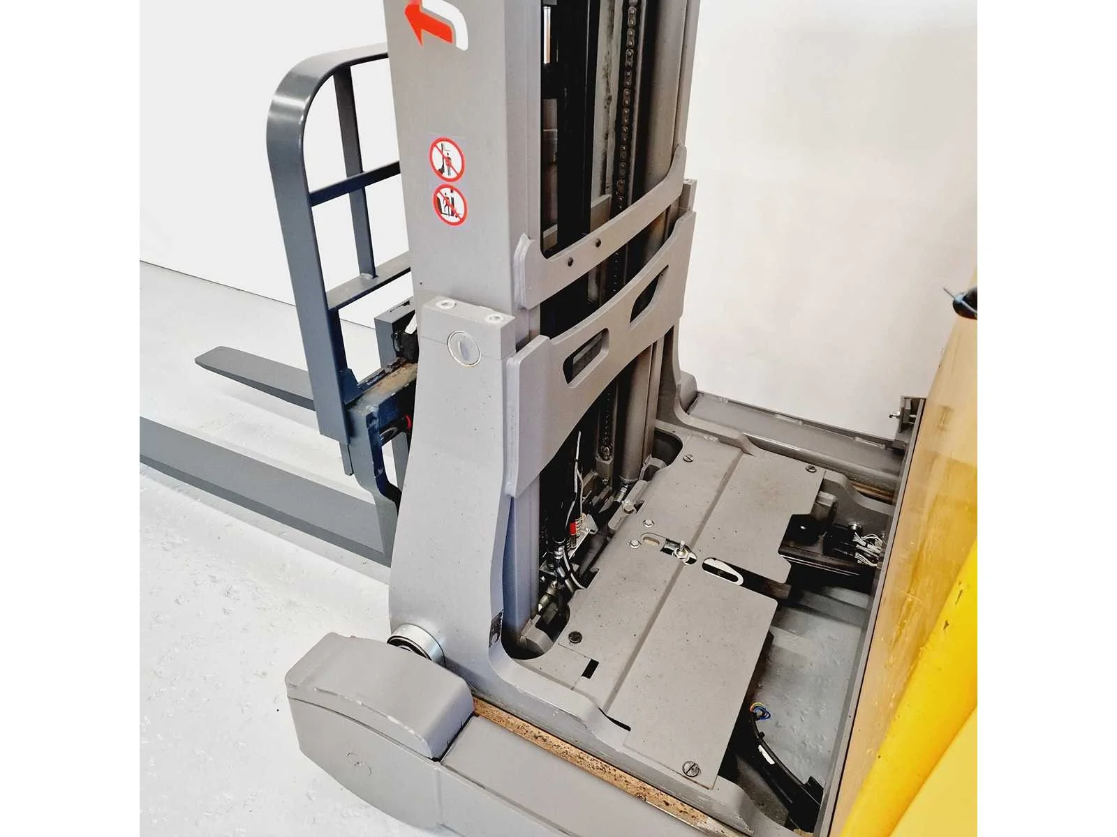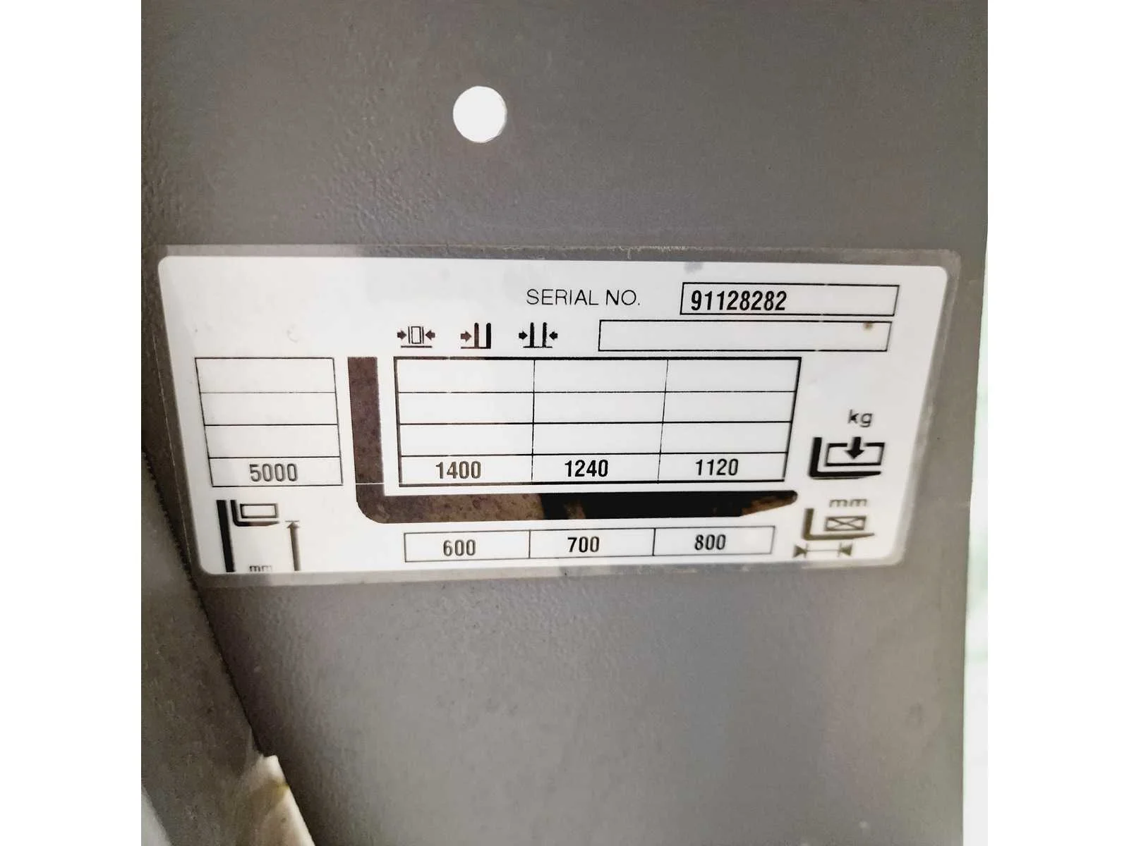 Keuring 2025 Bezichtiging op afspraak Nee Merk: Jungheinrich Type: ETV 214 Bouwjaar: 2018 Serienummer: 91128282 Brandstof: Elektrisch Aantal wielen: 3 Afgelezen urenstand: 13522 Free-lift: true Triple mast: true Eigen gewicht: 3315kg Hefvermogen: 1400kg Lepellengte: 1200mm Hefhoogte: 5000mm Totale afmeting L: 2400mm Totale afmeting Breedte: 1250mm Totale afmeting Hoogte: 2200mm Elektrisch: true Vol rubber banden: true