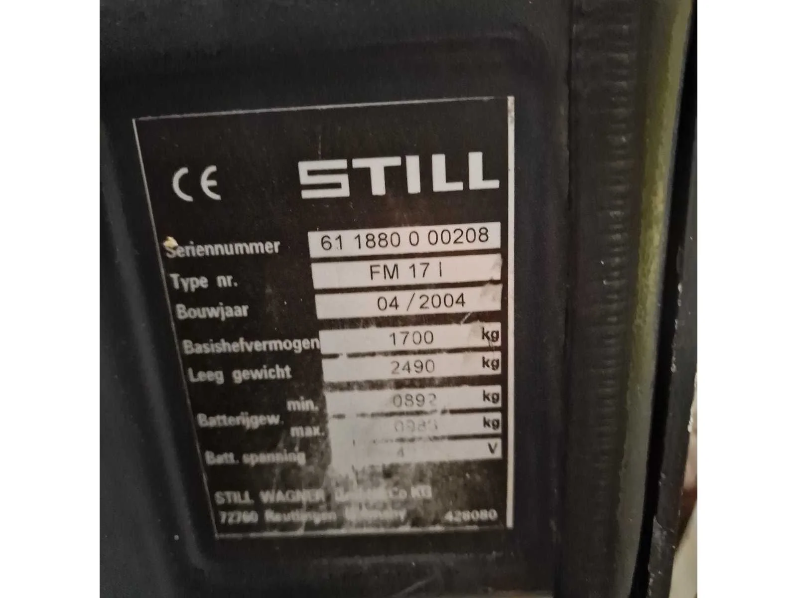 Bezichtiging op afspraak Nee Merk: Still Type: FM17 Bouwjaar: 2007 Serienummer: 61188000208 Brandstof: Elektrisch Aantal wielen: 3 Triple mast: true Eigen gewicht: 3500kg Hefvermogen: 1700kg Hefhoogte: 7100mm Totale afmeting L: 2200mm Totale afmeting Breedte: 1200mm Totale afmeting Hoogte: 2700mm