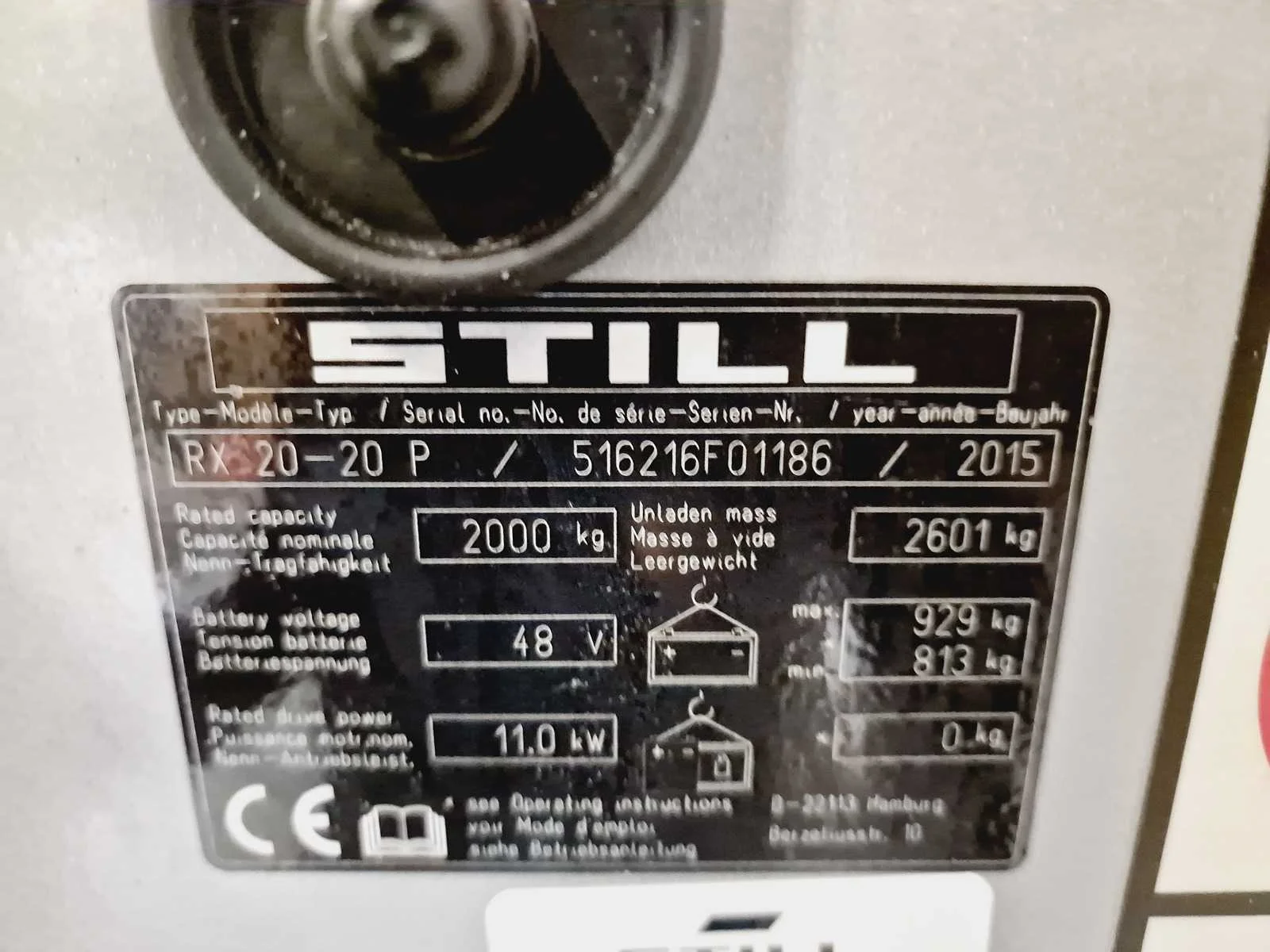Nieuwe banden. 4De functie tot vorkenbord Nee Merk: Still Type: RX20-20 Bouwjaar: 2015 Brandstof: Elektrisch Afgelezen urenstand: 9399 Free-lift: true Side-shift: true Duplex mast: true Eigen gewicht: 3500kg Lepellengte: 1200mm Hefhoogte: 3300mm Totale afmeting L: 3200mm Totale afmeting Breedte: 1150mm Totale afmeting Hoogte: 2200mm