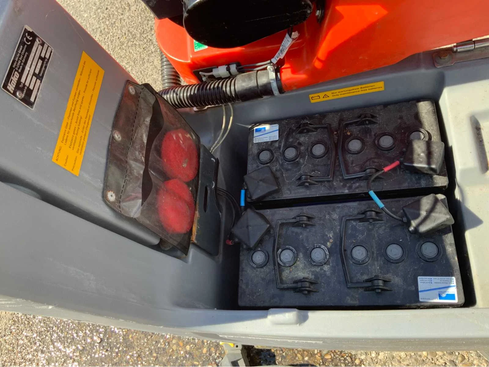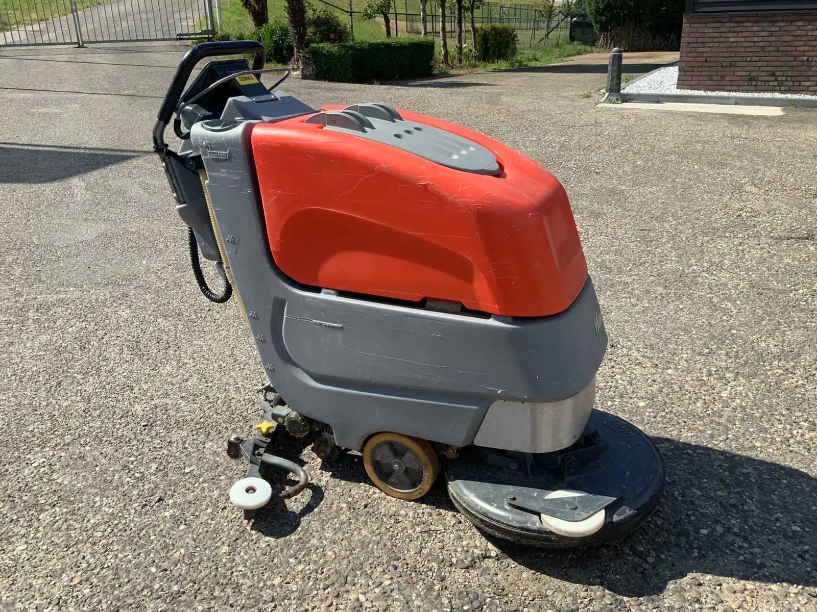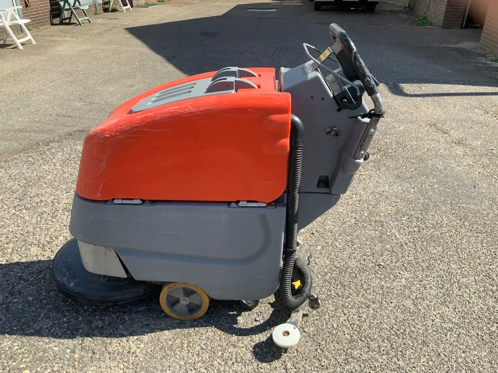 Voorzien van onderhoudsvrije gel-accu’s en interne acculader. Te bezichtigen op afspraak. Nee Merk: HAKO Type: B45CL Serienummer: 770062349161 Werkbreedte: 900mm Elektrisch: true Accu lader: true Aansluiting: 230V Eigen gewicht: 235kg Totale afmeting L: 1300mm Totale afmeting Breedte: 900mm Totale afmeting Hoogte: 1200mm