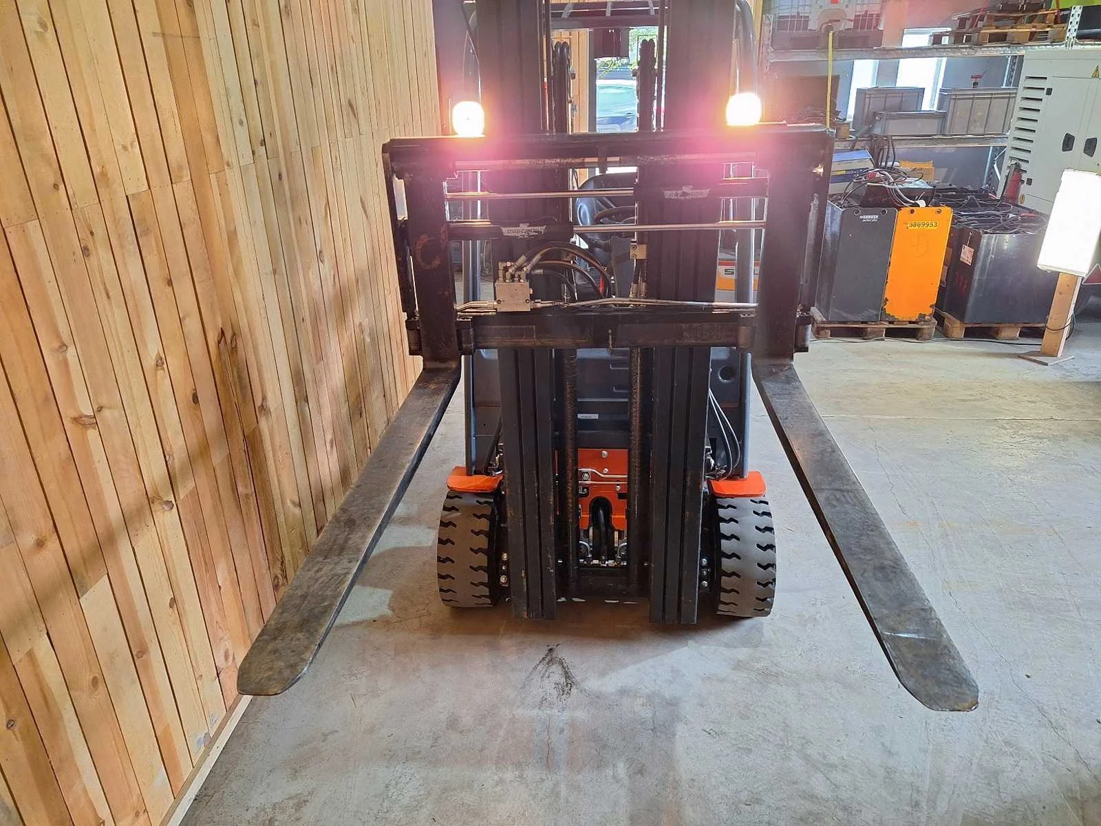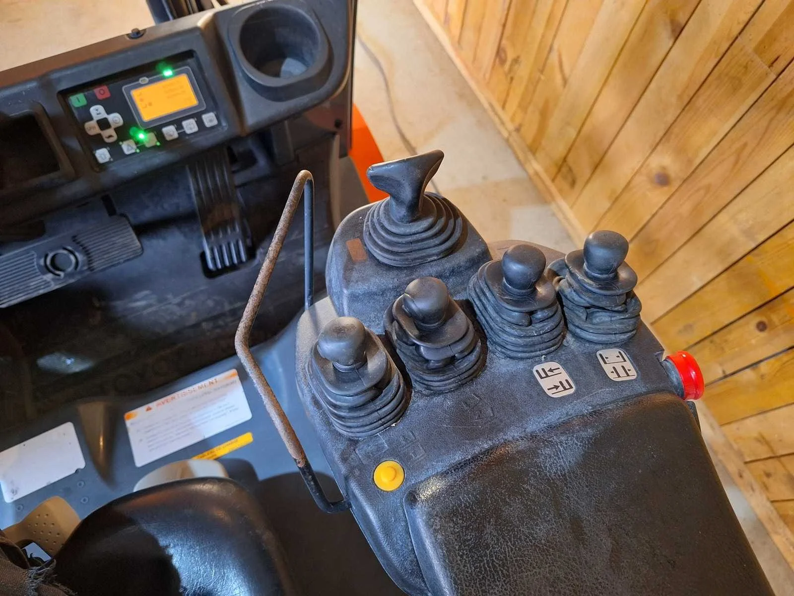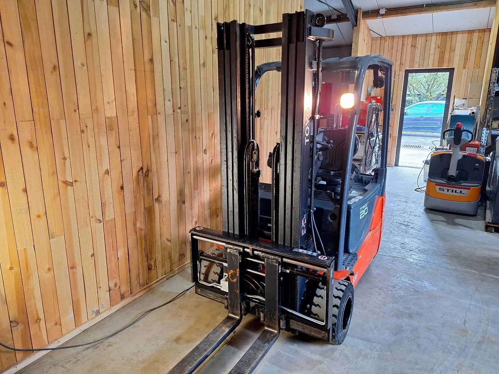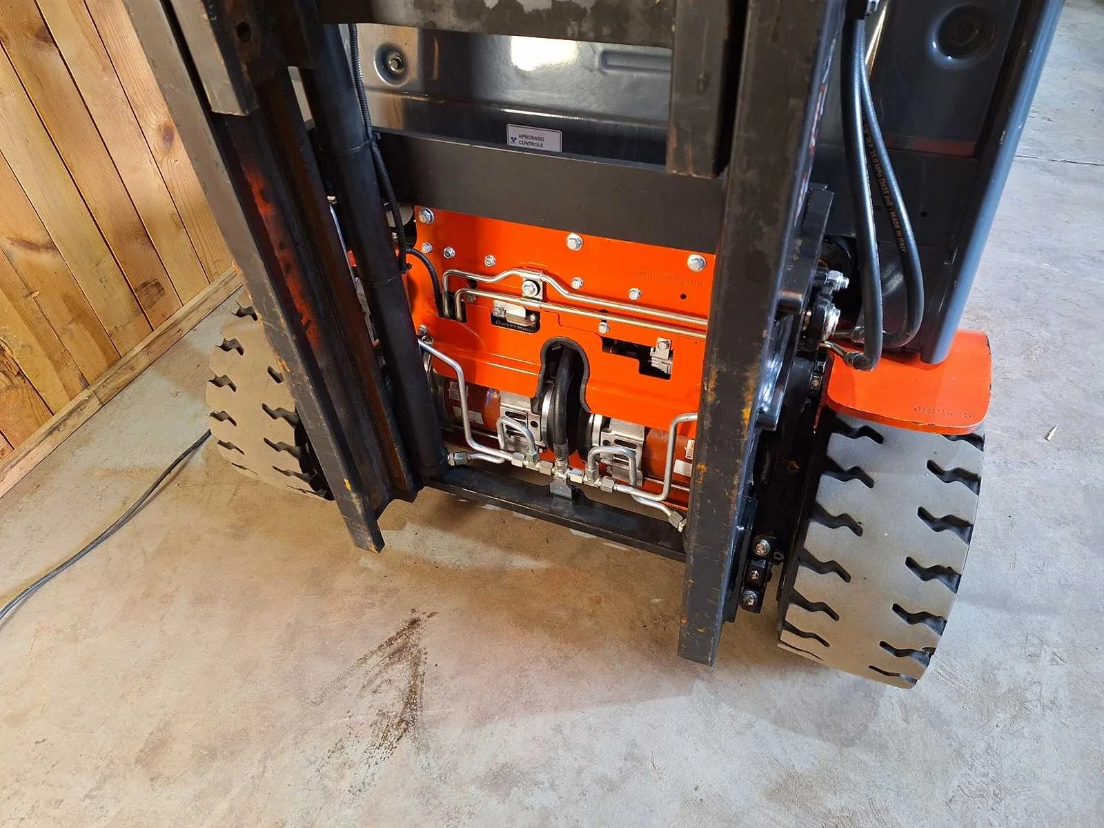 Maakt geluid in aandrijving Bezichtiging enkel op afspraak! Nee Merk: Toyota Type: 8 FBE 20T Bouwjaar: 2018 Serienummer: 13118 Brandstof: Elektrisch Aantal wielen: 3 Afgelezen urenstand: 2949 Free-lift: true Side-shift: true Hydraulisch verstelbare lepels: true Triple mast: true Eigen gewicht: 3750kg Hefvermogen: 2000kg Lepellengte: 1200mm Hefhoogte: 4700mm Vol rubber banden: true Totale afmeting L: 2050mm Totale afmeting Breedte: 1150mm Totale afmeting Hoogte: 2180mm
