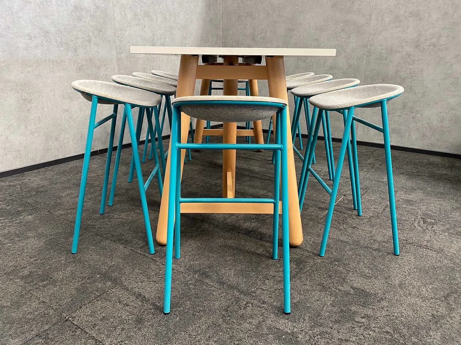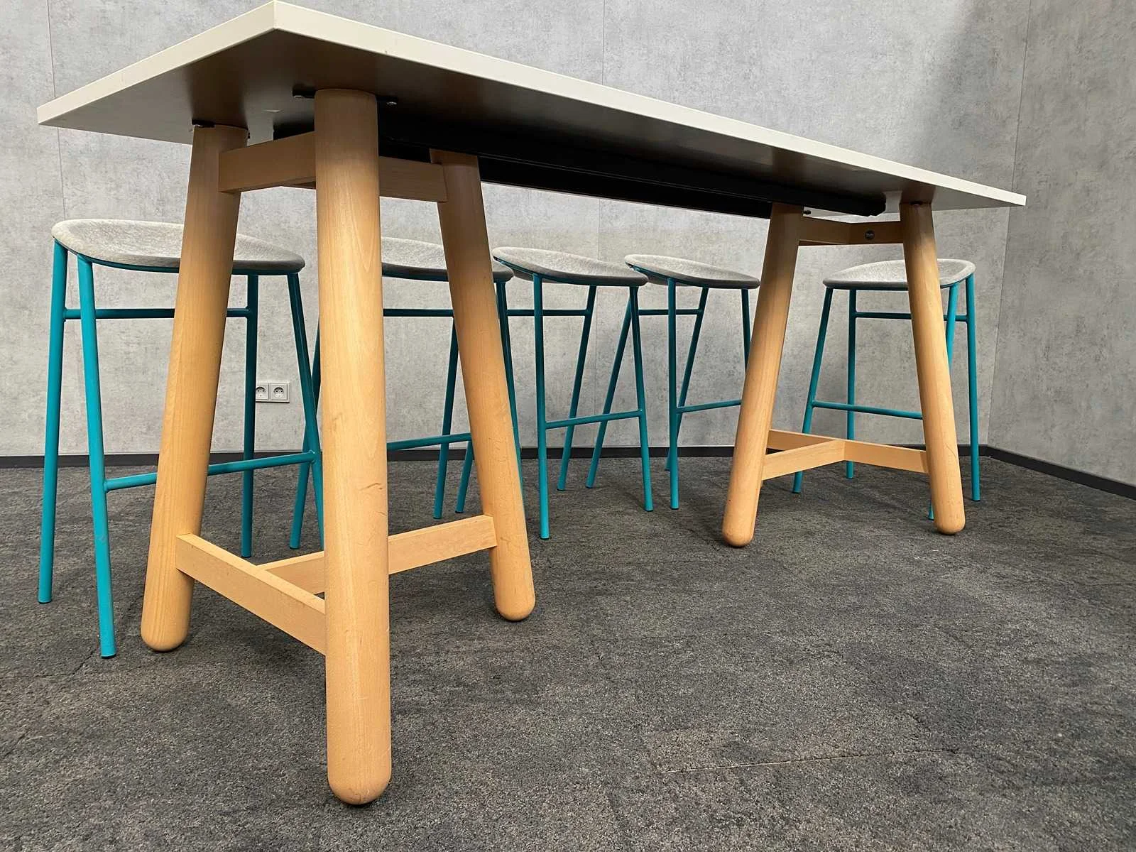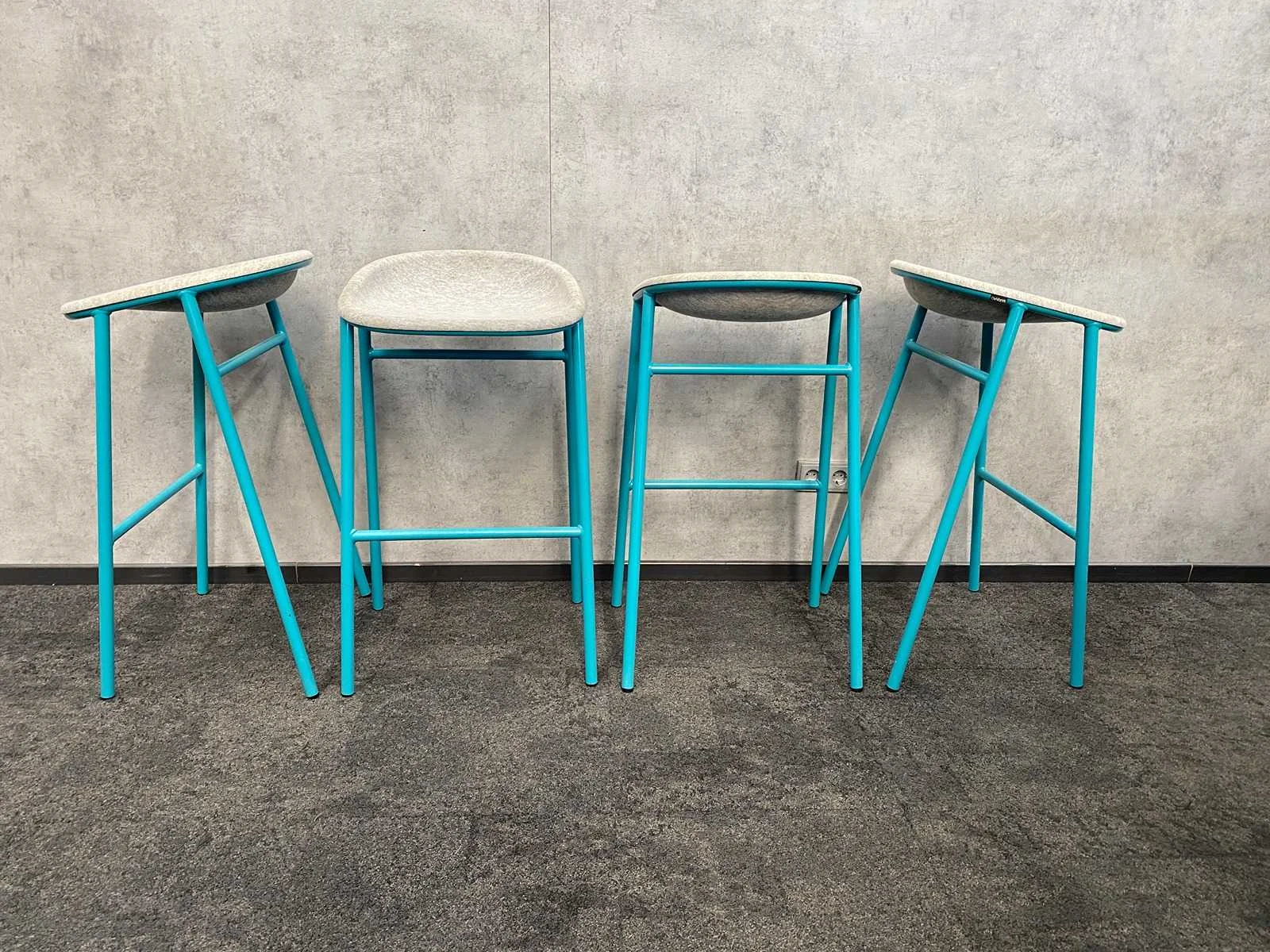 Duurzame barkrukken gemaakt van gerecycled PET-vilt Nee Merk: DeVorm/ DUM Kleur: paars, grijs, hout, zwart Lengte: 239cm Breedte: 89cm Hoogte: 104cm Zithoogte: 78cm