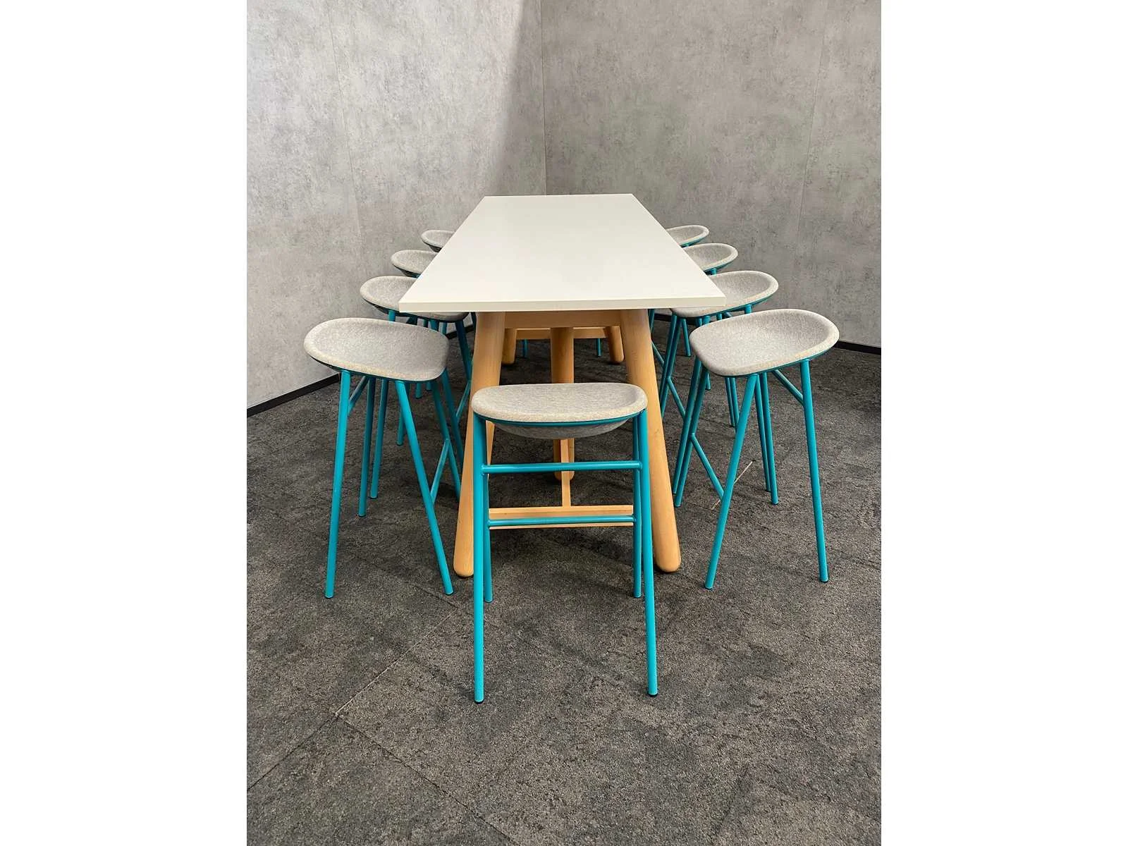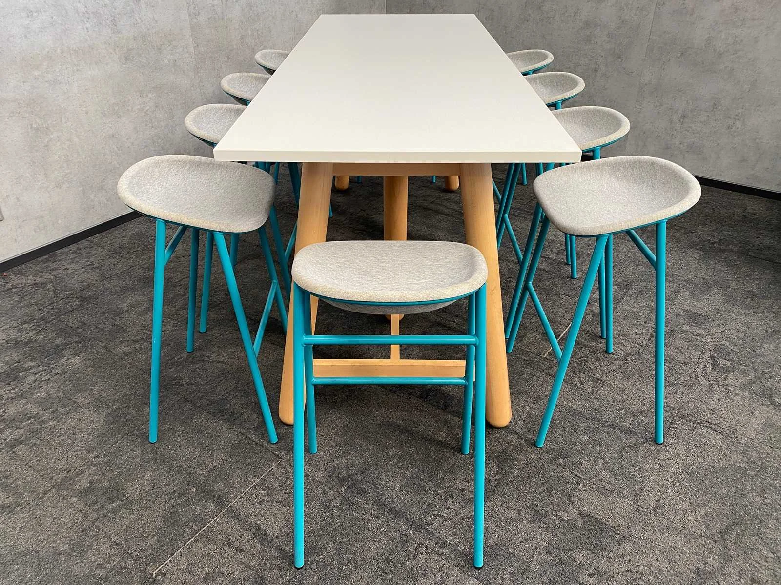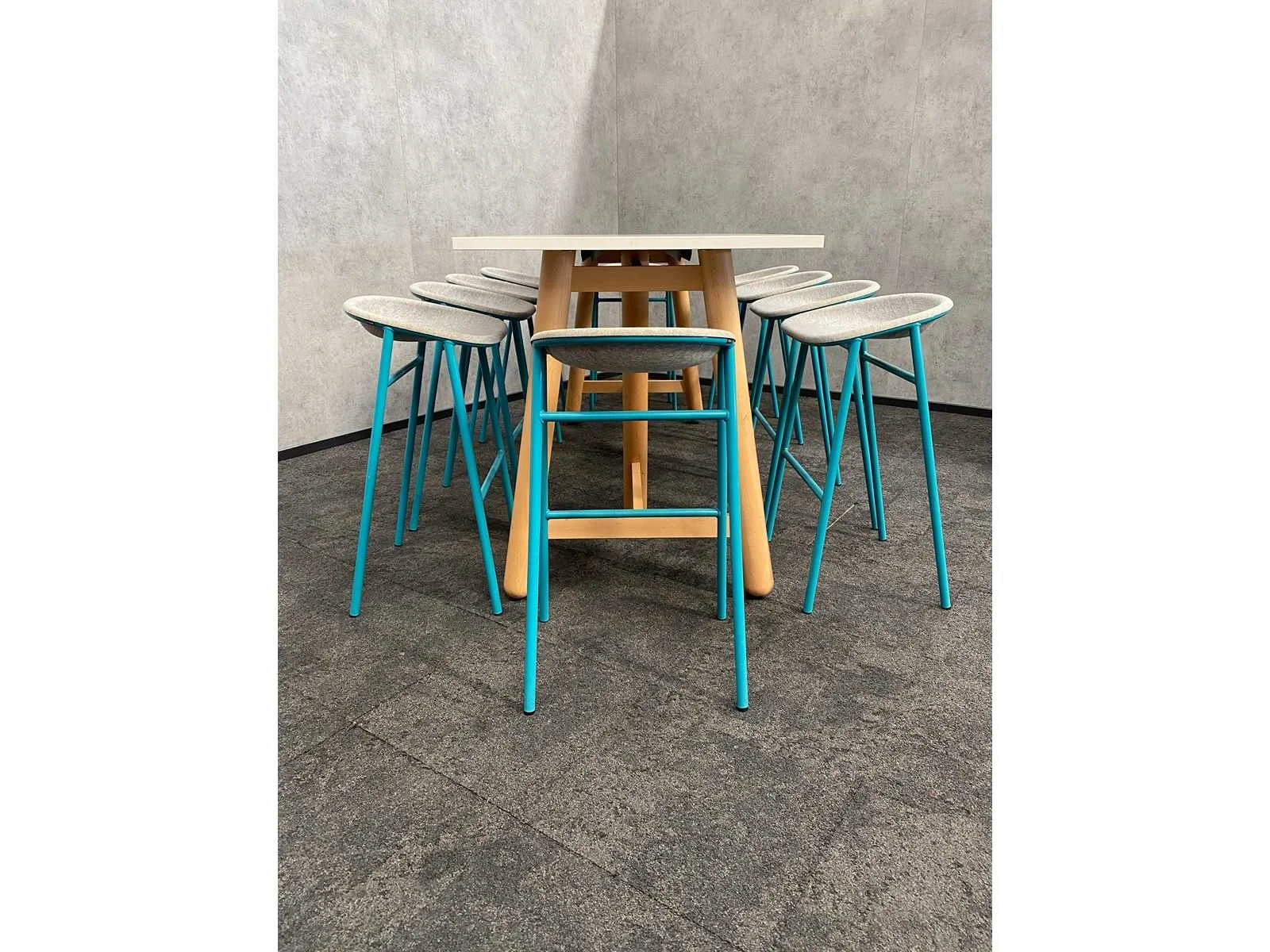 Duurzame barkrukken gemaakt van gerecycled PET-vilt Nee Merk: DeVorm/ DUM Kleur: paars, grijs, hout, zwart Lengte: 239cm Breedte: 89cm Hoogte: 104cm Zithoogte: 78cm