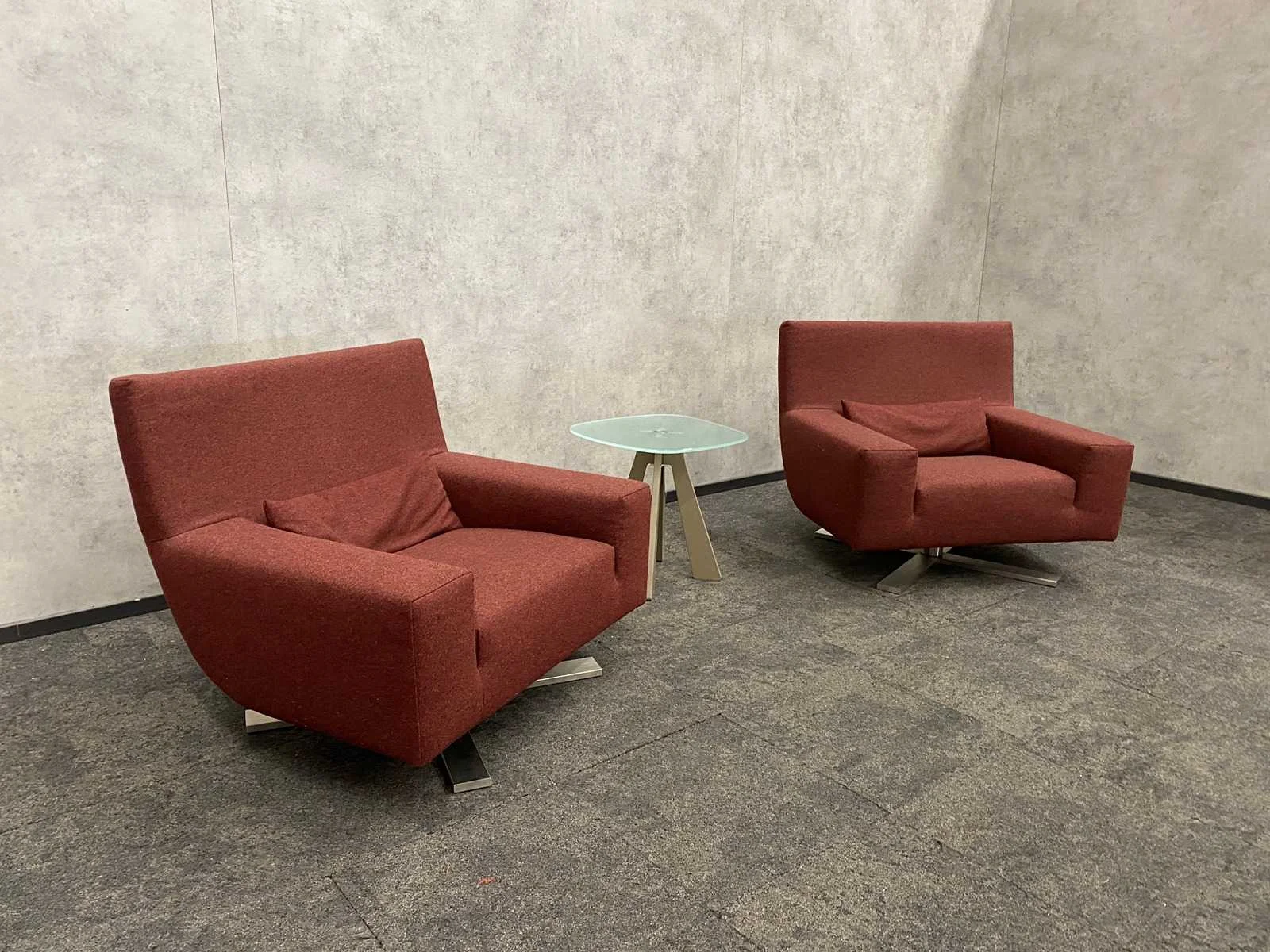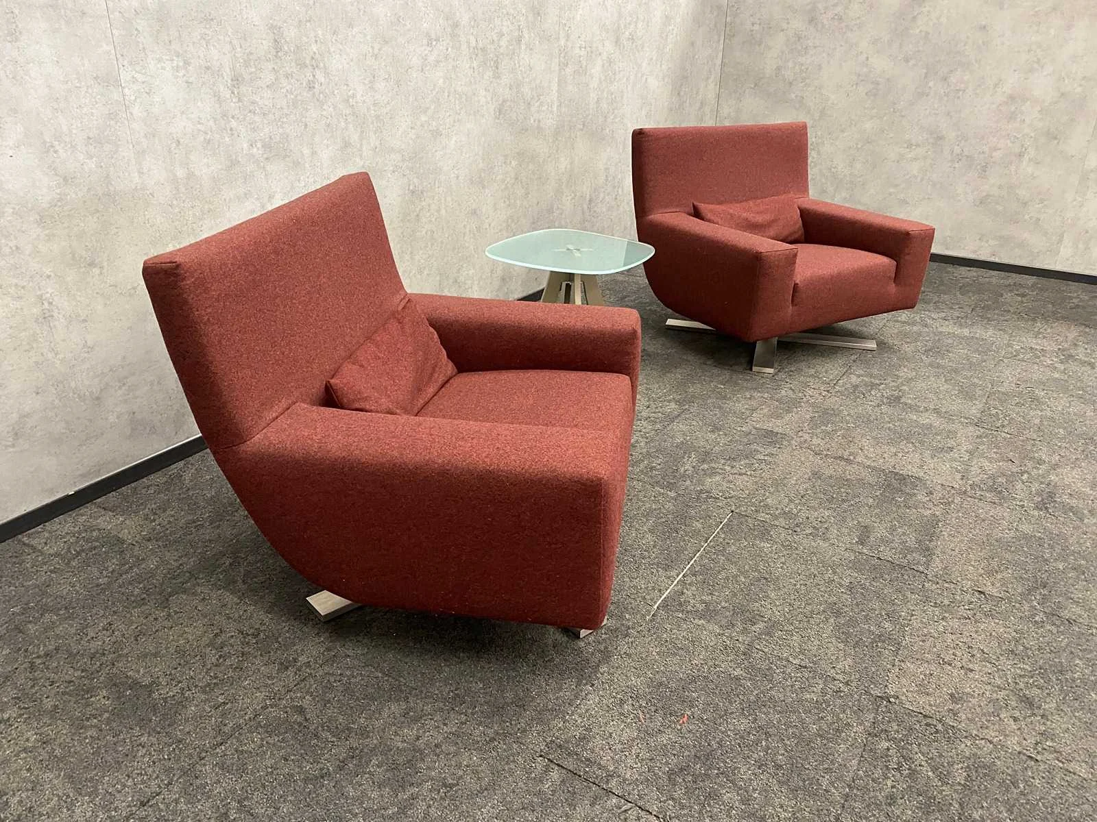 Afm. fauteuils ca. hxbxd 85x97x80 cm. --- Afm. Cascando salontafel ca. hxbxd 51x52x52 cm. Nee Kleur: mauve Zithoogte: 40cm