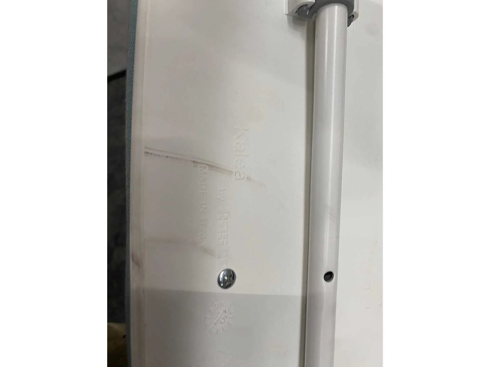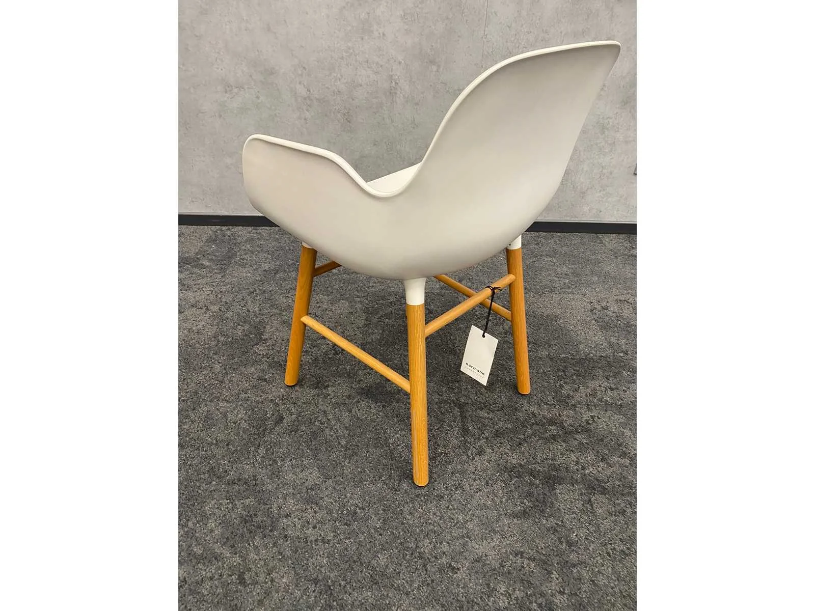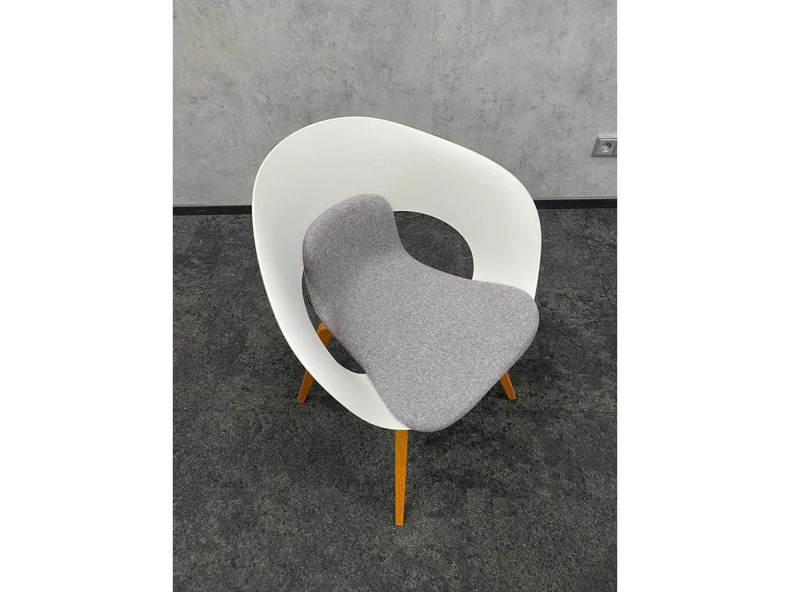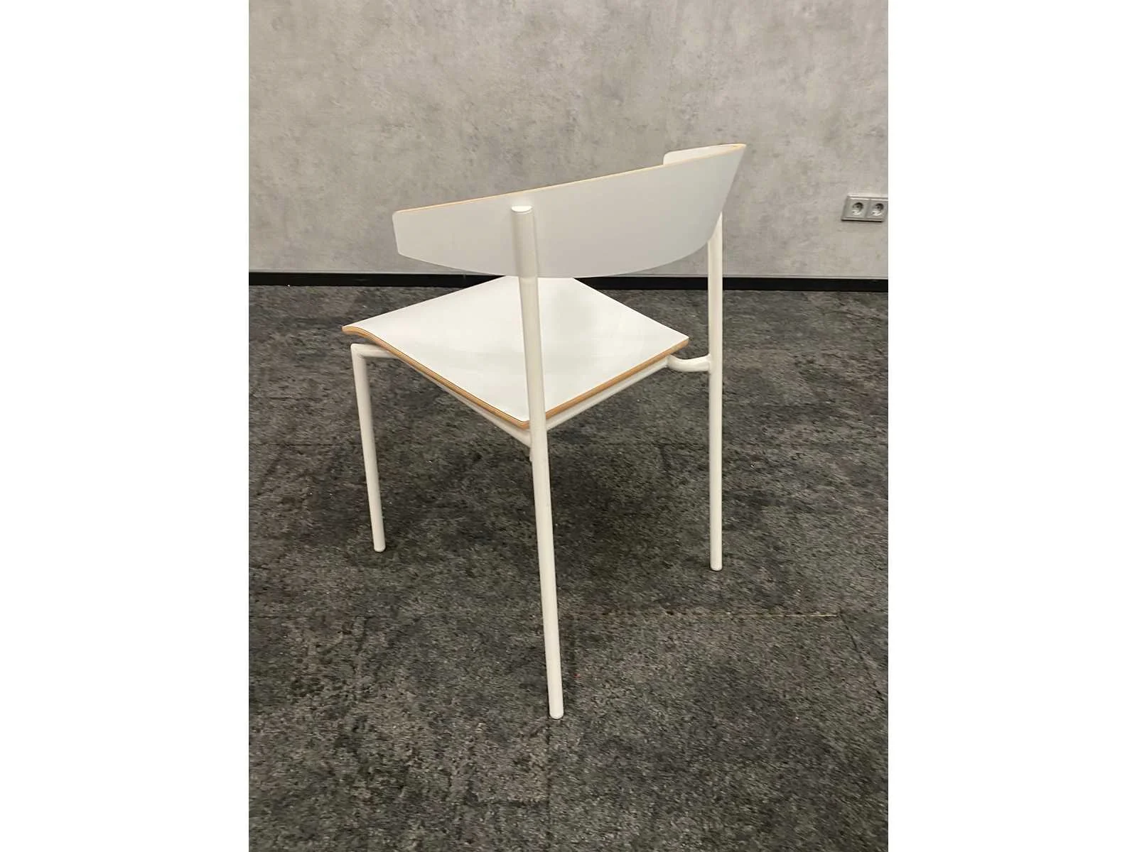 1x Vitra Joyn conferentietafel v.v. nieuw melamine eikenlook tafelblad en wit stalen in hoogte instelbaar frame. ---- 8x stoel van diverse design merken. Nee Merk: Designmix Lengte: 240cm Breedte: 120cm