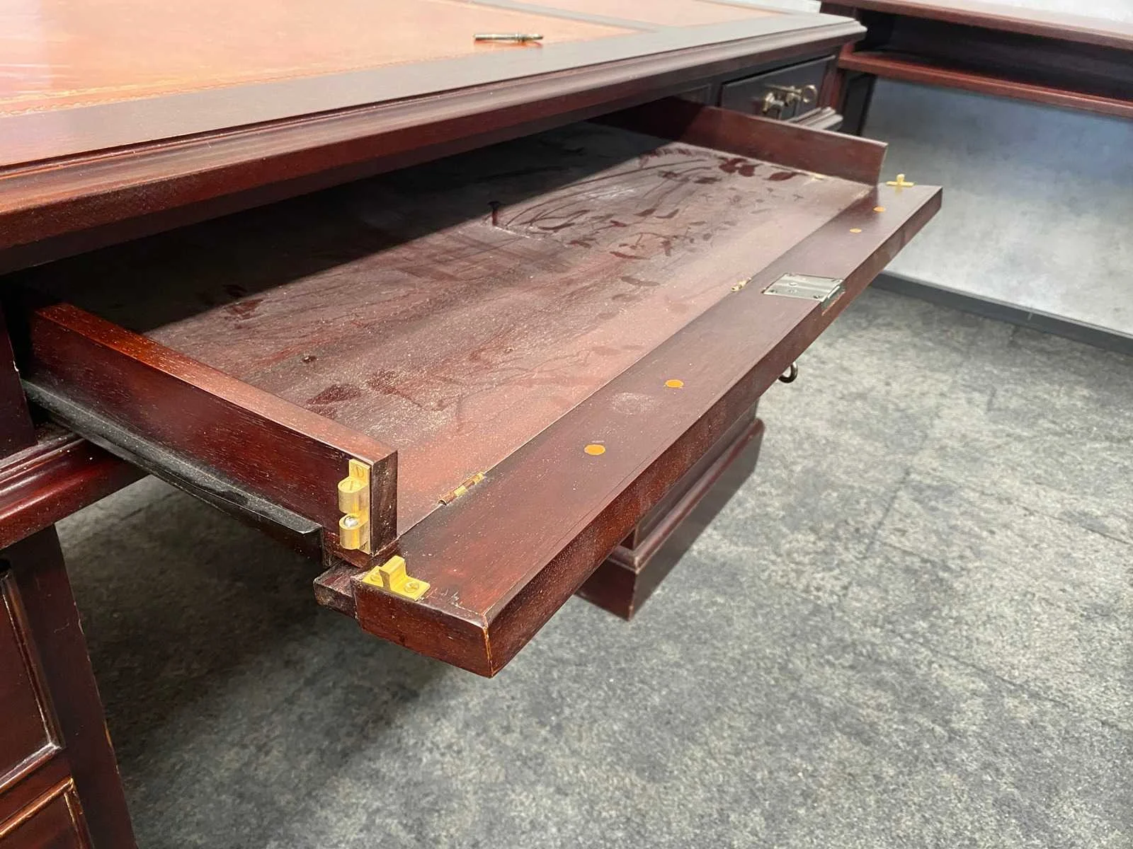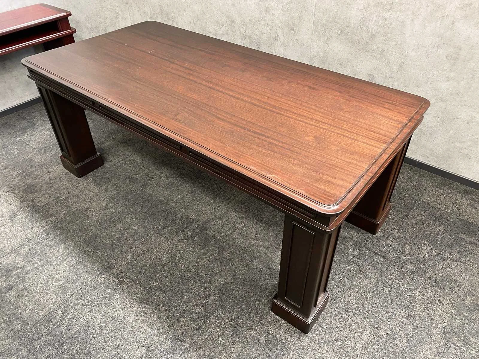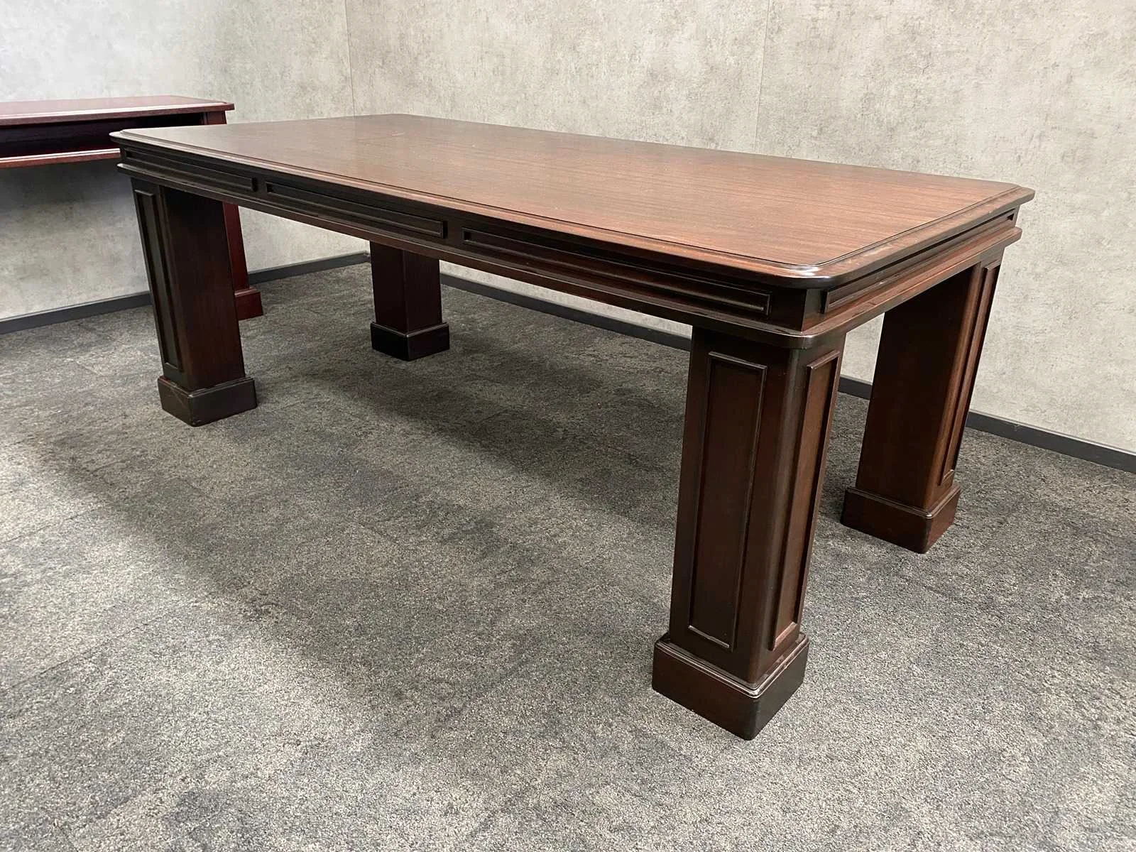 Afm. bureau ca. hxbxd 79x180x110 cm. - tafel ca. hxbxd 78x200x99 cm. - side table ca. hxbxd 78x210x44 cm. Nee