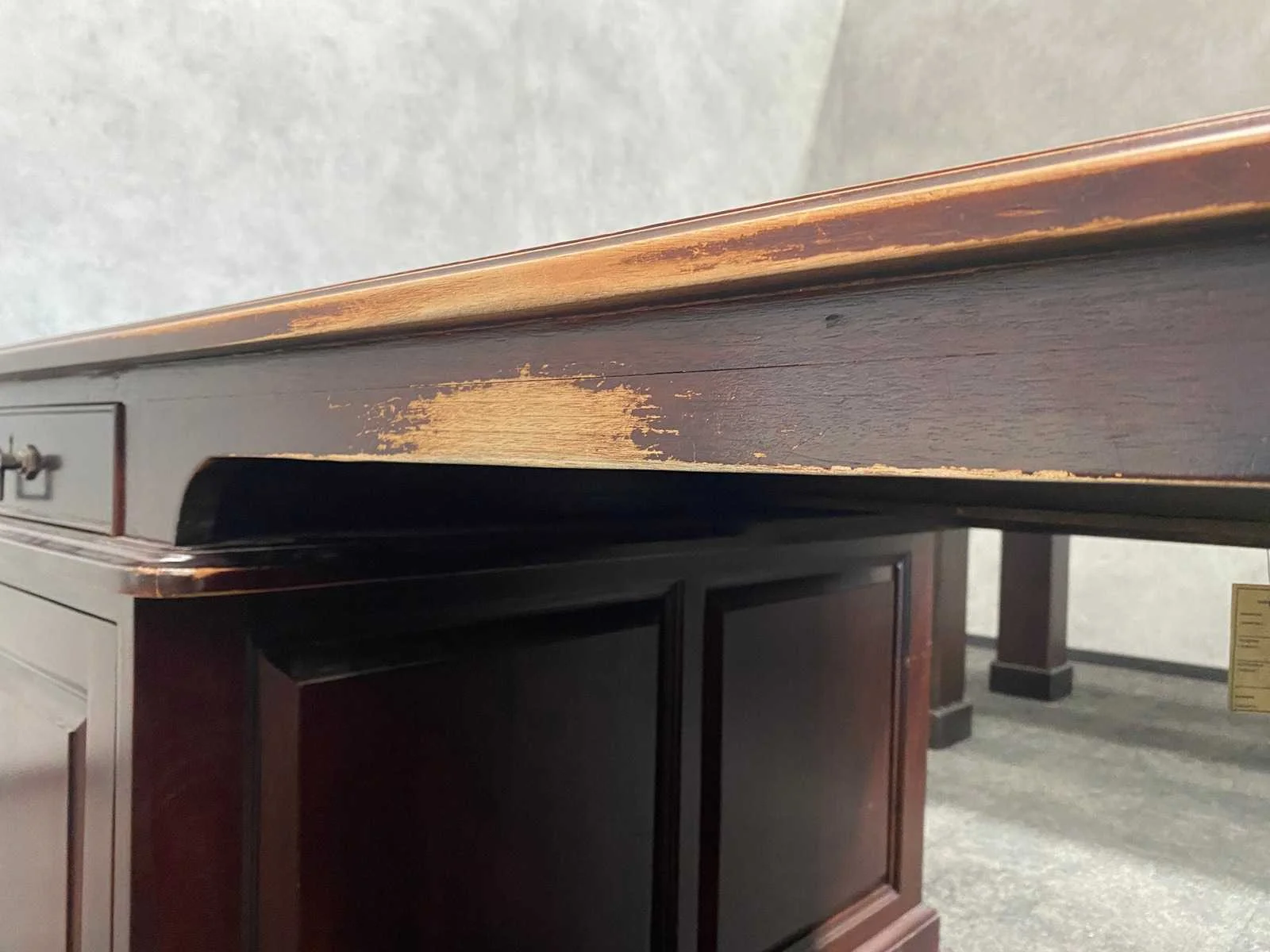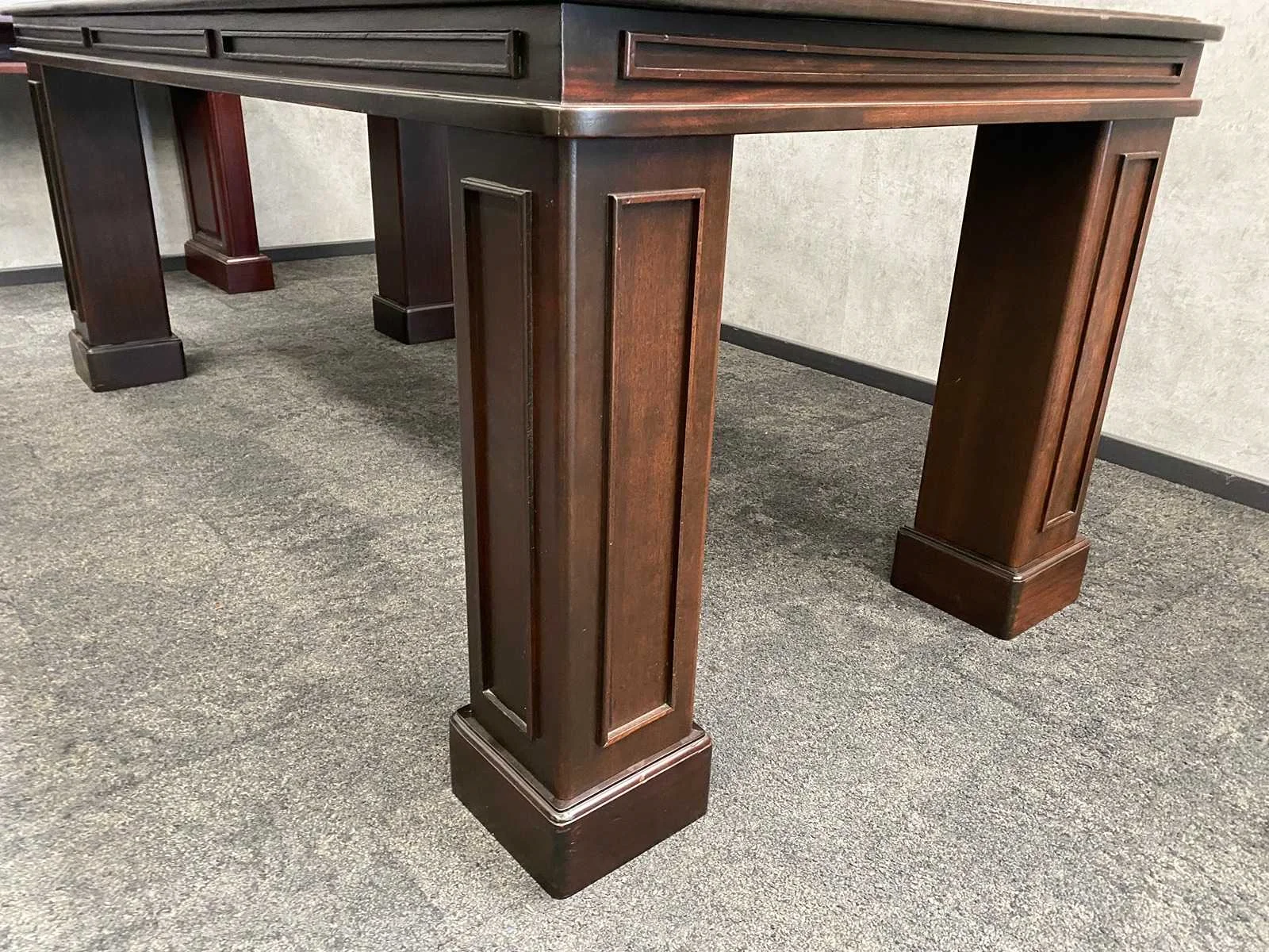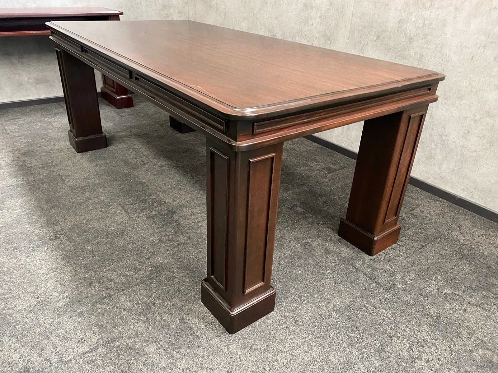Afm. bureau ca. hxbxd 79x180x110 cm. - tafel ca. hxbxd 78x200x99 cm. - side table ca. hxbxd 78x210x44 cm. Nee