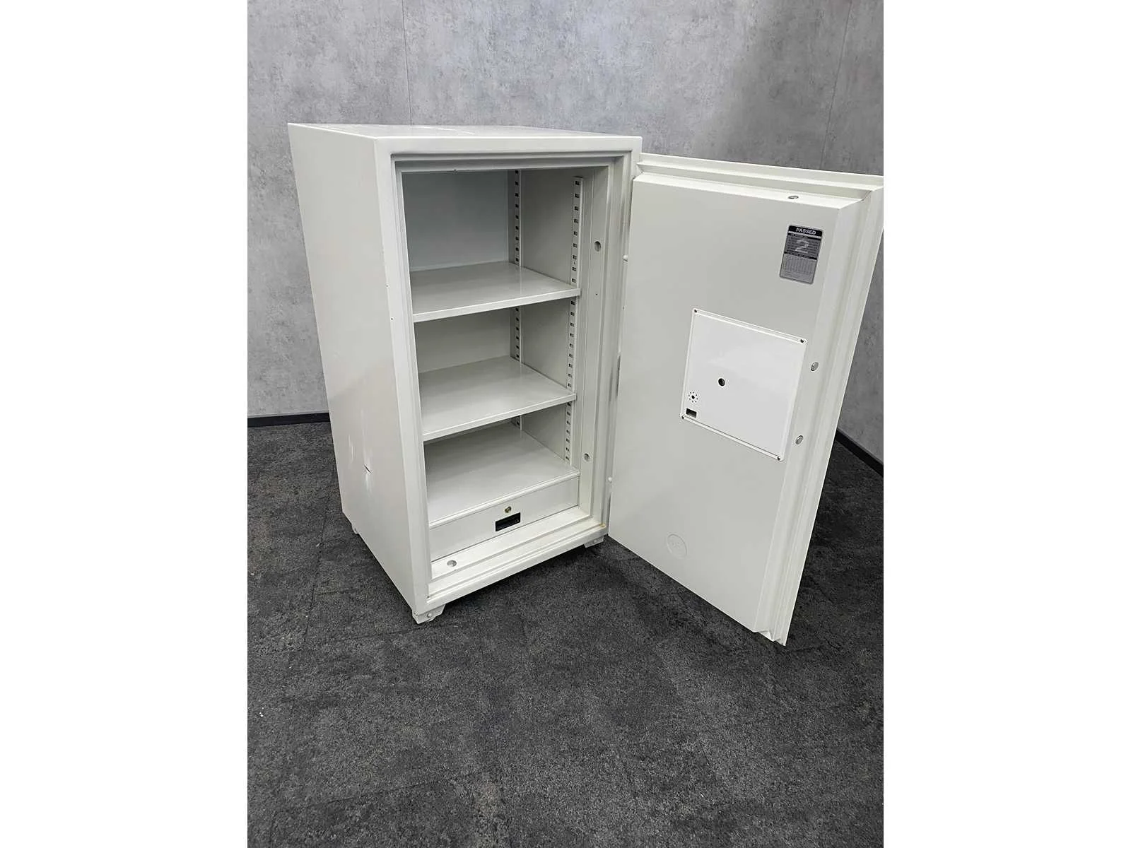 Afm. ca. hxbxd 136x74.5x74.5 cm. ---- sleutel van binnenlade ontbreekt. ---- code niet gebruiken, sleutel aanwezig --- gewicht onbekend Nee
