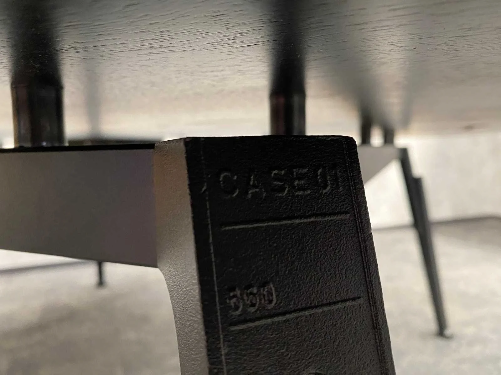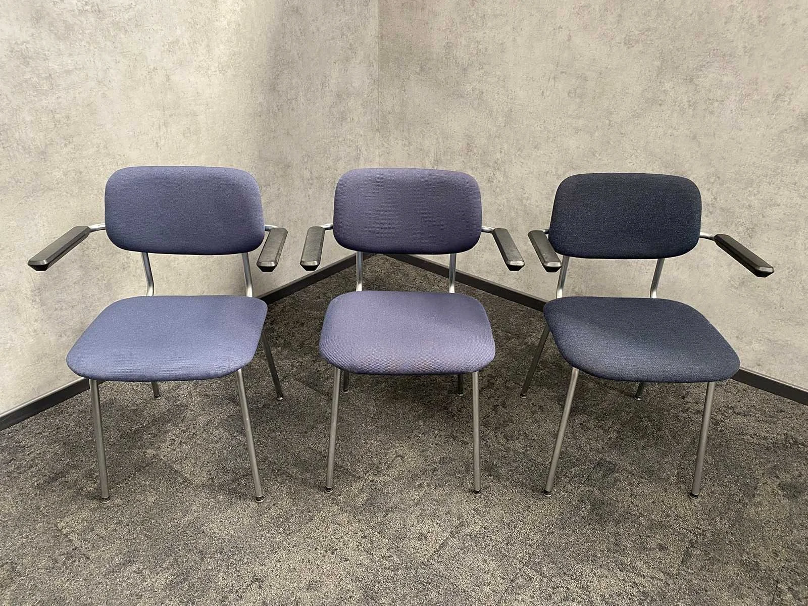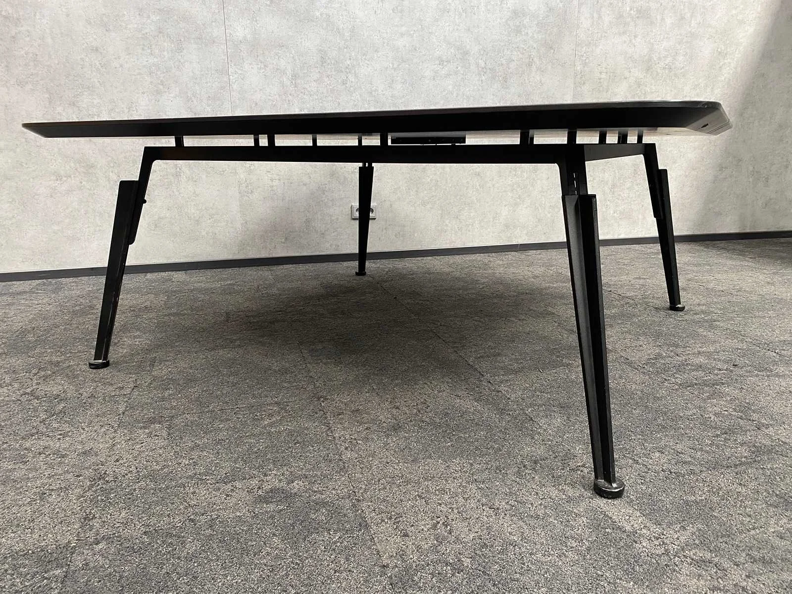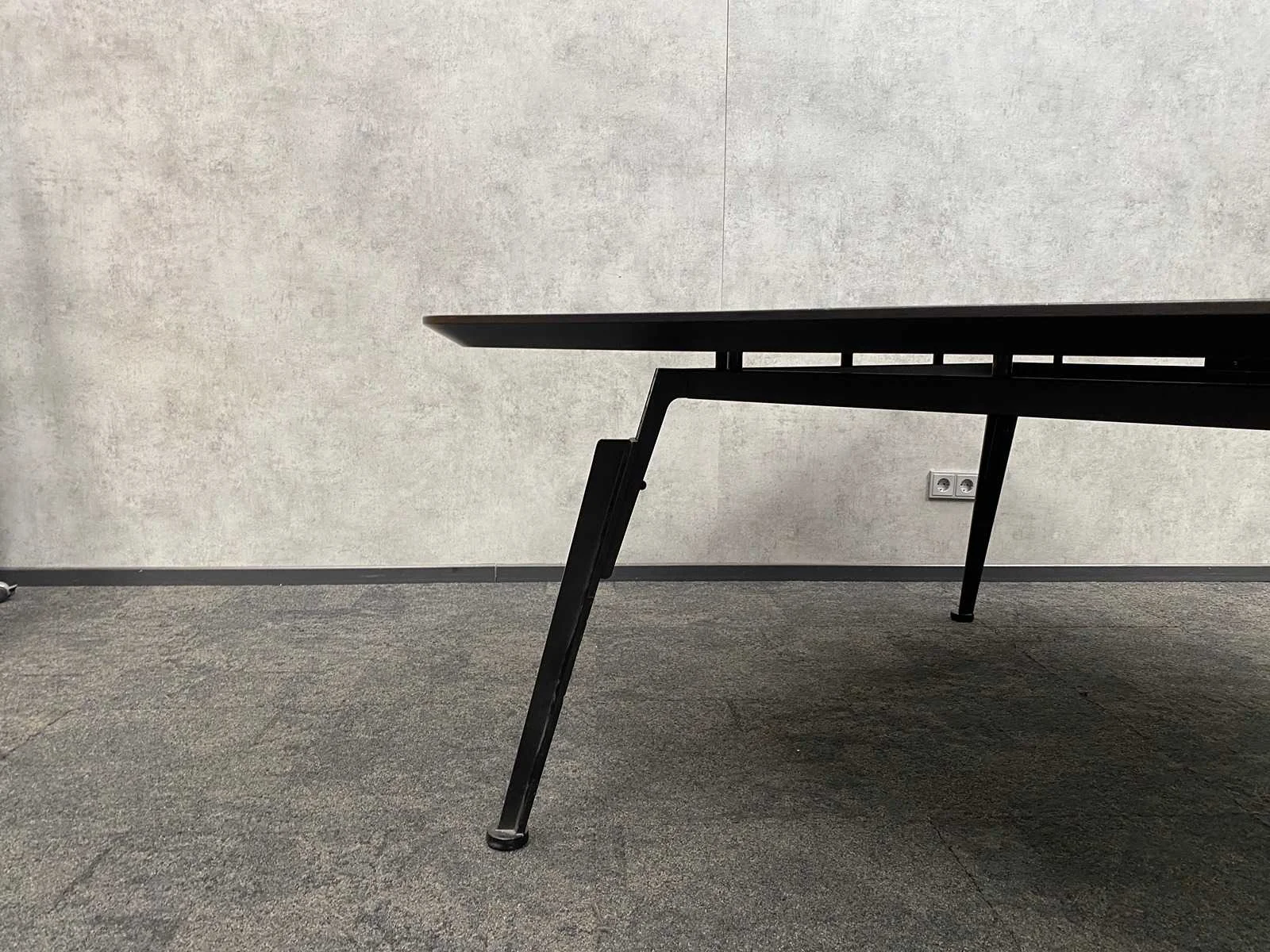 Kavel bestaande uit 1x CASE01 design tafel v.v. in hoogte instelbaar frame. --- 8x Gipsen 1235 design stoel. let op 3 diverse kleuren blauw. Nee Merk: CASE01/ Gispen Lengte: 180cm Breedte: 180cm Hoogte: 74cm