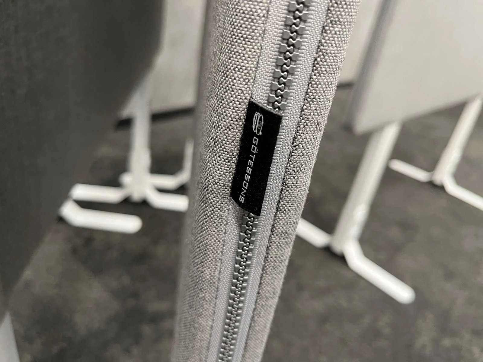 Nee Merk: 4x Götessons Kleur: grijs, wit Breedte: 120cm Hoogte: 141cm Materiaal: metaal, textiel