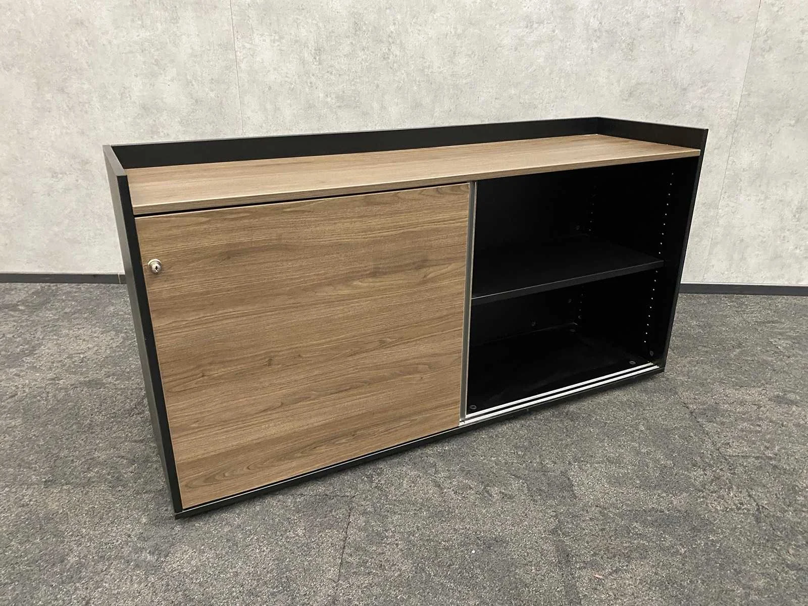 Met 2 verstelbare legborden, zonder sleutel Nee Kleur: zwart, noten Breedte: 160cm Hoogte: 83cm Diepte: 45cm Materiaal: melamine