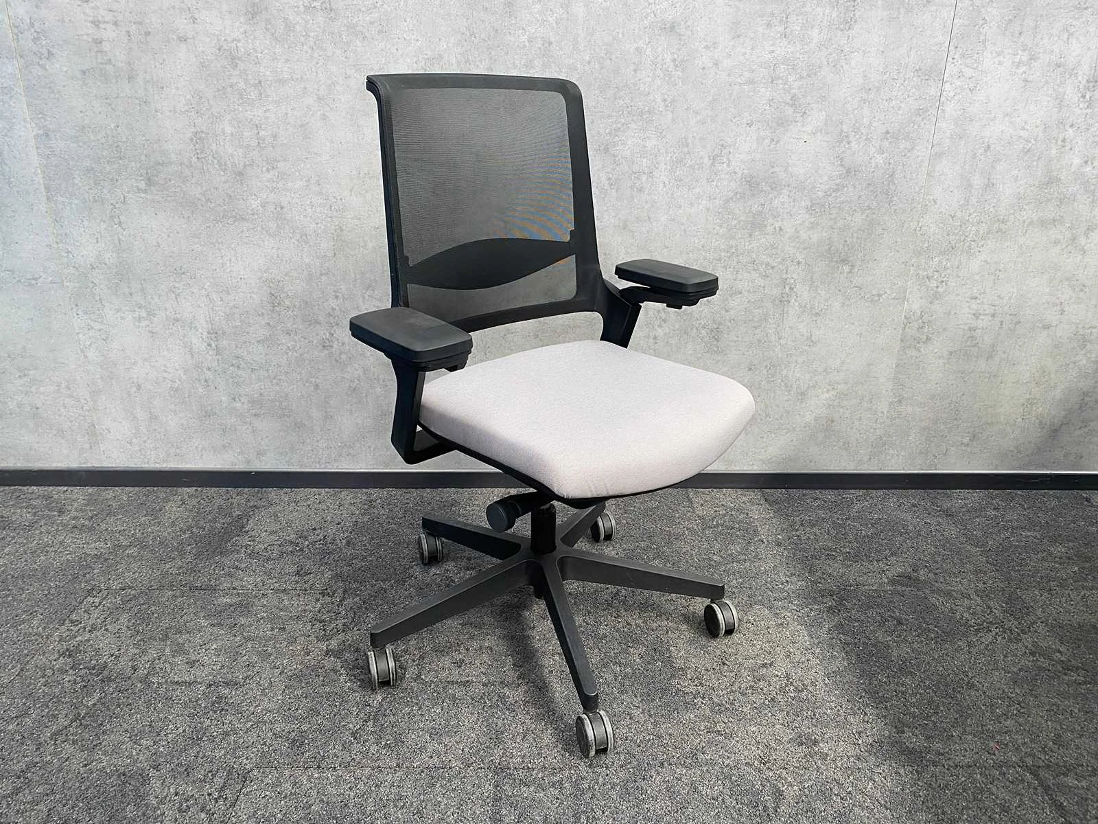 Kavel bestaande uit 2x Interstuhl Movy ergonomische bureaustoel v.v. 4D armleggers, zithoogte en zitdiepte instelbaar, kantelmechanisme rugleuning, verstelbare lendensteun. ----- 2x Bachman opbouwstekkerblok (2x230V + 2x USB) ----- 1x in hoogte verstelbaar duo bureau v.v. handslinger, grijs/ antraciet akoestische scheidingswand, draadgoot. Afm. ca. hoogte 64.5 tot 92.5 cm. bxd 140x80 cm. - LET OP transportafmetingen bureau ca. hxbxd 65x140x170 cm. Nee Slingerbureau: true