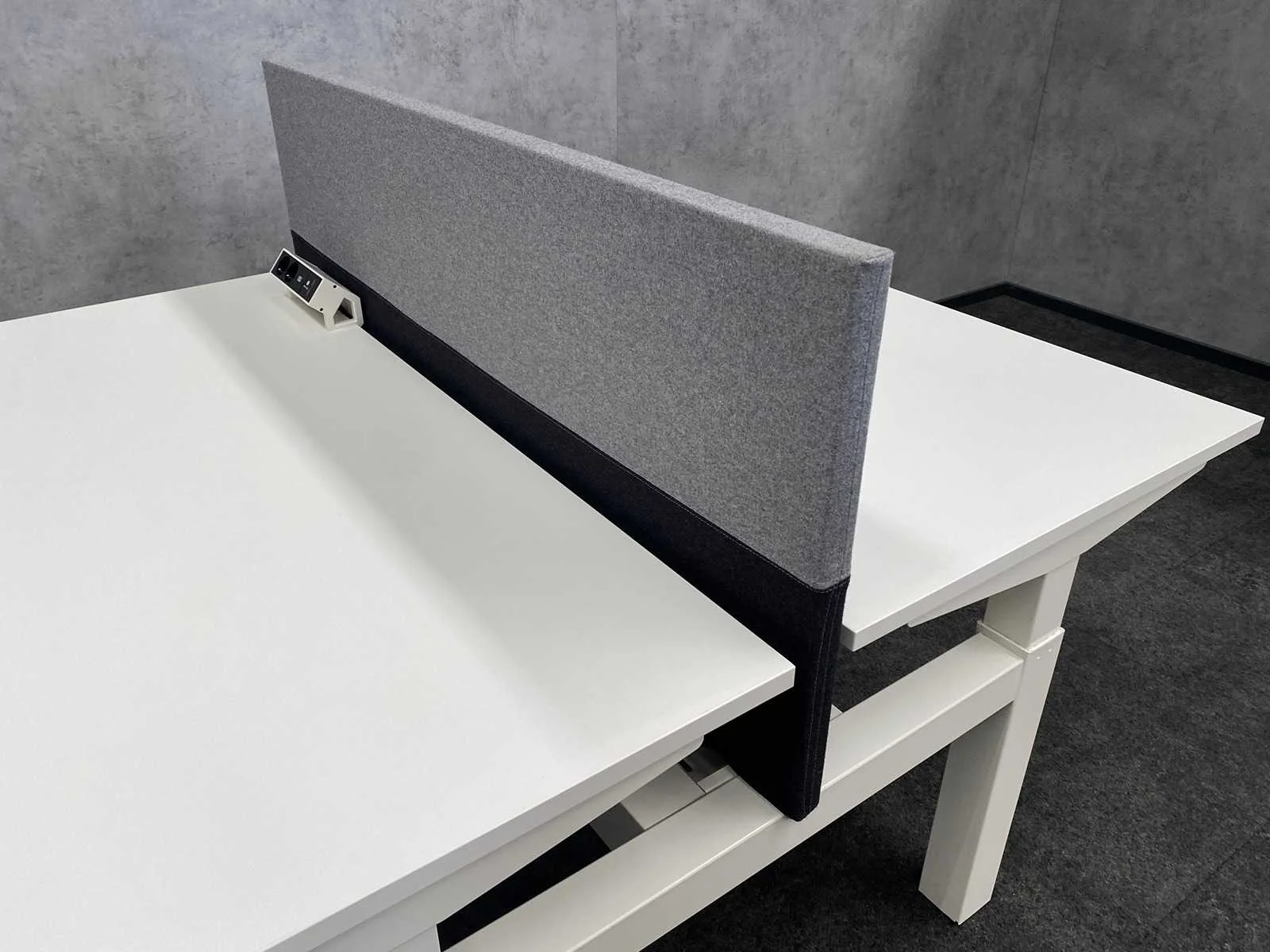 Kavel bestaande uit 2x Interstuhl Movy ergonomische bureaustoel v.v. 4D armleggers, zithoogte en zitdiepte instelbaar, kantelmechanisme rugleuning, verstelbare lendensteun. ----- 2x Bachman opbouwstekkerblok (2x230V + 2x USB) ----- 1x in hoogte verstelbaar duo bureau v.v. handslinger, grijs/ antraciet akoestische scheidingswand, draadgoot. Afm. ca. hoogte 64.5 tot 92.5 cm. bxd 140x80 cm. - LET OP transportafmetingen bureau ca. hxbxd 65x140x170 cm. Nee Slingerbureau: true