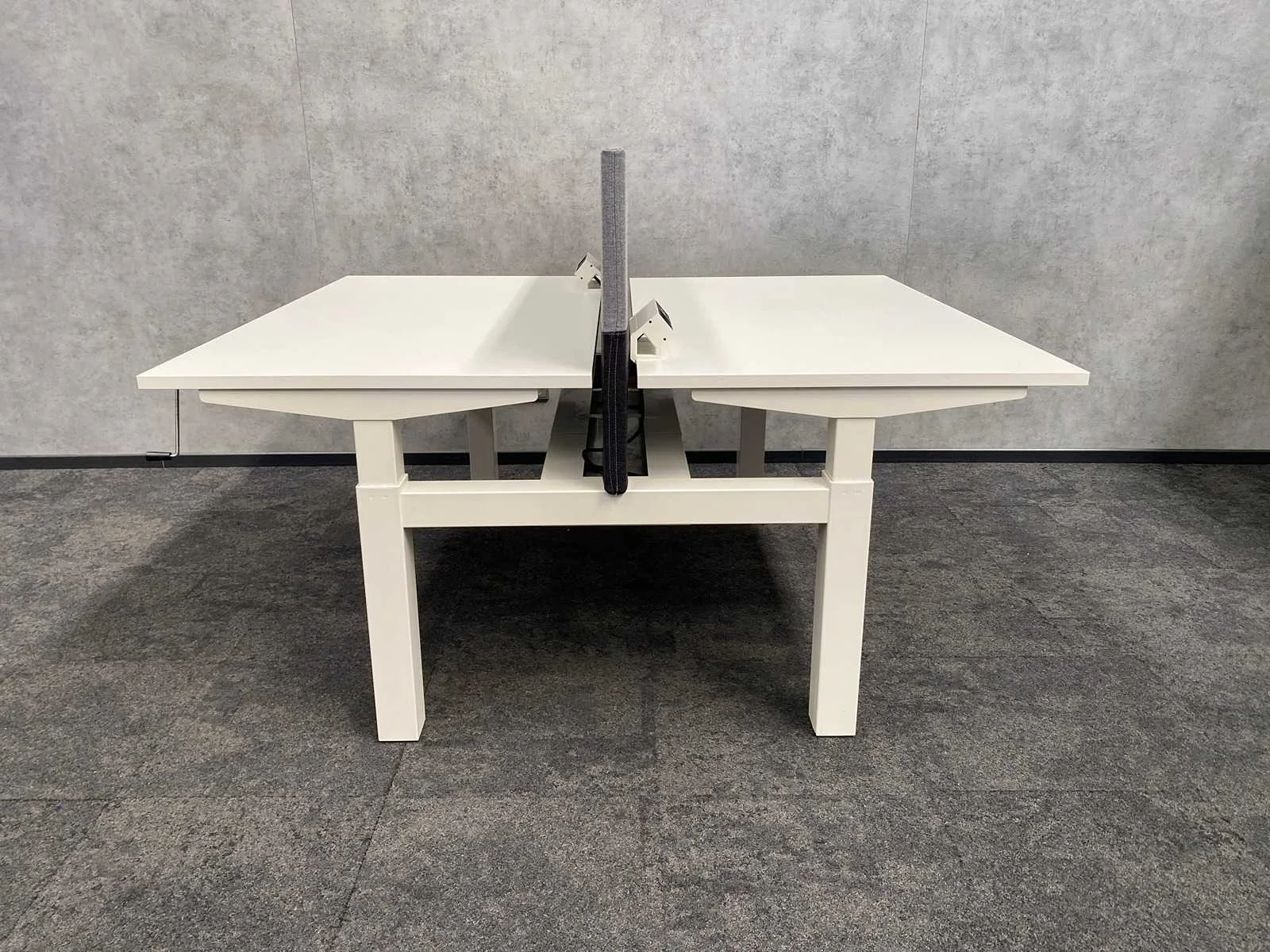Kavel bestaande uit 2x Interstuhl Movy ergonomische bureaustoel v.v. 4D armleggers, zithoogte en zitdiepte instelbaar, kantelmechanisme rugleuning, verstelbare lendensteun. ----- 2x Bachman opbouwstekkerblok (2x230V + 2x USB) ----- 1x in hoogte verstelbaar duo bureau v.v. handslinger, grijs/ antraciet akoestische scheidingswand, draadgoot. Afm. ca. hoogte 64.5 tot 92.5 cm. bxd 140x80 cm. - LET OP transportafmetingen bureau ca. hxbxd 65x140x170 cm. Nee Slingerbureau: true