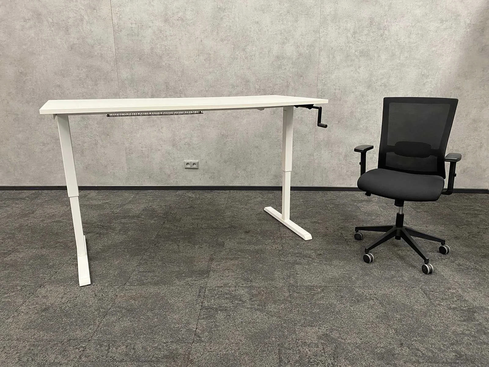 Kavel bestaande uit 1x bureau v.v. snelslinger en draadgoot. --- 1x Wework bureaustoel v.v. in hoogte instelbare armleggers, zithoogte instelbaar, kantelmechanisme rugleuning, netwave rugbekleding, zwart 5-teens voetenkruis, verstelbare lendensteun. Nee Slingerbureau: true Zit-sta: true Kleur: wit Breedte: 180cm Hoogte: 107cm Materiaal: metaal, melamine Diepte: 80cm