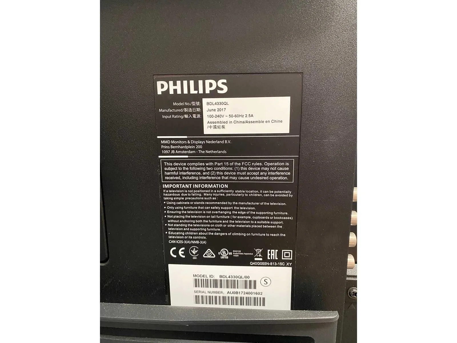 BDL4330QL Nee Merk: Philips Afstandsbediening: true