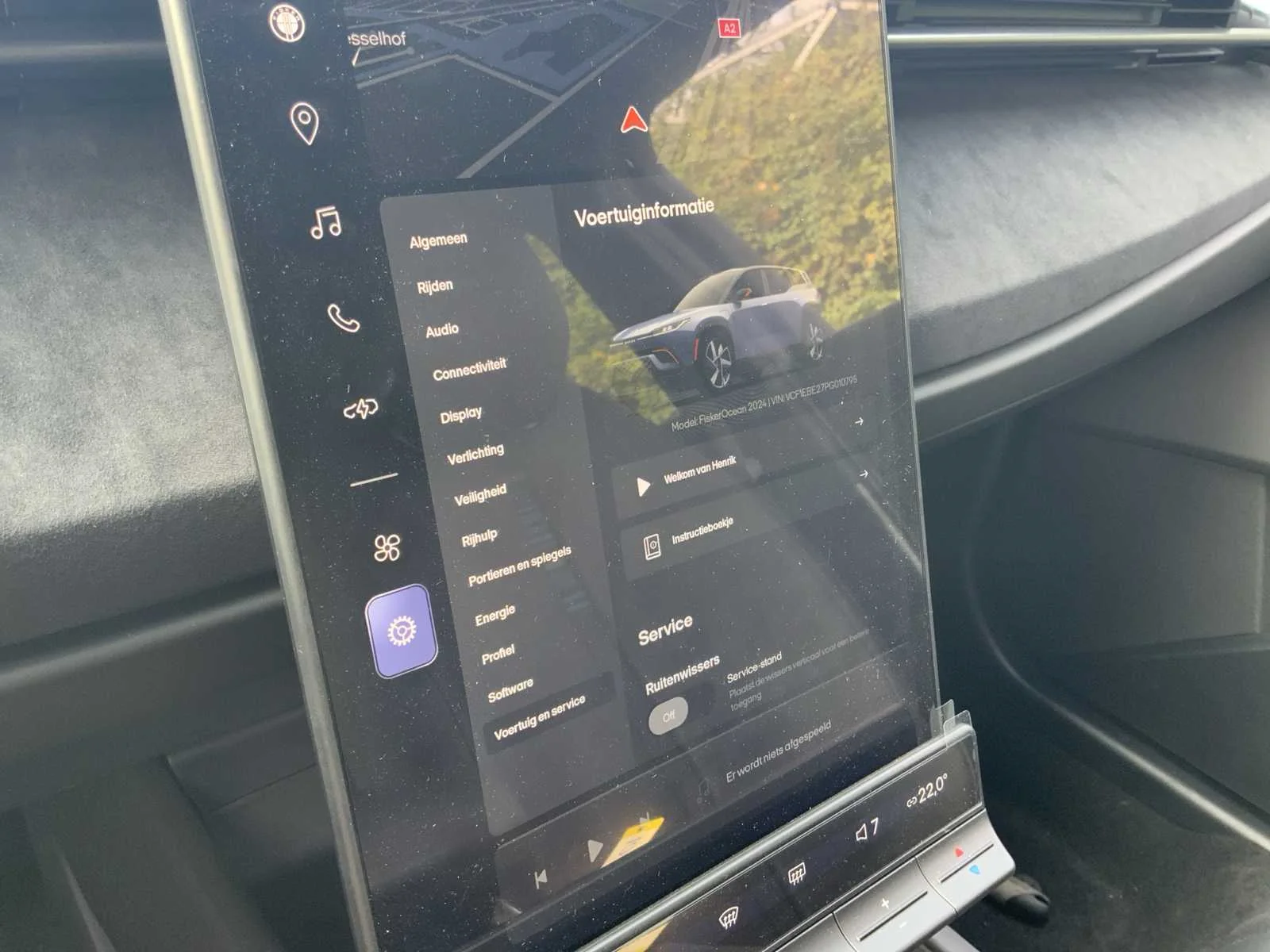 Actieradius 530Km. Laadaansluiting type 2. Laadvermogen 11Kw. Capaciteit 113Kw. Voorzien van solarsky dak. Digitale achteruitkijkspiegel. Open dak. Climate control. Stoelverwarming voor en achter Cruisecontrol Navigatie Touchscreen multimediasysteem Software versie FM29 OS 1.11 (1/2) Nee Merk: Fisker Model: Ocean Bouwjaar: 2024 Afgelezen kilometerstand: 864km Brandstof: elektriciteit Chassisnummer: VCF1EBE27PG010795 Aandrijving: AWD Aantal zitplaatsen: 5 Maximaal trekgewicht ongeremd: 750kg Maximaal trekgewicht geremd: 1820kg Kleur: Zwart Transmissie: Automaat Stuurwiel: Links Emissieklasse: Z Aantal deuren: 5 Aantal sleutels: 1 Ledig gewicht: 2426kg Velgmaat: 22 Carrosserie: stationwagen Nationaliteit documenten: Geen documenten aanwezig Onderhoudshistorie: Niet bekend Start en rijdt: Nee Andere boorddocumenten: Niet aanwezig startinformatie : Onbekend Zichtbare schade: Geen zichtbare schade oplaadkabel : Aanwezig No self drive export!: true Airconditioning: true Navigatie: true LED-koplampen: true
