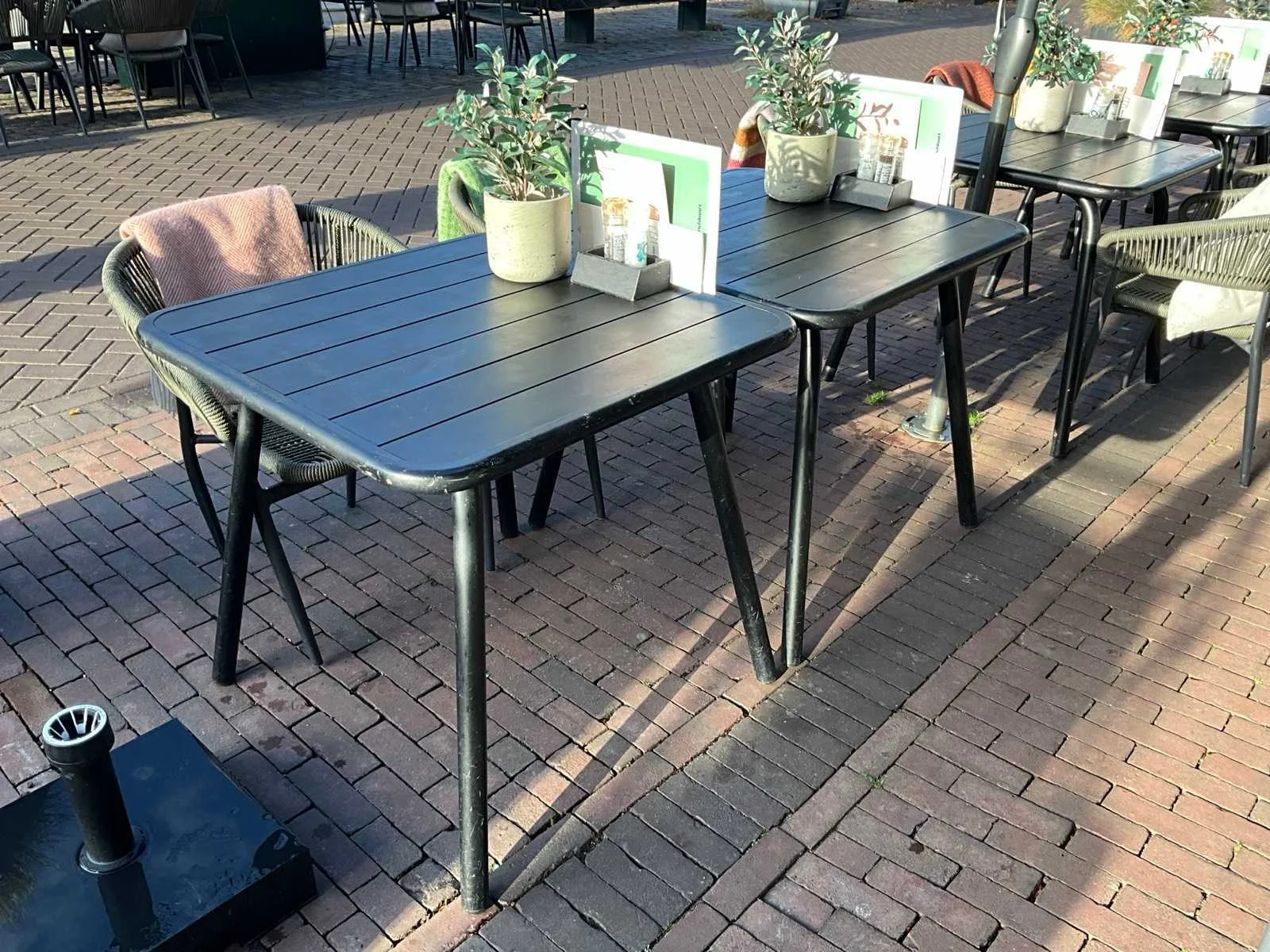 Betreft een Combinatiekavel van de kavels : 3 Horeca Machines / Meubilair o.a. Hk Living, Okido 87 Horeca Servies o.a. HK Living, Cosy & Trendy 88 Okido Bella Parasol (3x) 89 Horeca Terrasmeubilair O.a. Hk Living, Okido Inhoud per kavel nummer: kavel 3 Horeca Machines / Meubilair o.a. Hk Living, Okido Bestaande uit: 16 x Okido tafel 70x70 cm 2 x Okido tafel 70x120 (tot onderkant blad 94 cm) 8 x HK living Wire stoel hoogmodel 11 x HK Living Wire stoel zonder leuning Stoelen inclusief kussens (zandkleurig) 5 x HK Living Wicker hanglamp zwart met diameter 60cm 2 x gordijn type velours ca. 300 cm hoog inclusief rails 1 x HK Living vloerkleed rond diameter 250cm 1 x Rugvista Vloerkleed rechthoekig 240x350cm 1 x sinaasappelsap automaat / Automatic orange juicer 1 x Wijnklimaatkast / 2 zones (Wit/rode wijn) 7 etages; (GGM Gastro) 1 x koelvitrinie (MaxxFrost) inhoud 400 ltr. / Afmeting: 900x805x1445 / eigen gewicht 180 kg 2 x staande plant 5 x hangende plant Kavel 87 Horeca Servies o.a. HK Living, Cosy & Trendy Bestaande uit: 40x Dinnerbord Cosy & Trendy (27cm diameter) 24x Soepbord Villeroy & Boch (28,5cm diameter) 15x Dinnerbord Lare Doute (27cm diameter) 22x Diepbord Cosy & Trendy (21,5cm diameter) 7x Pastabol HK Living (ca. 18cm diameter) 12x Diepbord Lare Doute (20cm diameter) 9x Ovaalbord Serax (21,5x32,5cm) 8x Ovaalbord Serax (17,5x 28,5cm) 5x Diepbord HK Living (27,5 cm diameter) Kavel 88 Okido Bella Parasol (3x) Bestaande uit: 2 x Okido Bella 400x400 cm 1 x Okido Bella 400x300 cm Inclusief prikkabel Kavel 89 Horeca Terrasmeubilair O.a. Hk Living, Okido Bestaande uit: 2 x HK Living zitbank ca. 180 cm breed inclusief kussens 2 x stenen houten bijzettafel 35x100 cm 2 x stenen ronde bijzettafel 35 cm diameter 18 x Okido Tafel 80x80 (Metaal) 2 x parasol zwart diameter 300 cm; (exclusief voet) Nee