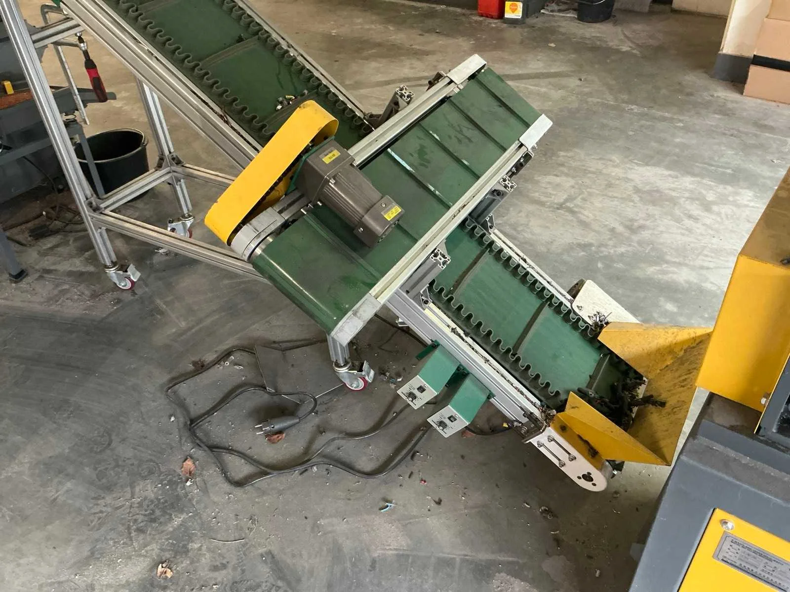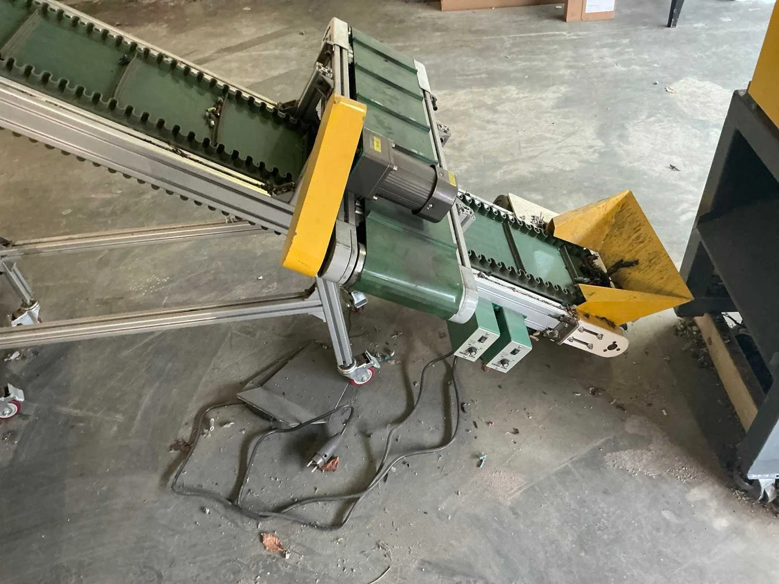 Bestaande uit schredder, verplaatsbare transport band en koper recycle machine/ granulator. Transport band verstelbaar met verstelbare dwarsband. Nee Merk: E-Waste Type: R-TMJ-100 Aansluiting: 380V Totale afmeting L: 5200mm Totale afmeting Breedte: 850mm Totale afmeting Hoogte: 2500mm