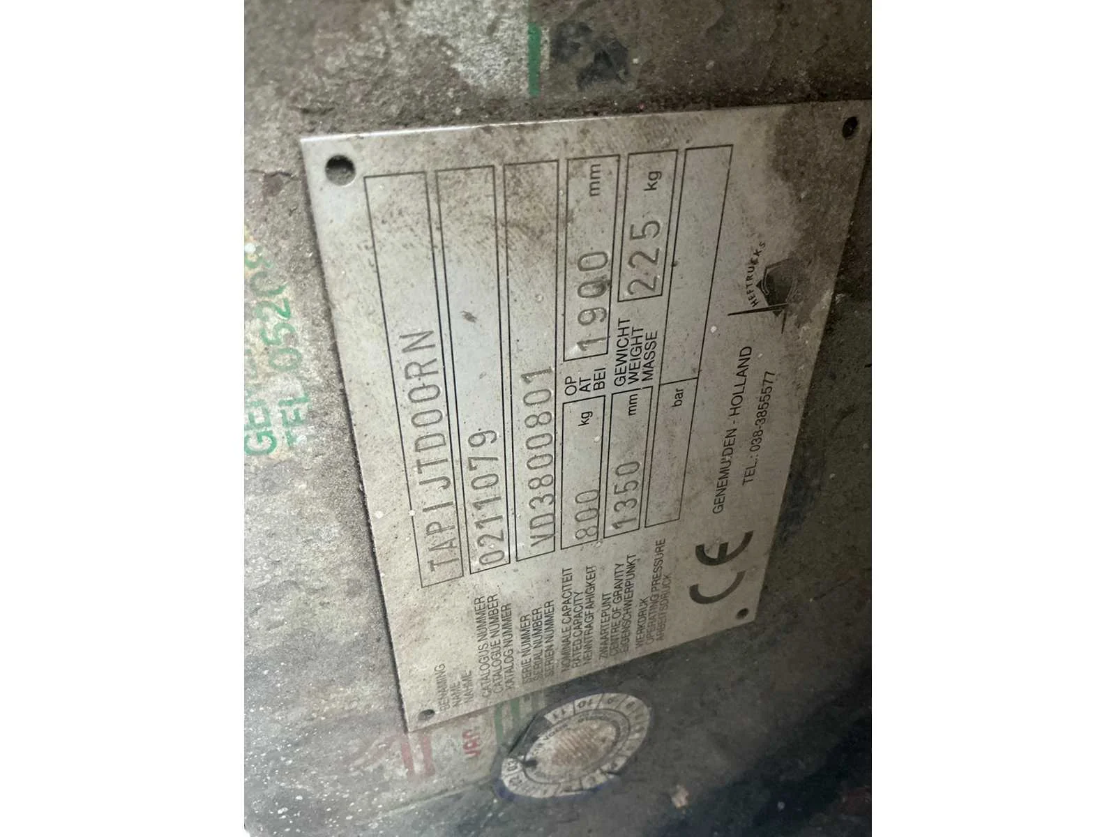 Draagkracht 800 kilo Nee Serienummer: 0211079 Eigen gewicht: 225kg Totale afmeting L: 2600mm