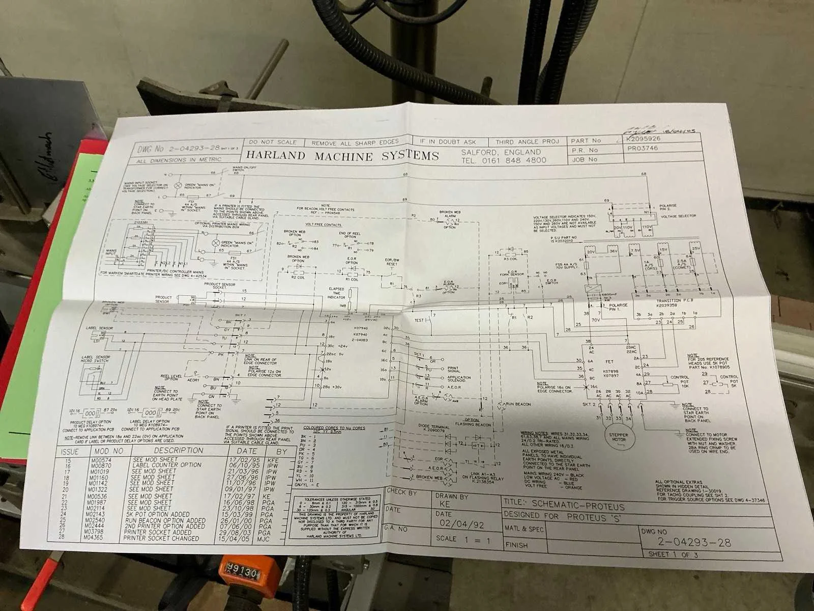 Onder andere voorzien van: bedieningshandleiding, instelbare aanvoer, verrijdbaar onderstel met stempels, bedieningskast, 220V aansluiting, noodstop. In werkende staat. Nee Merk: Harland Type: Proteus 155-S Bouwjaar: 2008 Serienummer: J57130/01 Aansluiting: 220V Eigen gewicht: 125kg Totale afmeting L: 3000mm Totale afmeting Breedte: 1200mm Totale afmeting Hoogte: 1700mm
