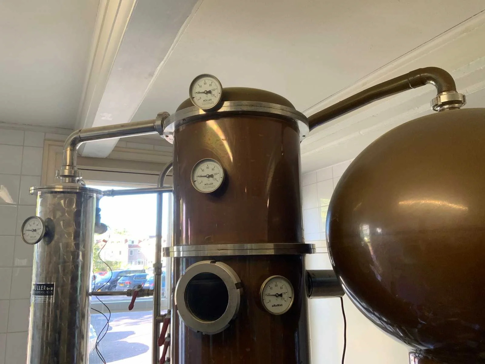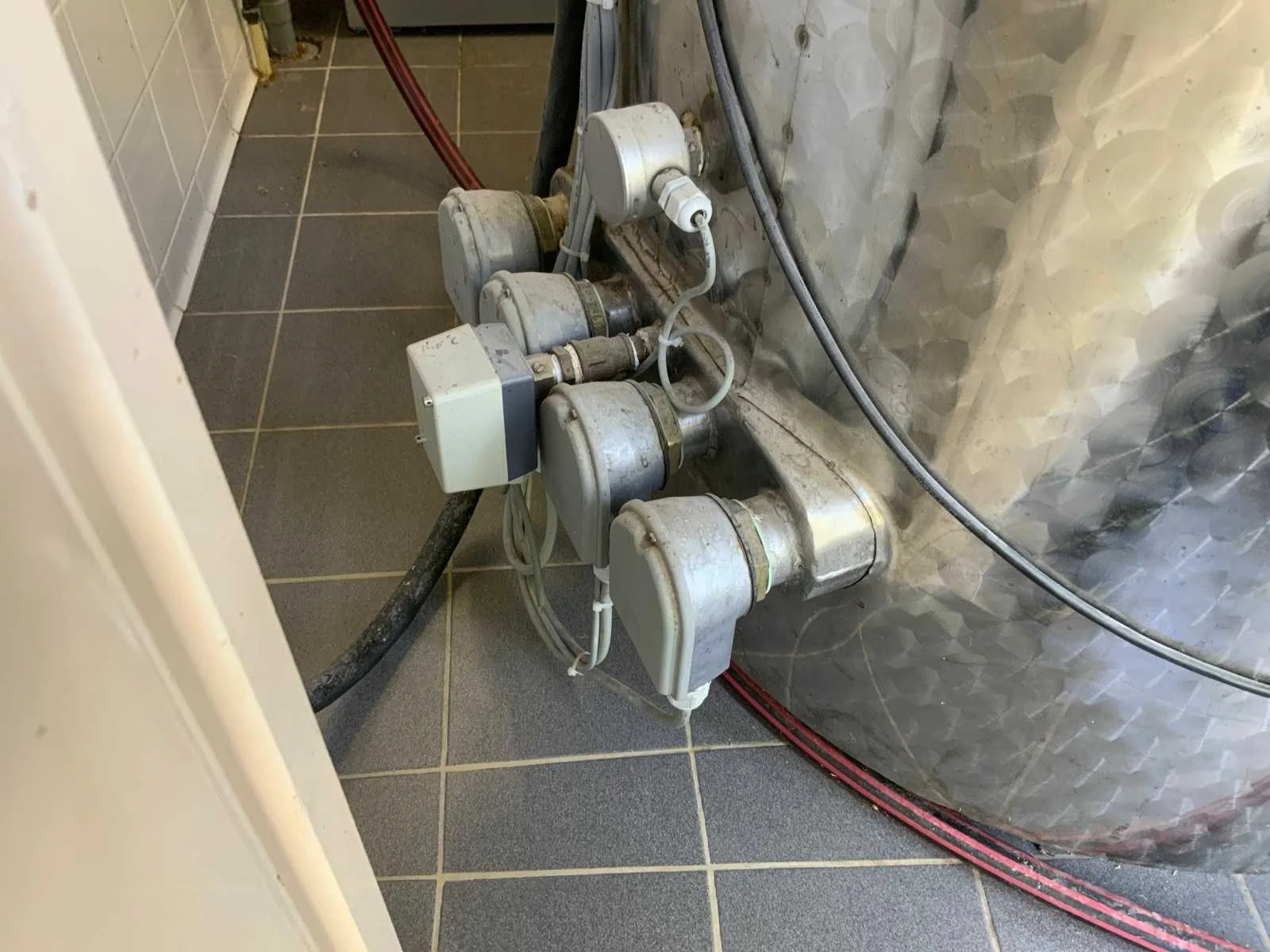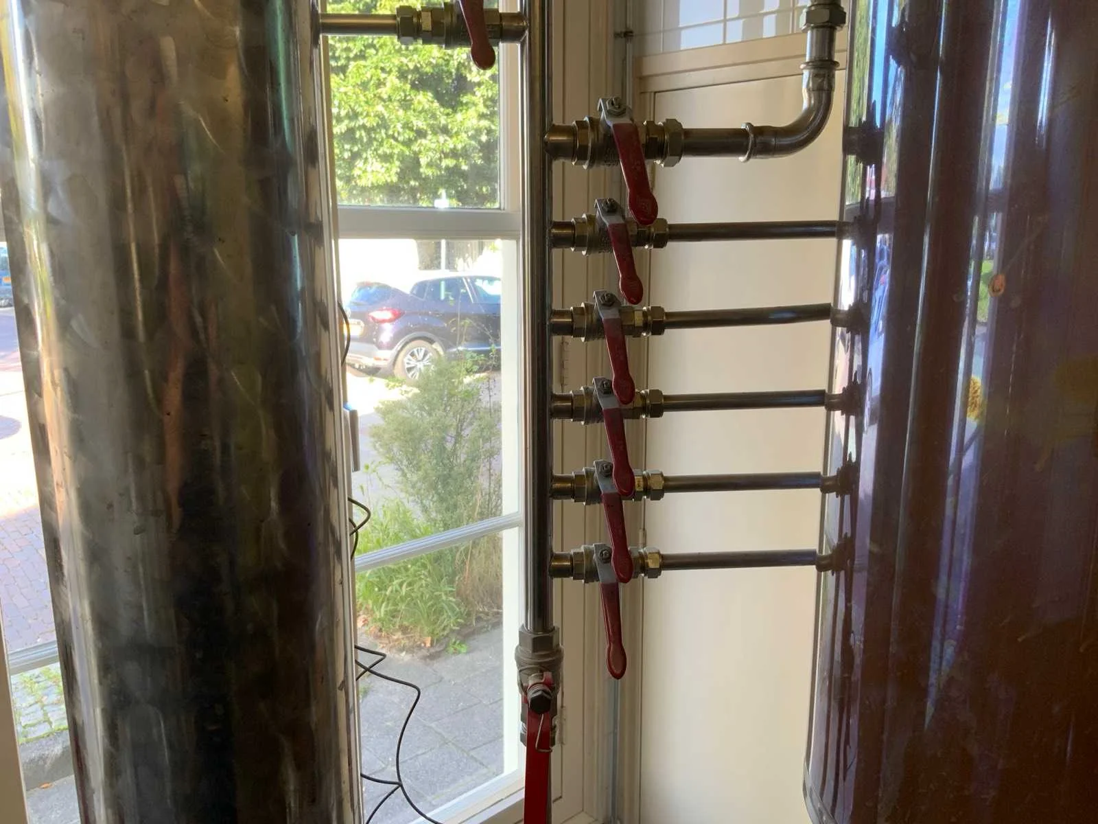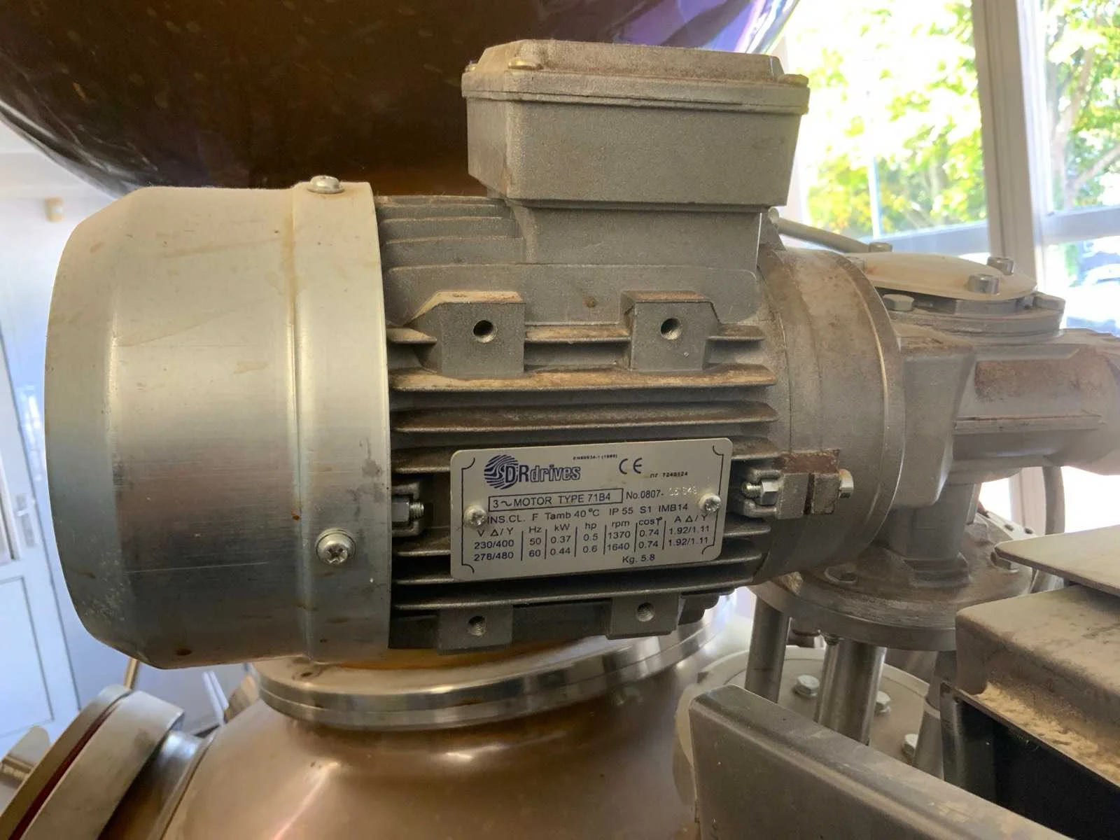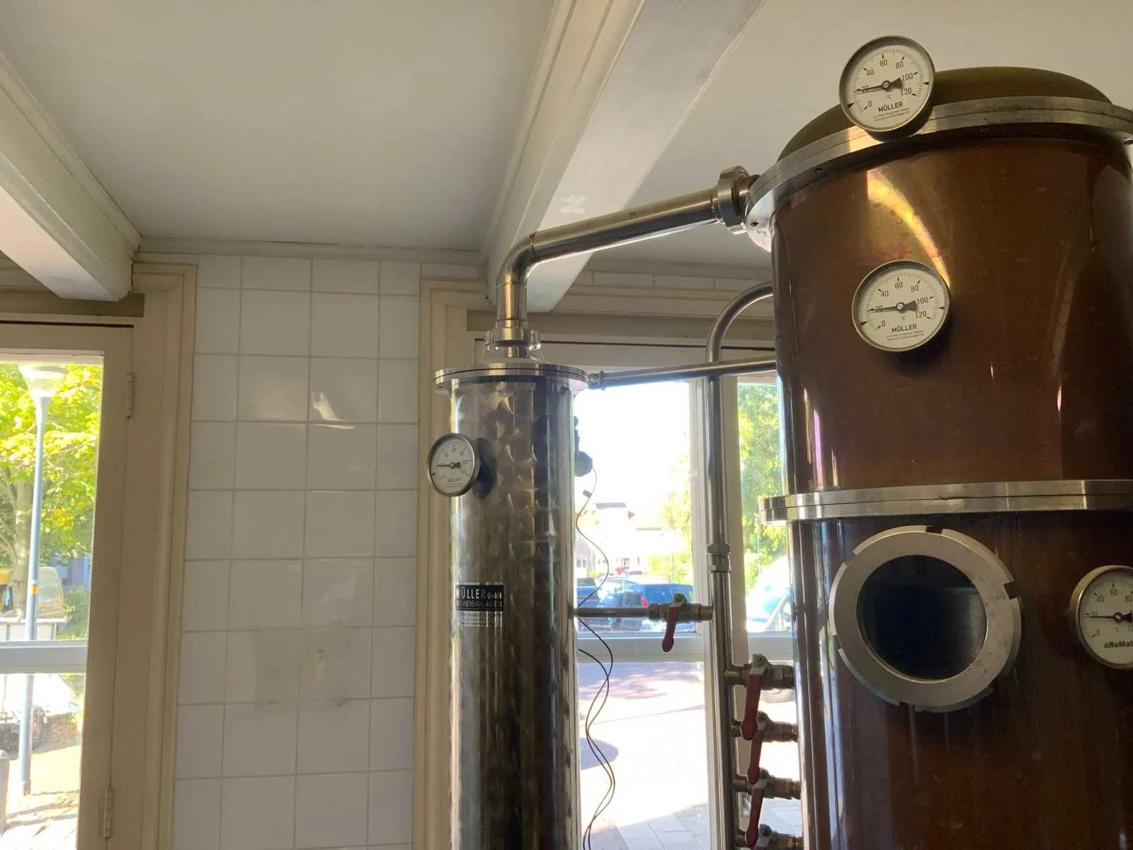 Müller Brennereianlage Typ AROMA IV met aRoMat-verstärker; hoogwaardige vol-koper distilleerinstallatie; model: Typ AROMA IV; waterbad met vuurhaard; koperen ketel 3 mm dik; koud gevormd en gehamerd; keteldiameter 750 mm; aroma-hoed met 100 L stoomruimte en 2 m² koperoppervlak; zijdelingse kolom met geïntegreerde aRoMat-spiraal; RVS buizenkoeler met 1,5 m² koeloppervlak; glockenböden individueel afsluitbaar; sprayball-reinigingssysteem in hoed, kolom en condensor; elektrisch roerwerk met 93 tpm; conische tresteruitloop (Ø 350 mm); verlicht inspectievenster in ketelbrust; heetwatertank 130 L met drukverhogingspomp (tot 6 bar); automatische destillat-trenner DT103 (volgens %vol); centrale besturingskast voor complete systeemaansturing; gepatenteerde Wassergeizer I & II voor terugwinning en verwarming; geïntegreerde koperen katalysator (Kupferadsorber) voor cyanidebinding; extreem aromabehoud dankzij aRoMat-systeem; rendement geoptimaliseerd; onderhoudsvriendelijk; ontwerp volgens Duitse standaard Müller GmbH Nee Merk: Müller Type: Aromat Bouwjaar: 2009 Serienummer: AROMA IV/3535 Aansluiting: 440V Totale afmeting L: 1170mm Totale afmeting Breedte: 2000mm Totale afmeting Hoogte: 2400mm