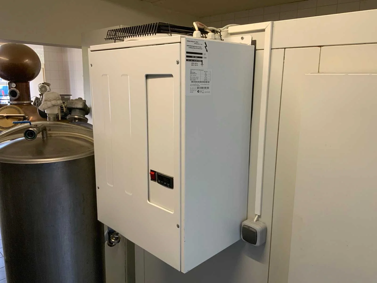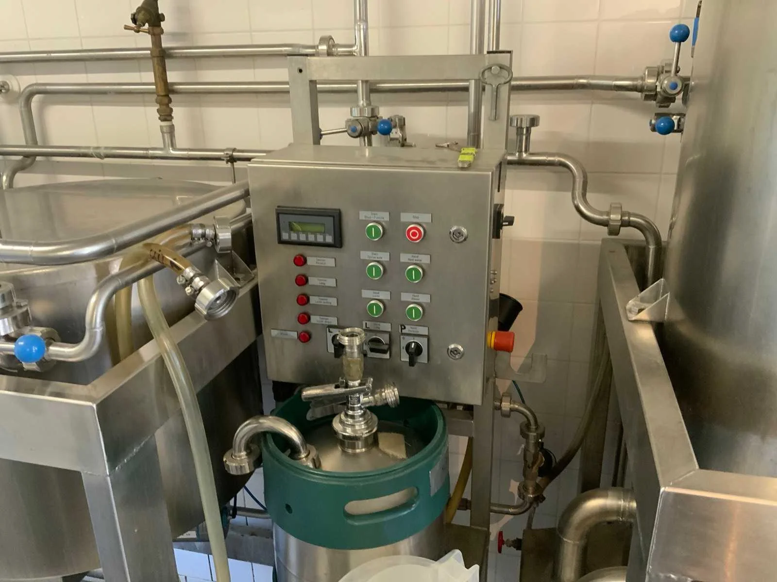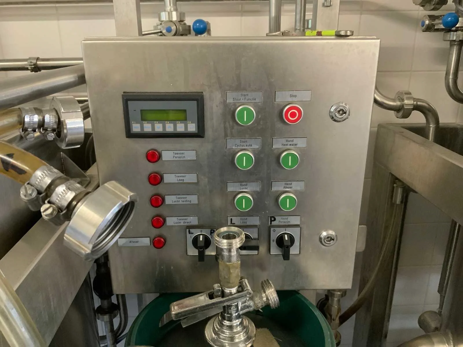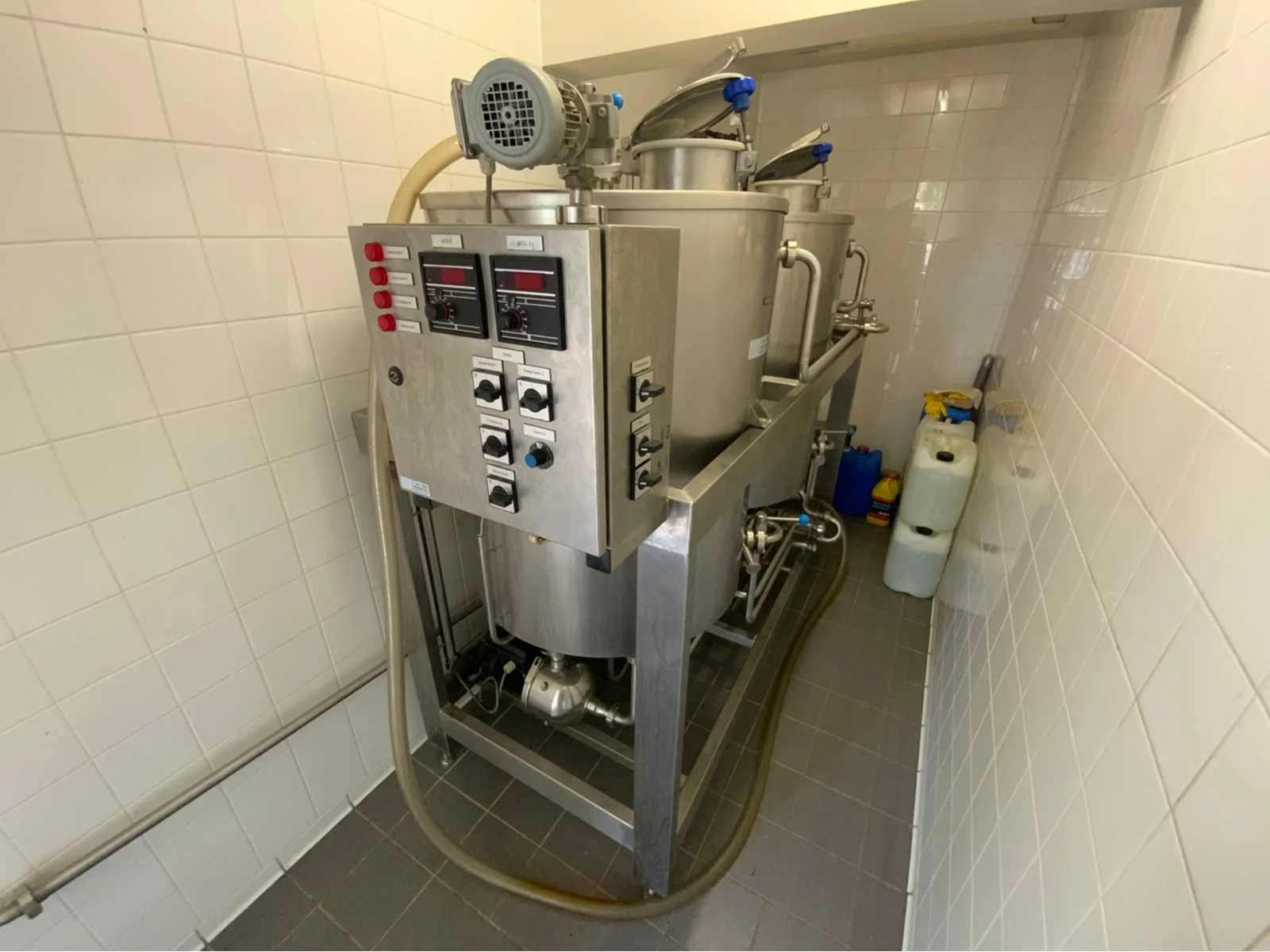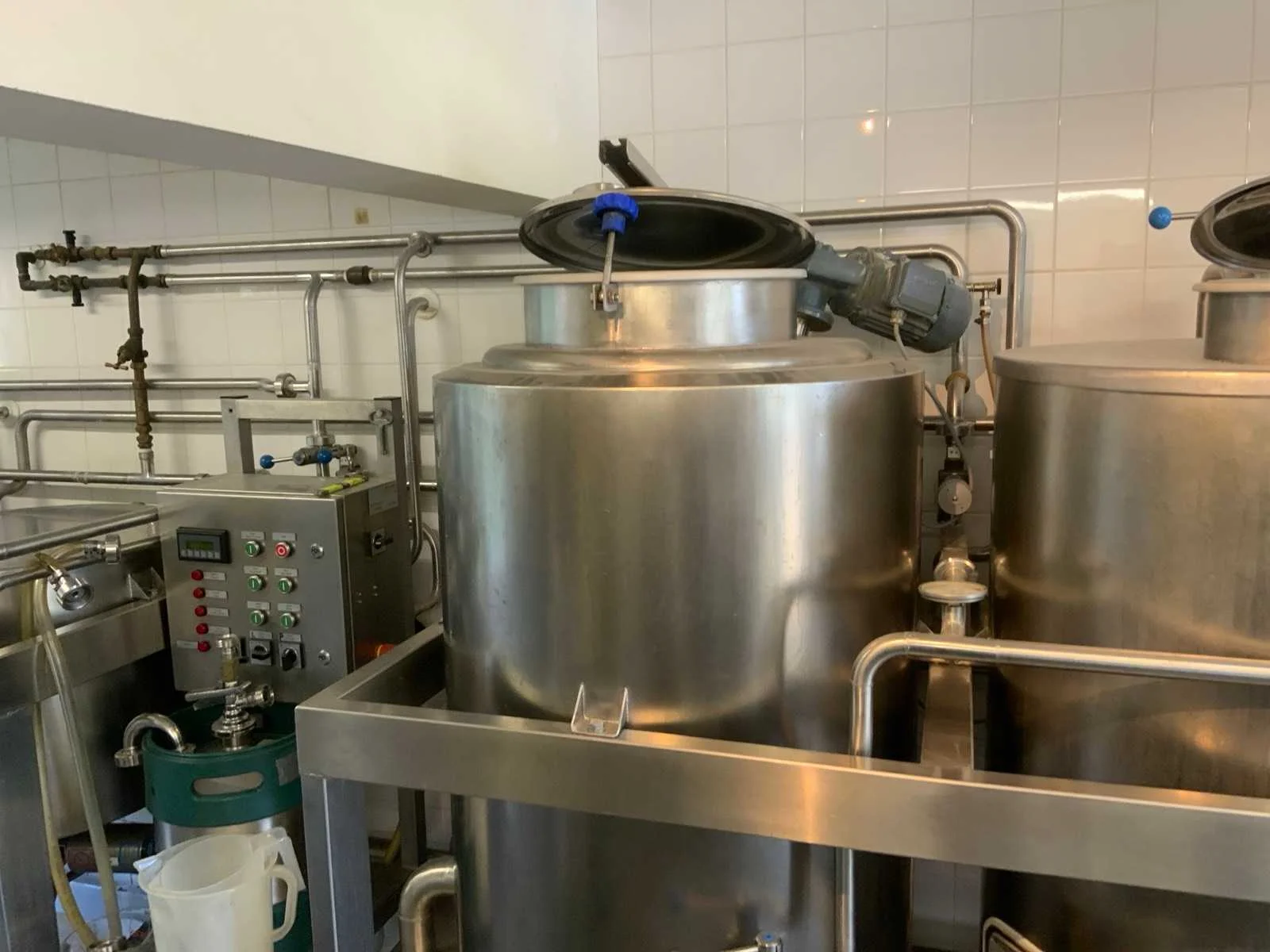 Voorzien van koelcel met koelunit “Polair MM 111 SF” (recent vervangen, binnenmaten: D1890 x B1920 x H1960 mm); 5 lageringvaten van 200 L; 1 afvulvat van 200 L met roermechanisme aangedreven door Nord SK 64L/4 motor (0,18 kW); Rotor-pomp voor afvullen van bierfusten; extra pomp van C. van ‘t Riet voor transport van hoofdvergistingsvloeistof naar lagervaten; complete brouwinstallatie type 9711000116, bouwjaar 1997 (920x3000x2100 mm); maischketel 250 L met Nord-roerwerk en indirecte verwarming via dubbelwandige waterbuffer (2 x 6 kW verwarmingselementen, uitbreiding tot 18 kW mogelijk); spoelfilterketel 250 L met geperforeerde filterplaat, pijlglas, terugfiltermechanisme, reinigingsluik (235x185 mm); kookketel 250 L met oliegevulde dubbelwandige verwarming (2 x 6 kW + uitbreidbaar), geïsoleerd deksel met sproeibol en RVS NW100 condensleiding, ventilator en watervernevelaar; opvang- en uitloopreservoir 157 L met schuine bodem, NW50 uitloop; besturingskast met digitale temperatuurregeling en software; CIP-unit type 0001000418, bouwjaar 2000 (890x1610x1710 mm), met twee RVS reinigingsketels van elk 100 L, dubbele wand met indirecte verwarming (2 x 6 kW), FP4600 reinigingspomp, aparte RVS besturingskast en volledige leidingwerkset; gistinstallatie type 9711000216, bouwjaar 1997 (1100x2300x1900 mm); twee dubbelwandige hoofdvergistingsvaten van 280 L met koelwatercirculatie, roerwerk, sproeibol en beluchtingspijp; platenkoeler type Sigma 7 (300 L/u capaciteit, 7000 L/u koelwater); chiller model TEA 081 (koelvermogen 27 kW, 1650x743x1350 mm, max. 8 kW); 2 platenwisselaars type 410/40; 2 RVS frames, in hoogte verstelbaar; uitgebreid RVS leidingwerk inclusief vlinderkleppen, T-stukken, puntstukken, koelleidingen en kijkglas; digitale pH-meter HI9024; geïsoleerde kweekkast met ventilatie en temperatuurregeling (440x640x480 mm); thermostatische mengkraan (50–90 °C, met thermometeraansluiting); watermeter met elektronische uitlezing en optionele PC-aansluiting. Nee Merk: C. van ‘t Riet