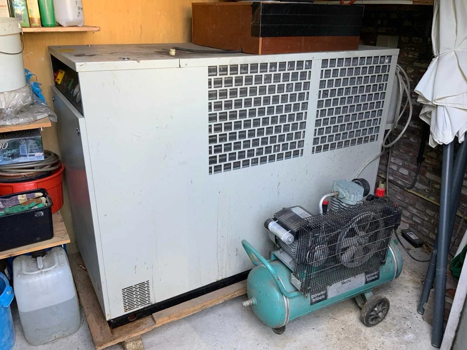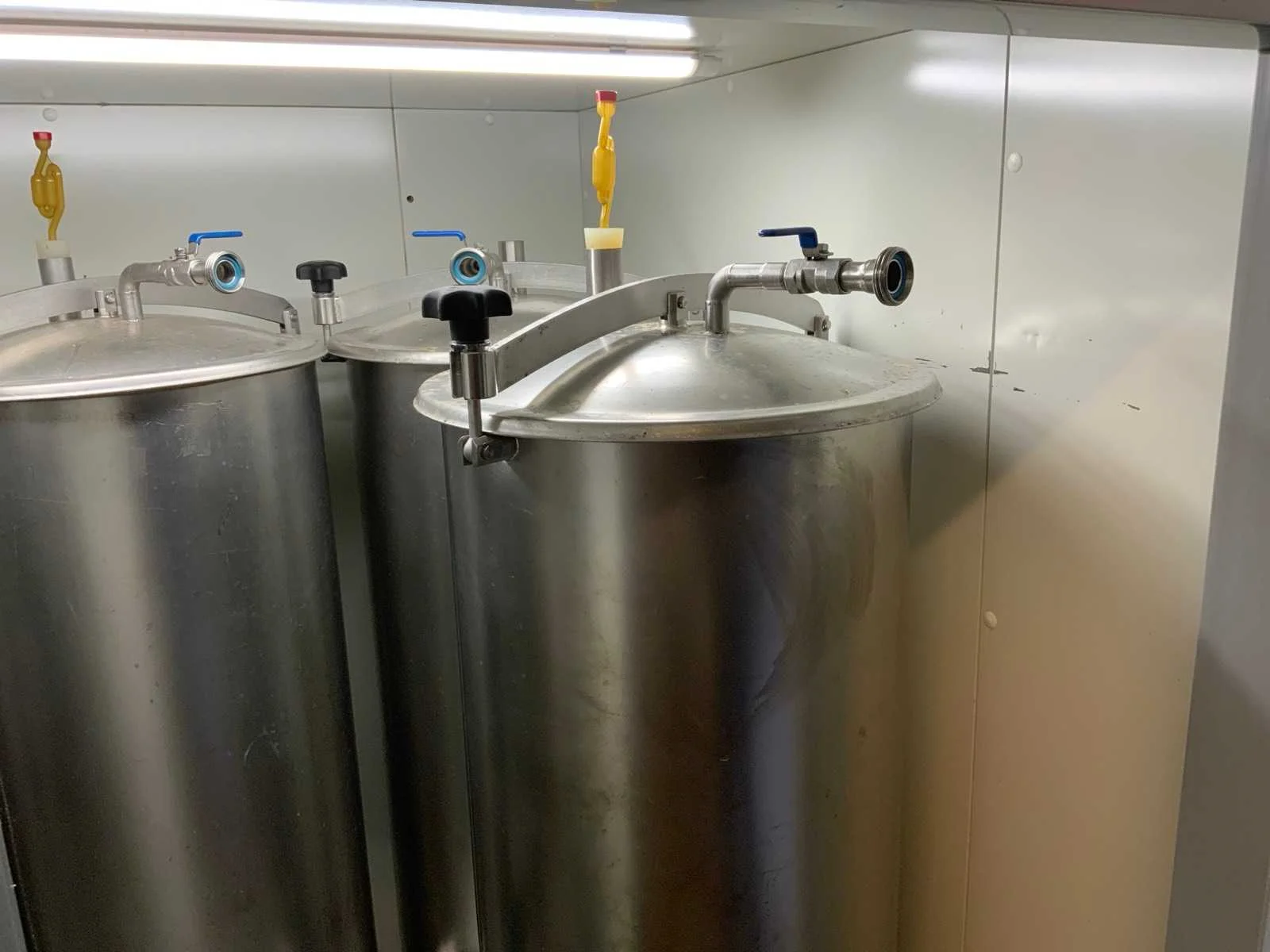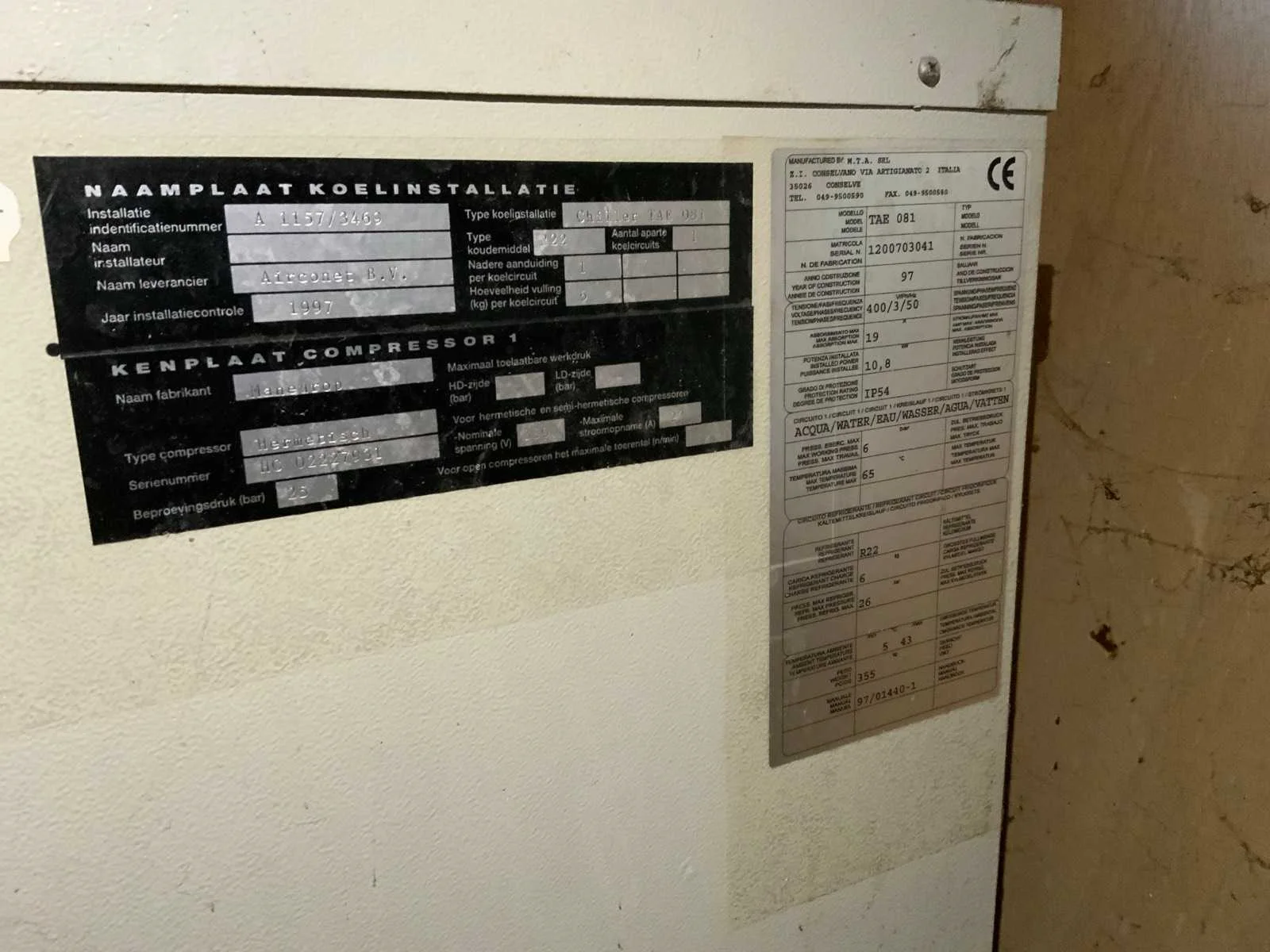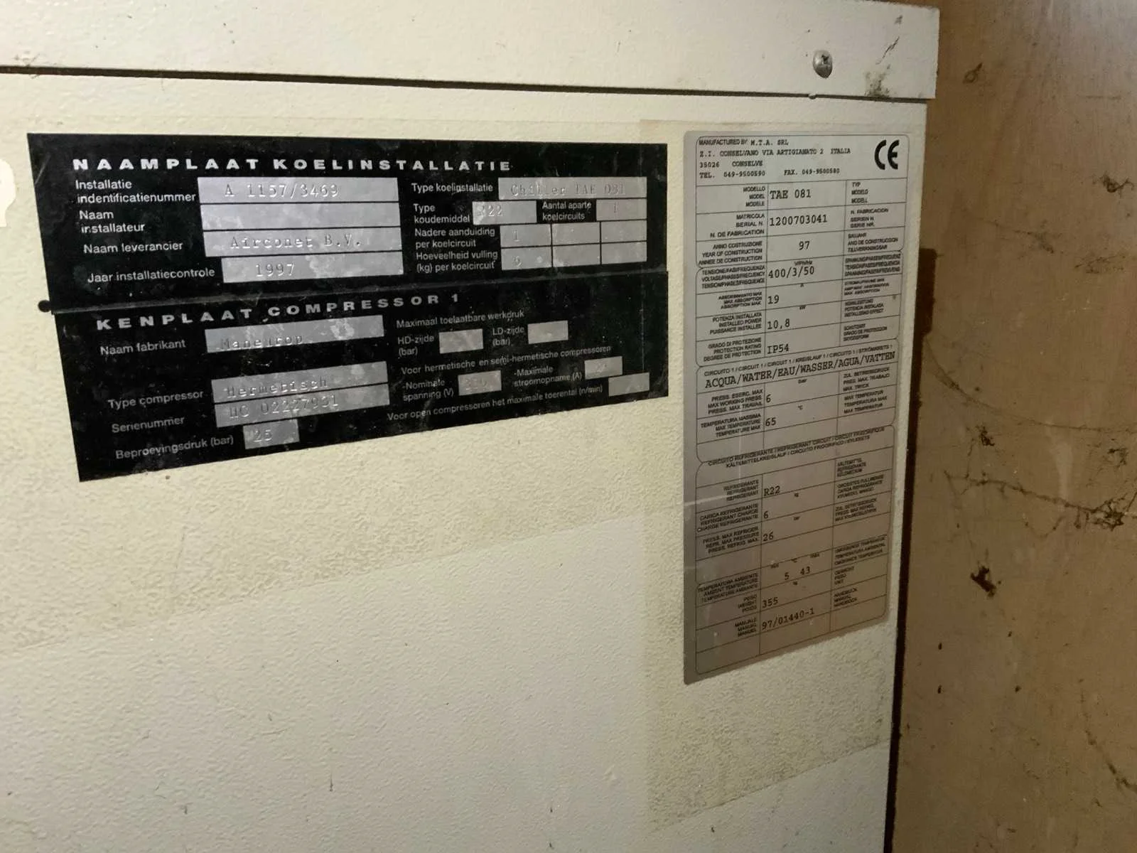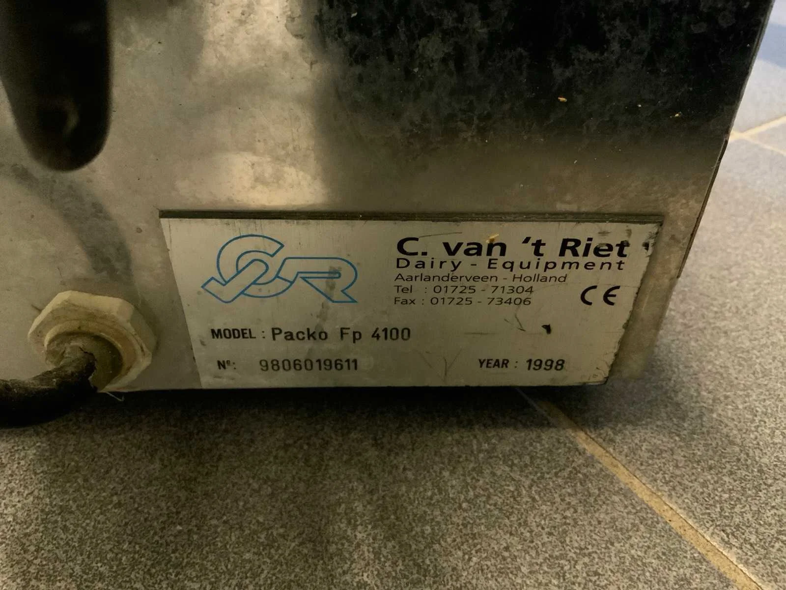 Voorzien van koelcel met koelunit “Polair MM 111 SF” (recent vervangen, binnenmaten: D1890 x B1920 x H1960 mm); 5 lageringvaten van 200 L; 1 afvulvat van 200 L met roermechanisme aangedreven door Nord SK 64L/4 motor (0,18 kW); Rotor-pomp voor afvullen van bierfusten; extra pomp van C. van ‘t Riet voor transport van hoofdvergistingsvloeistof naar lagervaten; complete brouwinstallatie type 9711000116, bouwjaar 1997 (920x3000x2100 mm); maischketel 250 L met Nord-roerwerk en indirecte verwarming via dubbelwandige waterbuffer (2 x 6 kW verwarmingselementen, uitbreiding tot 18 kW mogelijk); spoelfilterketel 250 L met geperforeerde filterplaat, pijlglas, terugfiltermechanisme, reinigingsluik (235x185 mm); kookketel 250 L met oliegevulde dubbelwandige verwarming (2 x 6 kW + uitbreidbaar), geïsoleerd deksel met sproeibol en RVS NW100 condensleiding, ventilator en watervernevelaar; opvang- en uitloopreservoir 157 L met schuine bodem, NW50 uitloop; besturingskast met digitale temperatuurregeling en software; CIP-unit type 0001000418, bouwjaar 2000 (890x1610x1710 mm), met twee RVS reinigingsketels van elk 100 L, dubbele wand met indirecte verwarming (2 x 6 kW), FP4600 reinigingspomp, aparte RVS besturingskast en volledige leidingwerkset; gistinstallatie type 9711000216, bouwjaar 1997 (1100x2300x1900 mm); twee dubbelwandige hoofdvergistingsvaten van 280 L met koelwatercirculatie, roerwerk, sproeibol en beluchtingspijp; platenkoeler type Sigma 7 (300 L/u capaciteit, 7000 L/u koelwater); chiller model TEA 081 (koelvermogen 27 kW, 1650x743x1350 mm, max. 8 kW); 2 platenwisselaars type 410/40; 2 RVS frames, in hoogte verstelbaar; uitgebreid RVS leidingwerk inclusief vlinderkleppen, T-stukken, puntstukken, koelleidingen en kijkglas; digitale pH-meter HI9024; geïsoleerde kweekkast met ventilatie en temperatuurregeling (440x640x480 mm); thermostatische mengkraan (50–90 °C, met thermometeraansluiting); watermeter met elektronische uitlezing en optionele PC-aansluiting. Nee Merk: C. van ‘t Riet