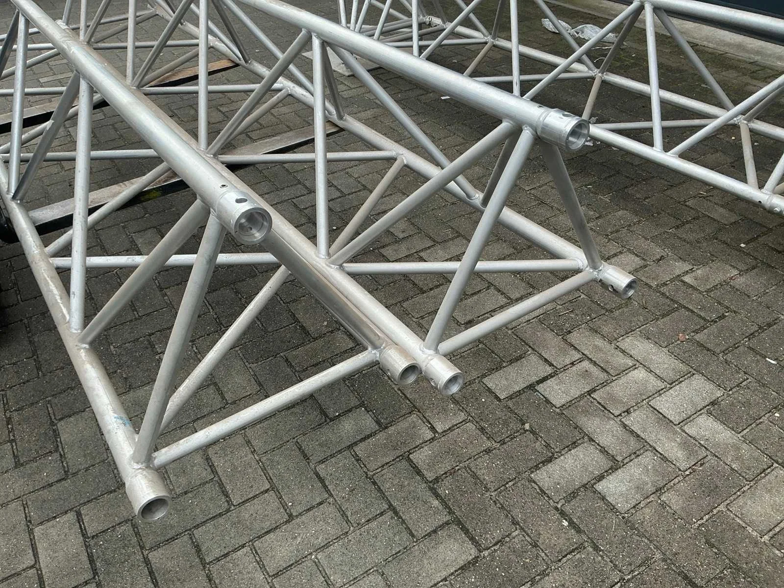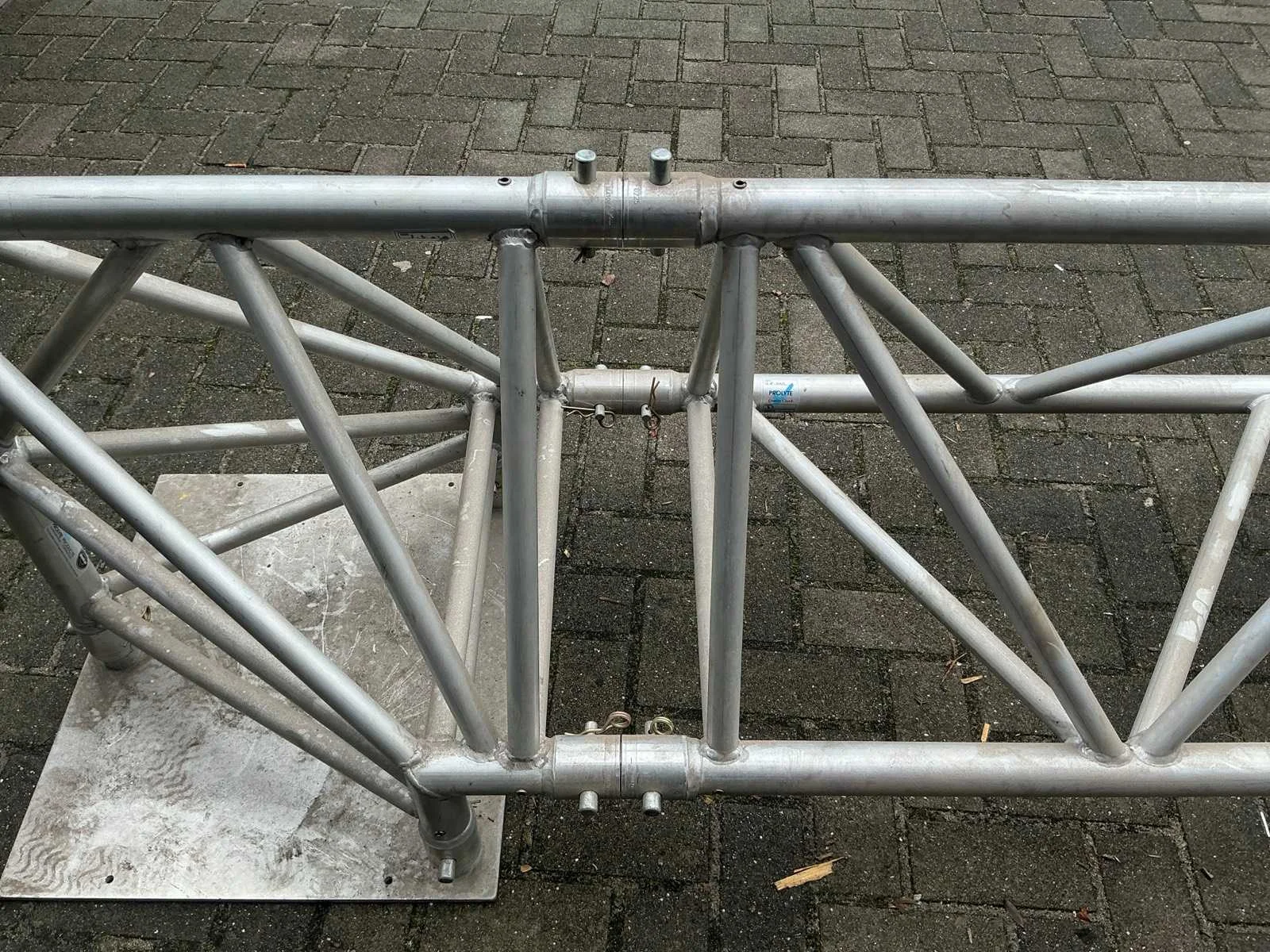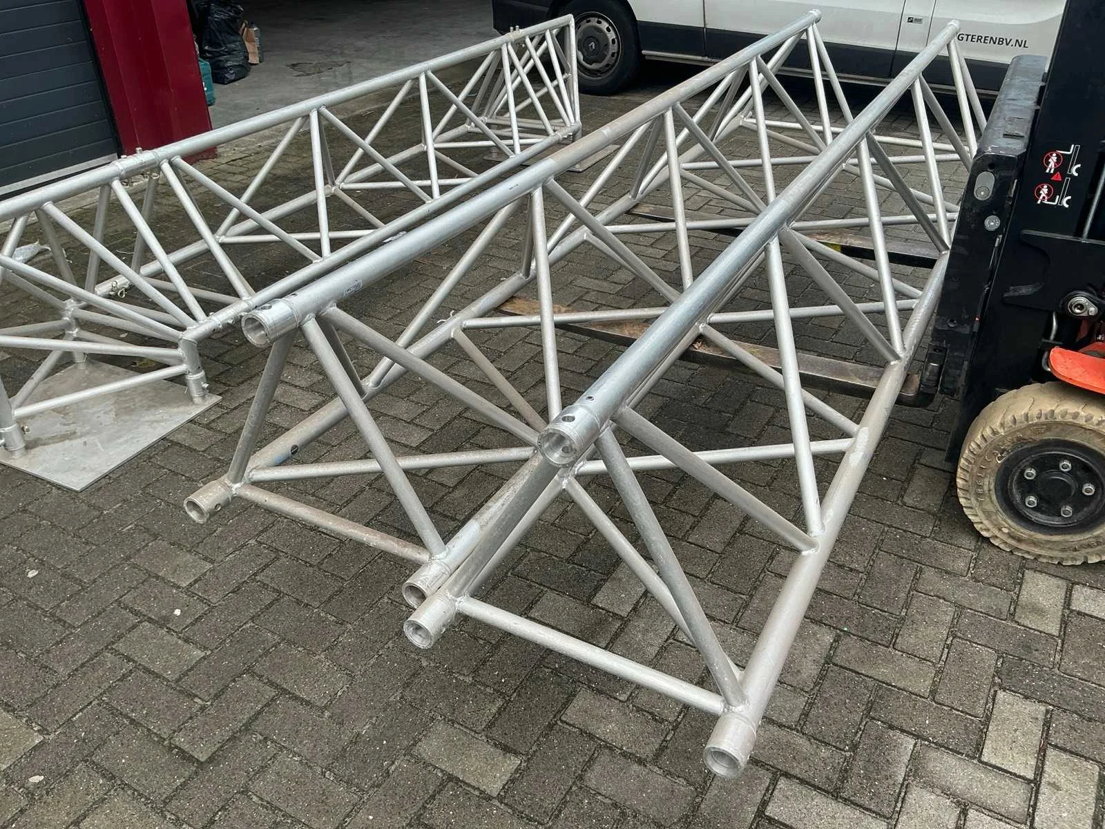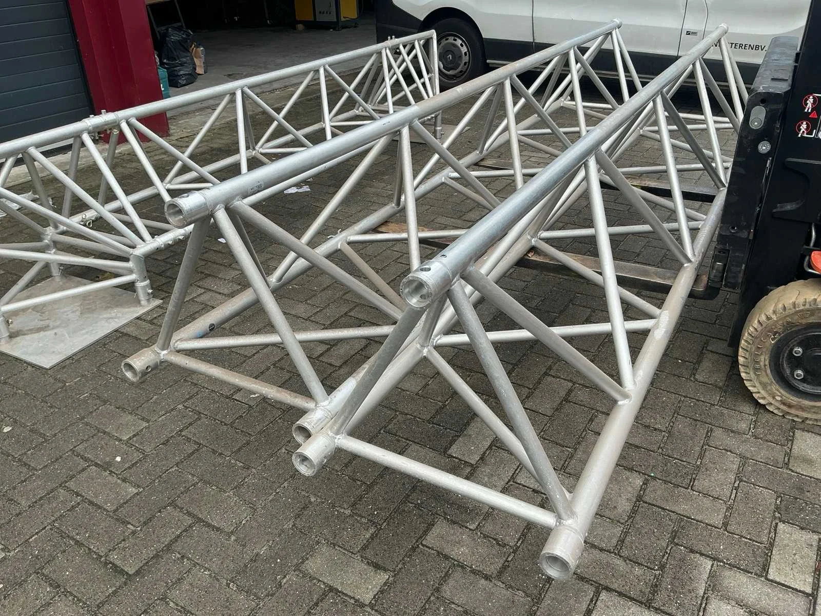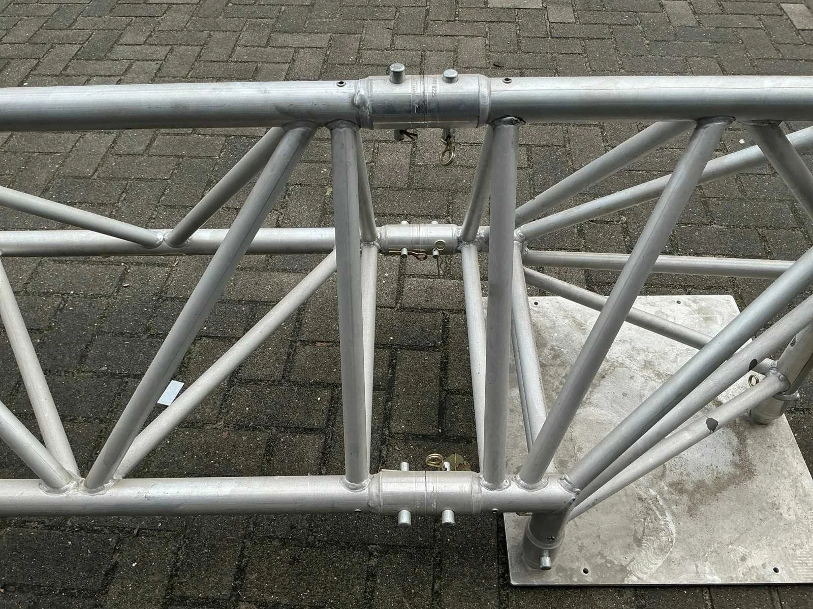 Bestaande uit 2x staander 340cm, 1x bovenzijde 3750 Nee Merk: Prolyte Driehoek model: true Totale afmeting L: 3750mm Totale afmeting Breedte: 600mm Totale afmeting Hoogte: 4050mm