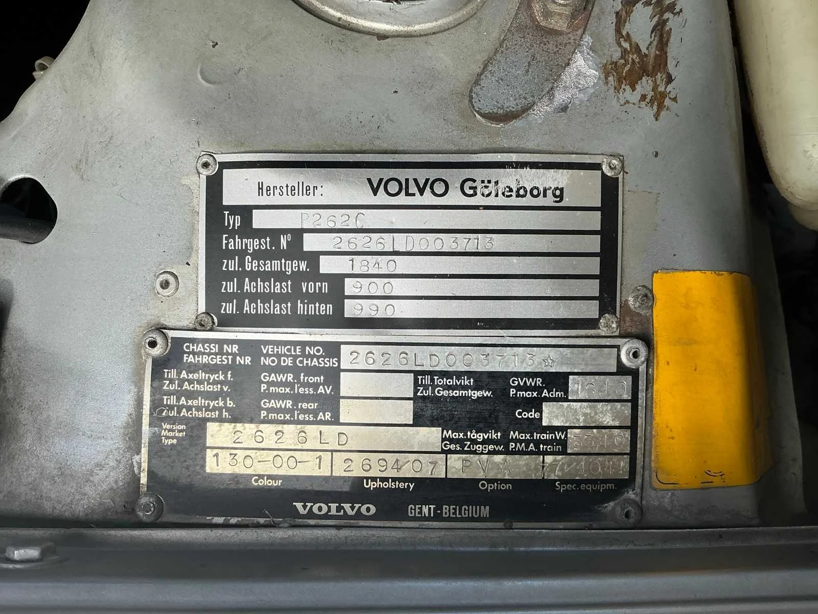 Voorzien: elec ramen, airco, leder bekleding, Gas tank 60L, 3 op 4e versnelling overdrive, stuurbekrachtiging, 4 schijfremmen, ander blok op kenteken 4 cilinder 2.2L. Nee Kenteken: 41-GLD-8 Merk: Volvo Model: 262C Type: Bertone Bouwjaar: 1979 Afgelezen kilometerstand: 227405km Cilinderinhoud: 2127cc Vermogen (kW): 80kW Brandstof: LPG Chassisnummer: 2626LD003713 Laadvermogen: 0kg Datum eerste toelating: 1979-03-19 Datum eerste toelating (NL): 2008-07-11 APK vervaldatum: 2027-08-27 Vermogen (pk): 109hp Aantal zitplaatsen: 4 Maximaal trekgewicht ongeremd: 735kg Maximaal trekgewicht geremd: 1500kg Kleur: grijs Transmissie: Handgeschakeld Emissieklasse: 0 Aantal deuren: 2 Aantal sleutels: 2 Ledig gewicht: 1370kg Velgmaat: 14 Bruto BPM (NL): 0€ Aantal cilinders: 4 Carrosserie: sedan Nationaliteit documenten: nederlands Carfax Link: https://was.carfax.eu/v0/api/ccdid/5100016408/svc/201/vinreg/41GLD8/checksum/eyJhbGciOiJIUzI1NiIsInR5cCI6IkpXVCJ9.eyJleHAiOjE3NjMxMjE1ODZ9.IWQo5zKxywxK78P3WVtSqDcqmD14eLiR_QUBIKuYwy8 Start en rijdt: ja Keuringsrapport geldig tot: 27-08-2027 Self drive export possible : true Airconditioning: true Leder bekleed: true Inschrijvingsbewijs - deel 1 : Aanwezig Inschrijvingsbewijs - deel 2: Aanwezig