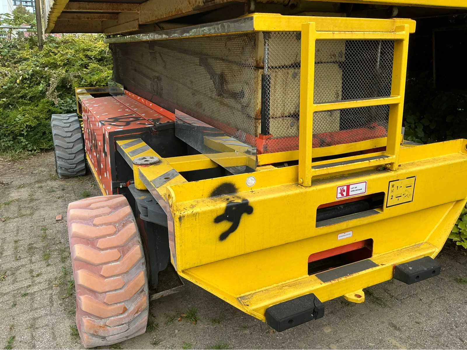 Start en rijdt, op locatie stilstaand door gebrek aan stroomvoorziening. Inclusief TÜV keuring 2021, hoogwerkerboek en CE certificaat. Aandrijving: accu. Rijsnelheid ingeschoven: 2,3 km/u, uitgeschoven: 0,5 km/u. Max scheefstand: 3 graden. Max hellingshoek: 25%. Draaicirkel: 4,70 m. Max aantal personen: 2. Gebruik voor binnen en buiten. No Merk: Holland Lift Type: Q135EL24 Bouwjaar: 2007 Elektrisch: true Motorvermogen (kW): 19.2kW Schaarhoogwerker: true Werkhoogte: 15500mm Plateau afm. l: 13600mm Plateau afm. b: 2300mm Platform capaciteit: 750kg Afgelezen urenstand: 1200 Eigen gewicht: 7590kg Totale afmeting L: 4640mm Totale afmeting Breedte: 2470mm Totale afmeting Hoogte: 3060mm