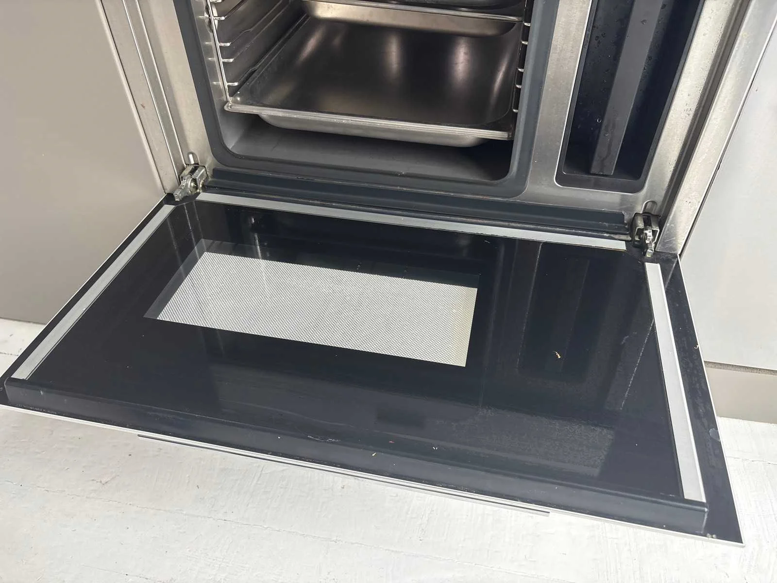 Miele DG6401 BRWS/R01 Built-In Steam Oven (Brilliant White) This Miele DG6401 BRWS/R01 is a high-end built-in steam oven in a striking brilliant white finish. It uses Miele’s MultiSteam technology for fast heat-up and even steam distribution, enabling simultaneous cooking on multiple levels without flavour transfer. The oven is controlled via the DirectSensor touch interface for a clean, intuitive user experience. Key features include: • Brilliant white exterior • 45 cm height (compact built-in size) • 38 litre net internal capacity • Three modes: steam cooking, defrosting, and reheating • Over 75 automatic programs • Steam cooking on up to 3 levels at once • External steam generation for fast, even cooking • Temperature control from 40 °C to 100 °C • Non-pressurized steam operation • Removable water reservoir (sufficient for ~ 90 minutes of steam cooking) • Steam reduction near the end of program to avoid steam bursts when opening • Audible signal when target temperature is reached • Door: drop-down (bottom hinge) design Technical Data: • Appliance dimensions (H × W × D): 456 × 595 × 571 mm • Required niche (inbouw) dimensions: ~ 450 × 560–568 × 555 mm • Power rating: 3.6 kW • Voltage: 230 V, single phase • Weight: approx. 29 kg • Supplied accessories: 1 combi rack, 3 perforated stainless containers, 1 drip/condensate tray This oven is ideal for those who appreciate precision steam cooking, healthy preparation, and a sleek integrated look in the kitchen. No Merk: Miele Type: DG4301