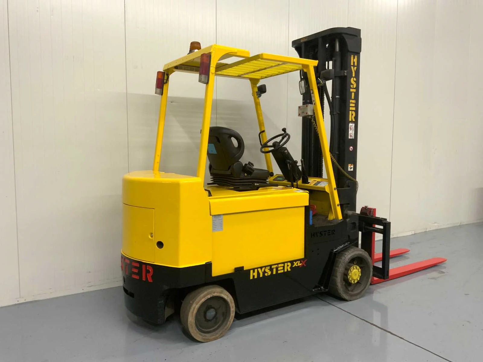 Met weegsysteem Nee Merk: Hyster Type: E4.50XLS Brandstof: Elektrisch Mast: Duplex Soort band: Volrubber banden Aantal wielen: 4 Afgelezen urenstand: 8779 Accu lader: true Side-shift: true Eigen gewicht: 8310kg Hefvermogen: 4320kg Lepellengte: 1500mm Max. hefhoogte: 4000mm Hefhoogte: 4000mm Vol rubber banden: true Totale afmeting L: 4000mm Totale afmeting Breedte: 1250mm Totale afmeting Hoogte: 2750mm