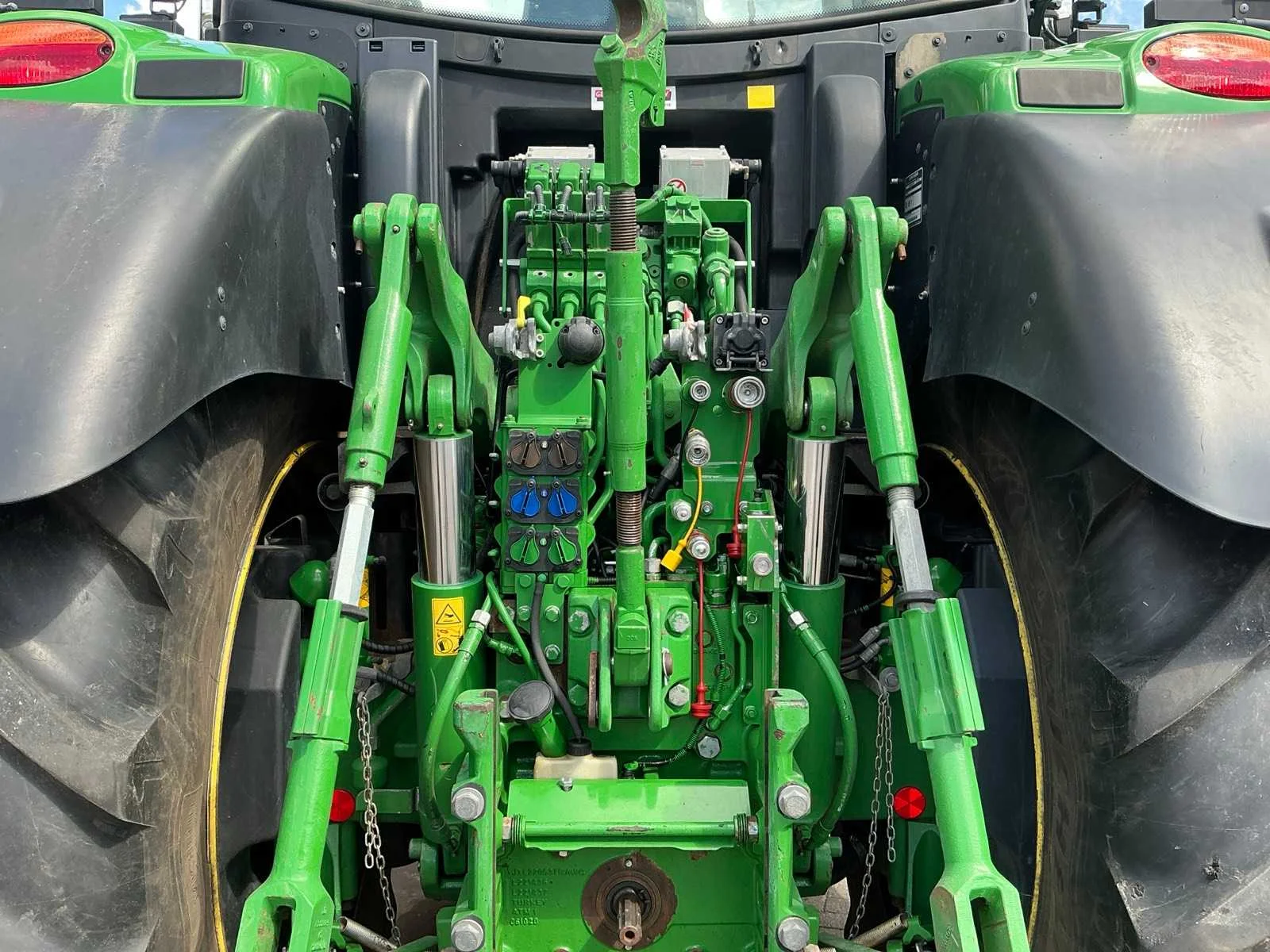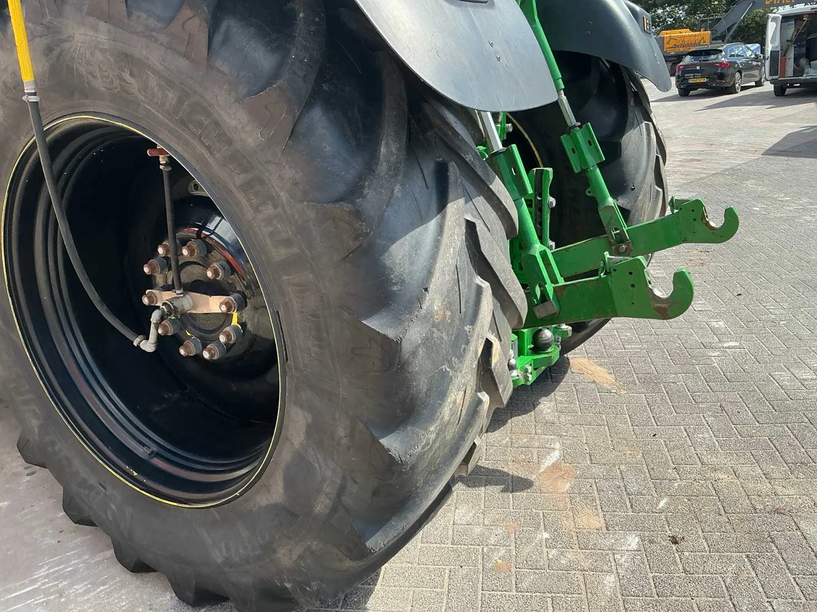 Voorzien van: Aftakas voor en achter, hef voor, 1x dubbele ventiel voor, 3 dubbele ventielen achter, 3 verschillende trekhaken achter 2x50 1x80, aftakas toerental: PTO: 540/540E/1000/1000E. banden lucht systeem, AutoPowr versnellingsbak. De John Deere 6230R (2021) is een vierwielaangedreven landbouwtractor met een 6,8 liter 6-cilinder PowerTech PSS-motor van 230 pk nominaal (tot 280 pk met IPM), een leeggewicht van ca. 9.300–9.500 kg, een toelaatbaar totaalgewicht van 15.000 kg (aslast voor 6.900 kg, achter 11.400 kg), een hefvermogen achter van 9.400 kg, een hydrauliekpomp van 114–155 l/min, PTO-standen 540/540E/1000/1000E, een brandstoftank van 390 liter + 25 liter AdBlue, een maximale trekhaakbelasting van 38.000 kg, transmissieunit AutoPowr (CVT), met een CommandView III cabine inclusief touchscreen en GPS/AutoTrac-voorbereiding. Nee Merk: John deere Type: 6230R Bouwjaar: 2021 Serienummer: 1L06230RCMP105835 Kenteken: TFR-80-B Motorvermogen (kW): 205kW Afgelezen urenstand: 3600 Versnellingsbaktype: AutoPowr Aantal hydraulische ventielen voor: 3 Aantal hydraulische ventielen achter: 9 Bandenmaat voor: 600/60R30 Bandenmaat achter: VF710/60R42 Load sensing: true Fronthefinrichting: true Frontaftakas: true Cabine: true Luchtgeveerde stoel: true Eigen gewicht: 9500kg Totale afmeting L: 5500mm Totale afmeting Breedte: 2600mm Totale afmeting Hoogte: 3050mm Kentekenpapieren compleet?: true Chassisnummer: 1L06230RCMP105835 Datum eerste toelating: 2021-04-13 Nationaliteit documenten: nederlands Zelf rijdend exporteren: ja