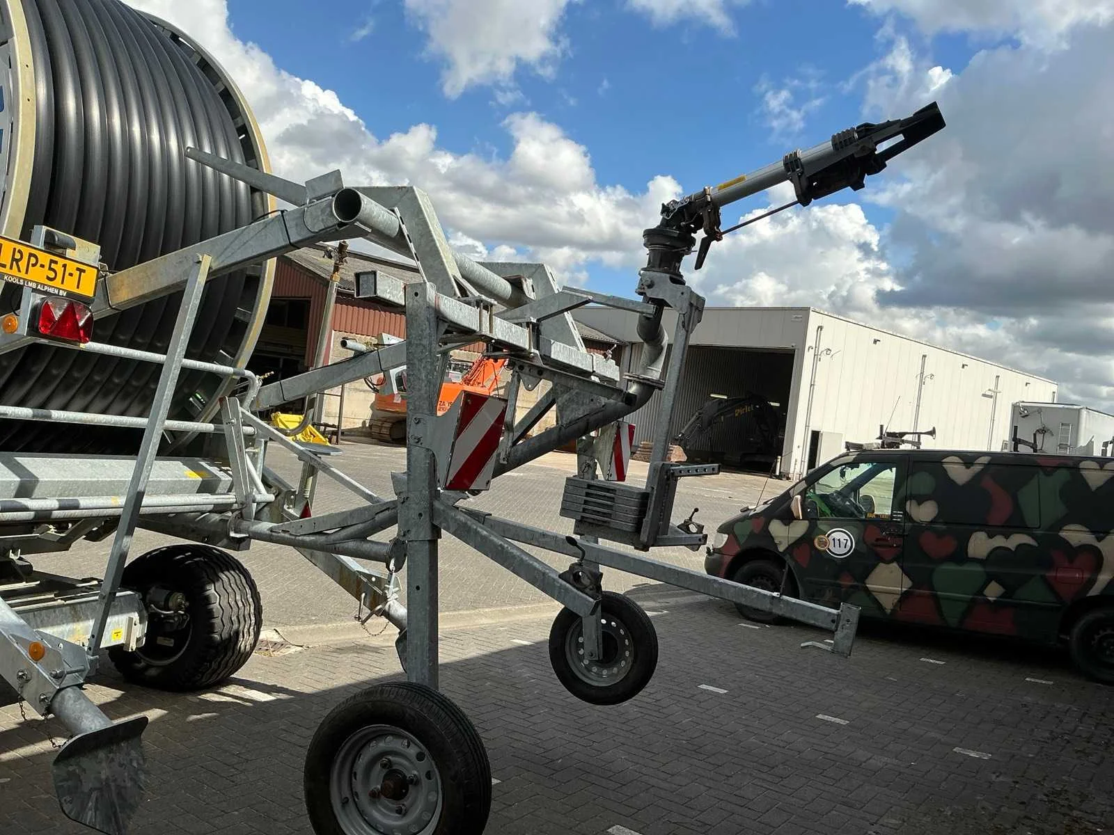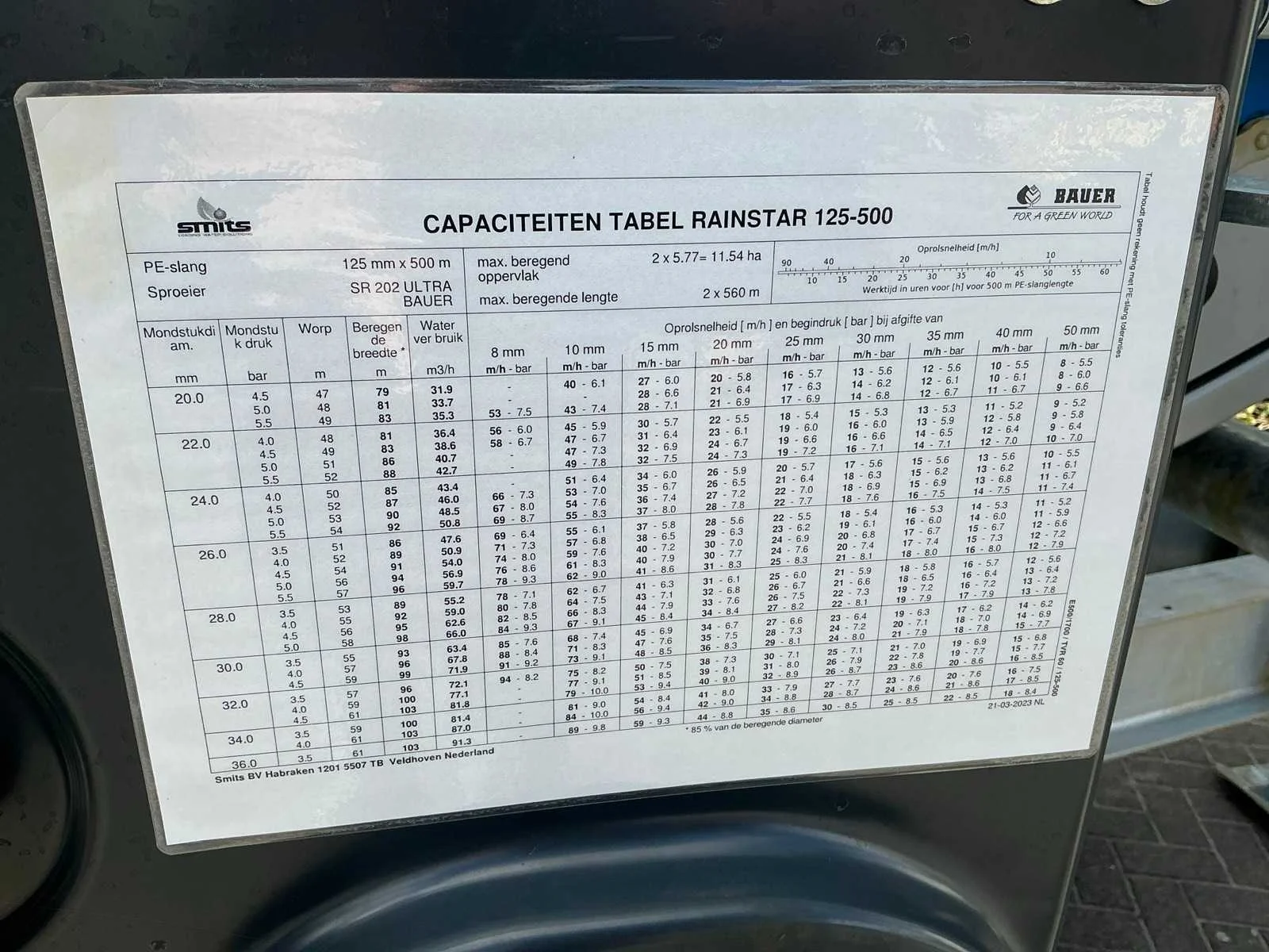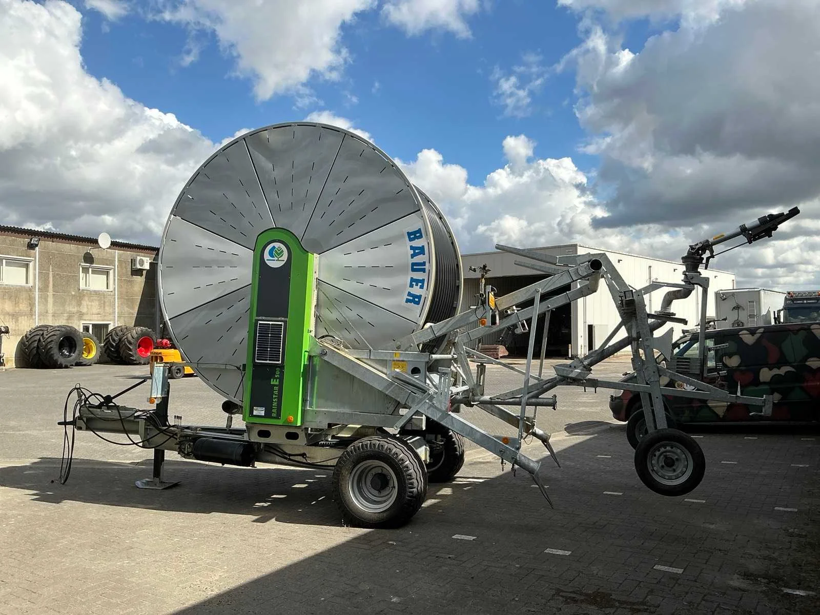 Voorzien van: met sproeikanon, amper gebruikt, urenstand 1371 bedrijfsuren beregening, Nee Merk: Bauer Lengte: 5000cm Type: E500 Bouwjaar: 2024 Serienummer: VA9RE5BB1RVB37031 Kenteken: LRP-51-T Diameter circa: 125mm Steunpoten: true Eigen gewicht: 8020kg Totale afmeting L: 9000mm Totale afmeting Breedte: 2600mm Totale afmeting Hoogte: 4100mm