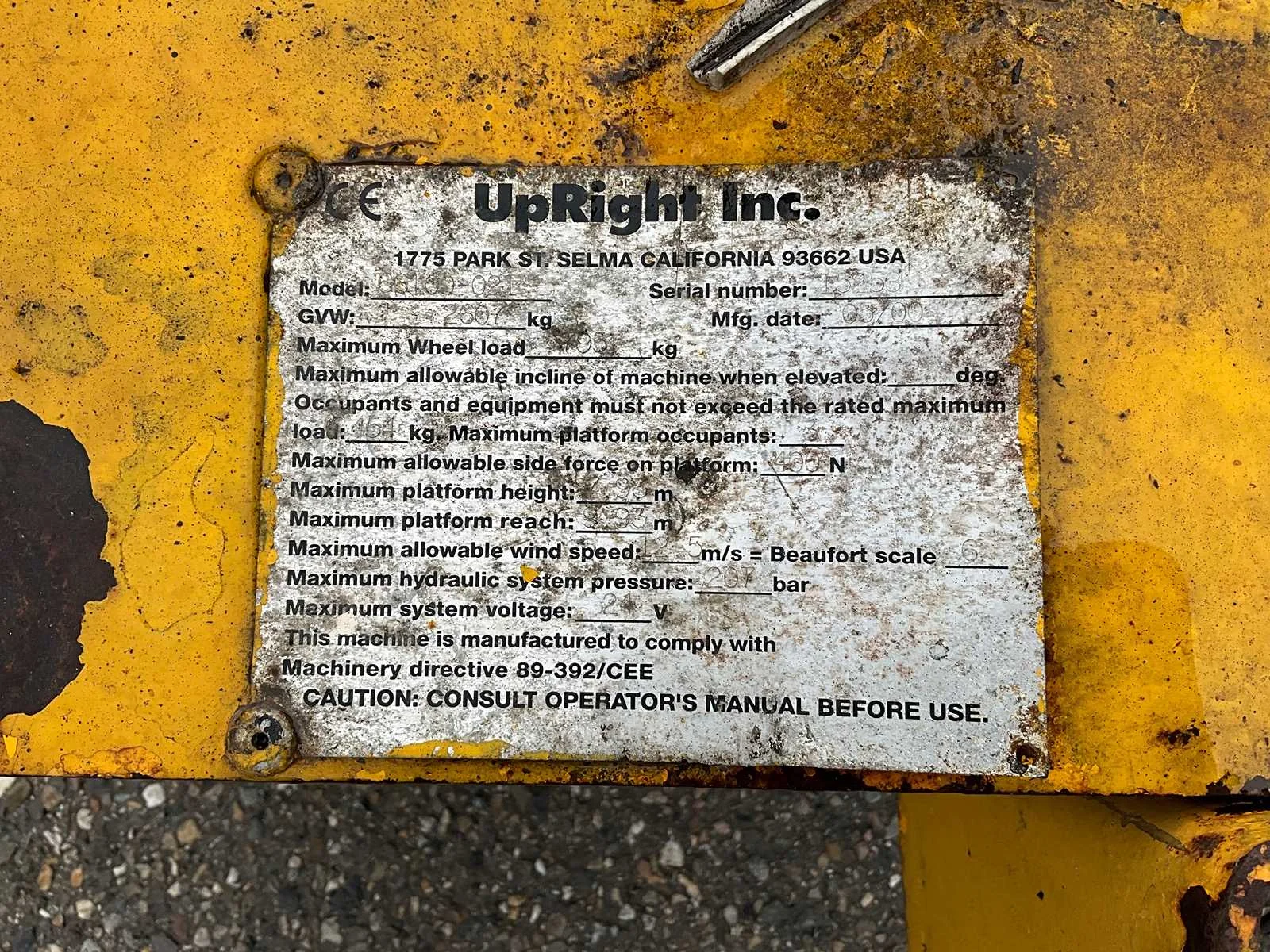 Uitschuifbaar platform, No Merk: UpRight Type: 66100-021 Serienummer: 15258 Elektrisch: true Schaarhoogwerker: true Werkhoogte: 9930mm Plateau afm. l: 2200mm Plateau afm. b: 1100mm Accu lader: true Afgelezen urenstand: 420 Eigen gewicht: 2607kg Totale afmeting L: 2500mm Totale afmeting Breedte: 1250mm Totale afmeting Hoogte: 2250mm