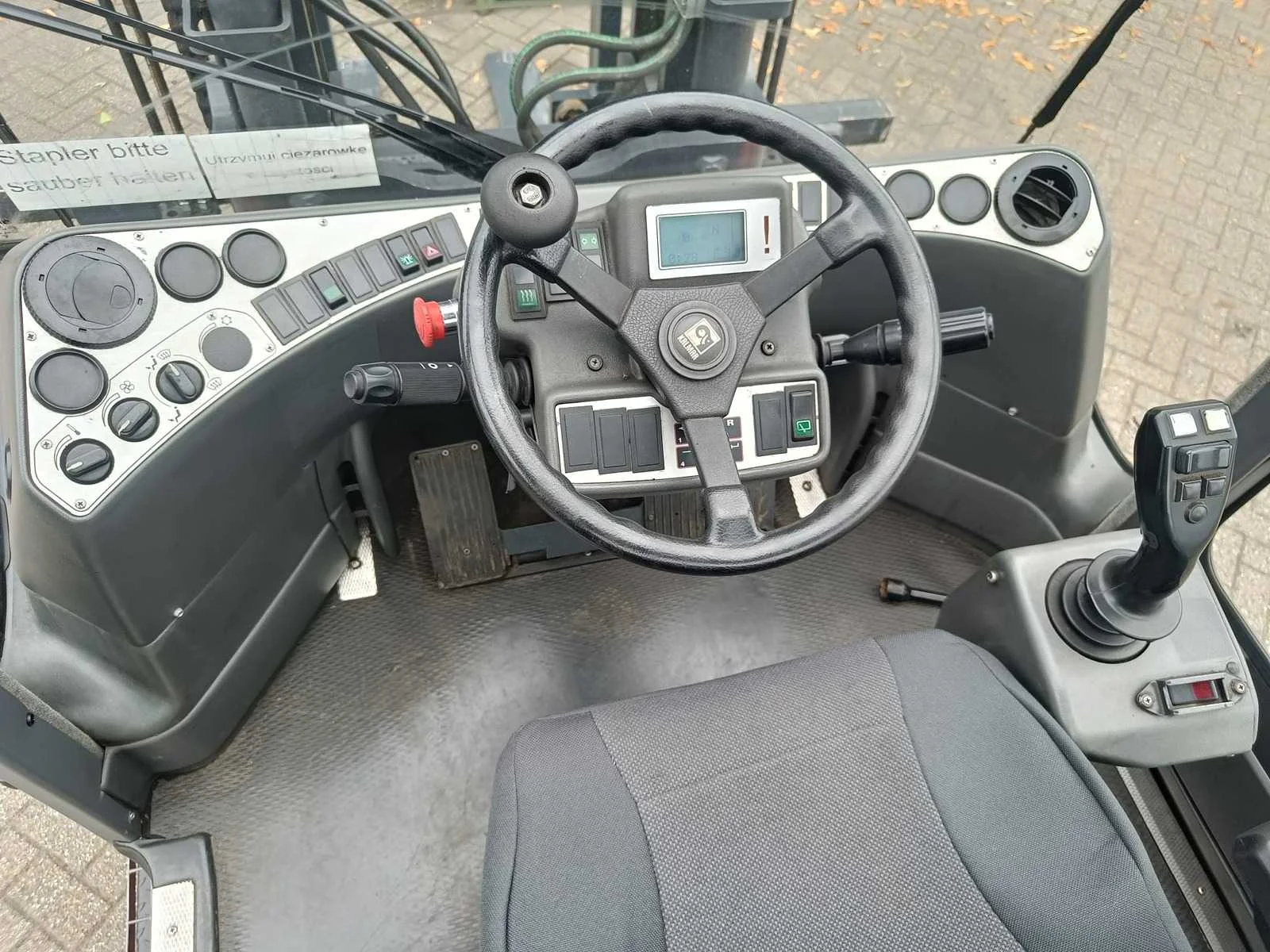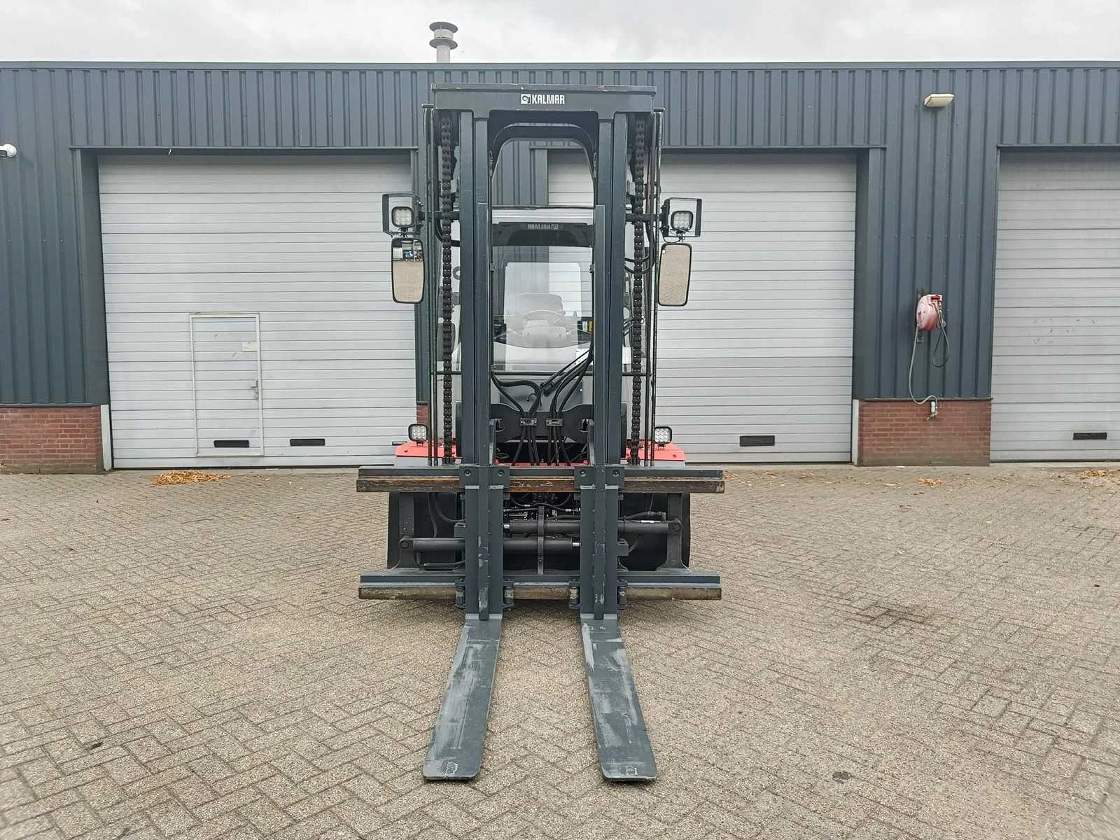 Voorzien van kachel, 48kW, Zonder lader. Nee Merk: Kalmar Type: ECF 90-6 Bouwjaar: 2013 Serienummer: A60200288 Brandstof: Elektrisch Soort band: 8.25-15 Aantal wielen: 4 Afgelezen urenstand: 19022 Side-shift: true Roterend vorkenbord: true Hydraulisch verstelbare lepels: true Eigen gewicht: 8700kg Hefvermogen: 9000kg Lepellengte: 1530mm Max. hefhoogte: 3500mm Hefhoogte: 3500mm Vol rubber banden: true Totale afmeting L: 4700mm Totale afmeting Breedte: 2100mm Totale afmeting Hoogte: 3000mm