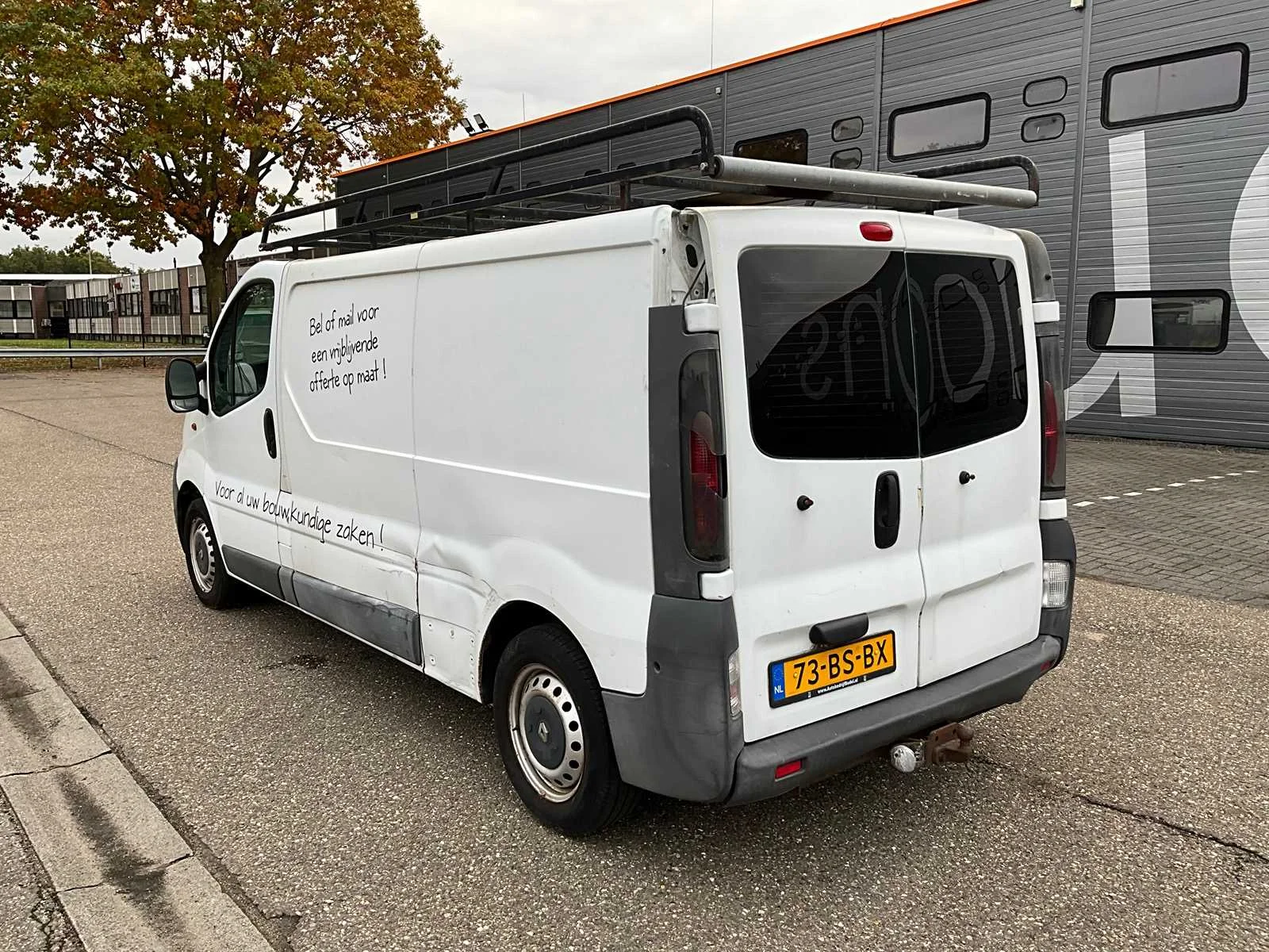 Motor problemen/blijft niet lopen, diverse schades, 5 versnellingen handgeschakeld, dakrek, trekhaak No Kenteken: 73-BS-BX Merk: Renault Model: Trafic Bouwjaar: 2005 Chassisnummer: VF1FLBBB55V235134 Afgelezen kilometerstand: 269692km Cilinderinhoud: 1870cc Vermogen (kW): 60kW Brandstof: diesel Datum eerste toelating: 2005-01-17 Datum eerste toelating (NL): 2005-01-17 APK vervaldatum: 2025-03-31 NAP status: Logisch Aandrijving: FWD Transmissie: Handgeschakeld Kleur: niet van toepassing Nationaliteit documenten: Nederland Bruto BPM (NL): 0 Aantal deuren: 4 Ledig gewicht: 1701kg Laadvermogen: 500kg Vermogen (pk): 82 Aantal cilinders: 4 Carrosserie: gesloten opbouw Emissieklasse: 4 Maximaal trekgewicht ongeremd: 750 No self drive export!: true