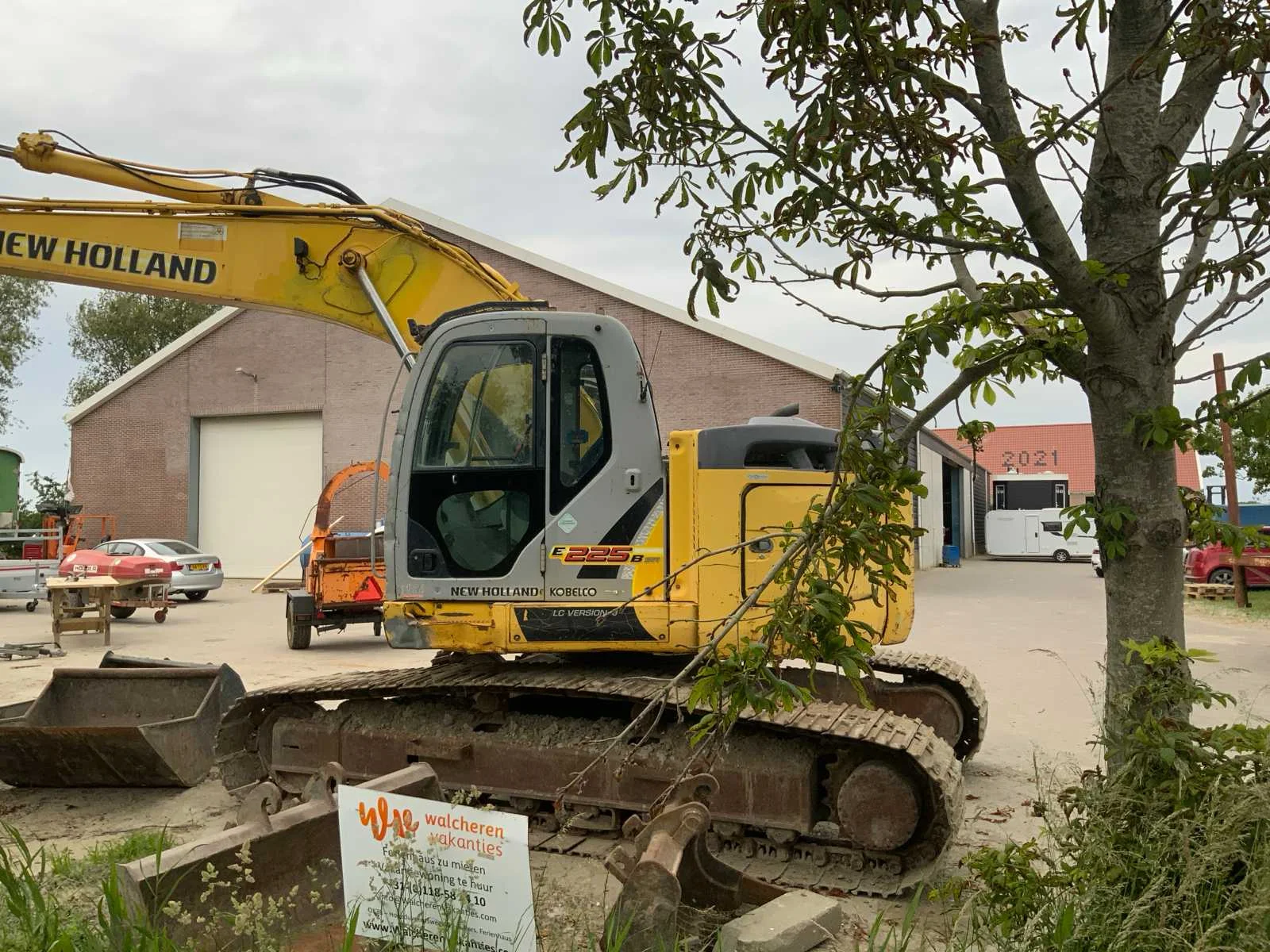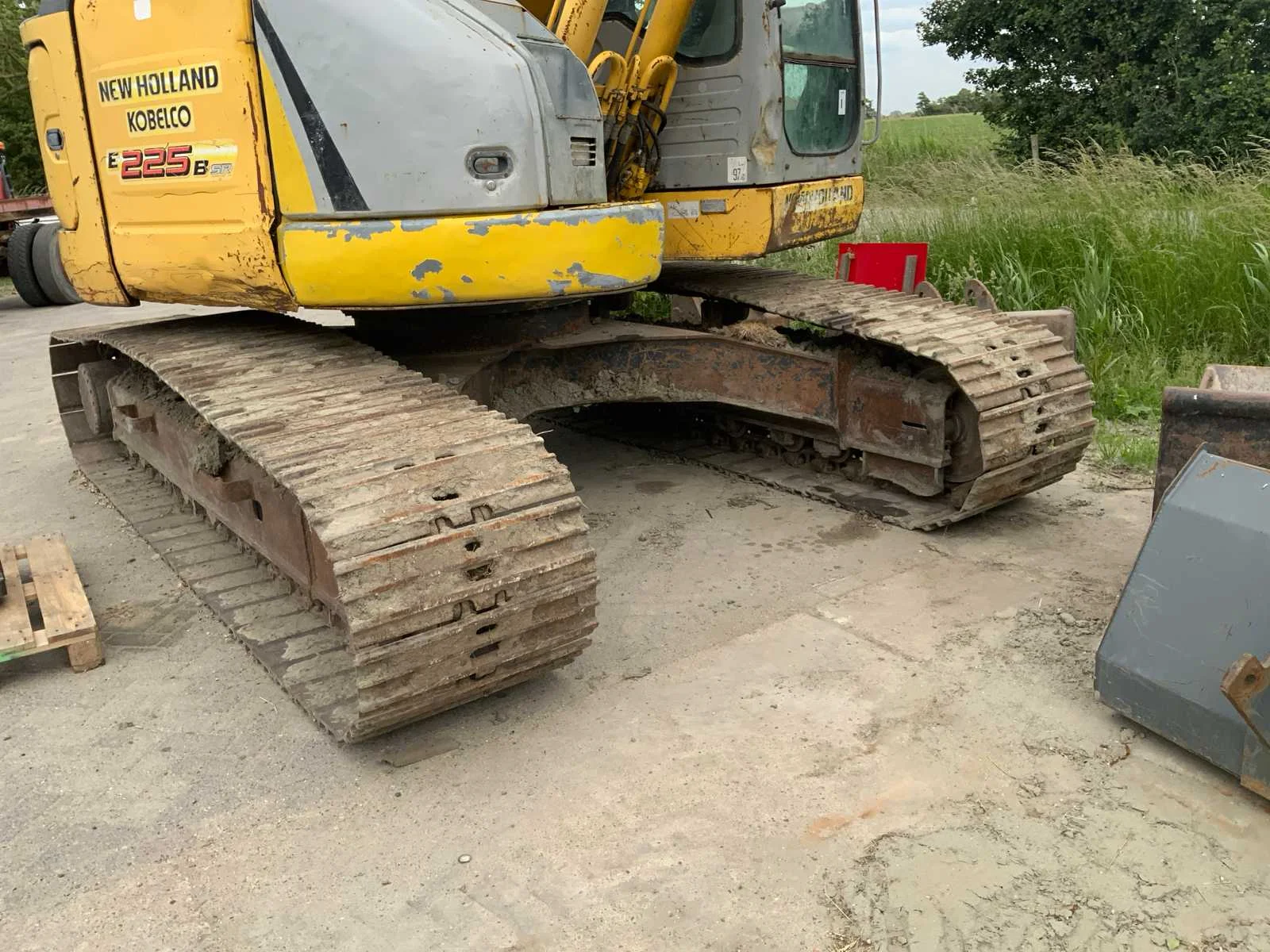 Voorzien van hydraulische snelwissel ‘CW 30’, extra functie lepelsteel, Nee Merk: New Holland / Kobelco Type: E225BSR Bouwjaar: 2008 Serienummer: LA03-02035 Merk motor: Hino Motorvermogen (kW): 114kW Aantal cilinders: 4 Brandstof: Diesel Gieklengte: 8200mm Met graafbak: true Graafbak afm. l: 1100mm Graafbak afm. b: 1800mm Graafbak afm. h: 680mm Rups breedte: 700mm Cabine: true Afgelezen urenstand: 11174