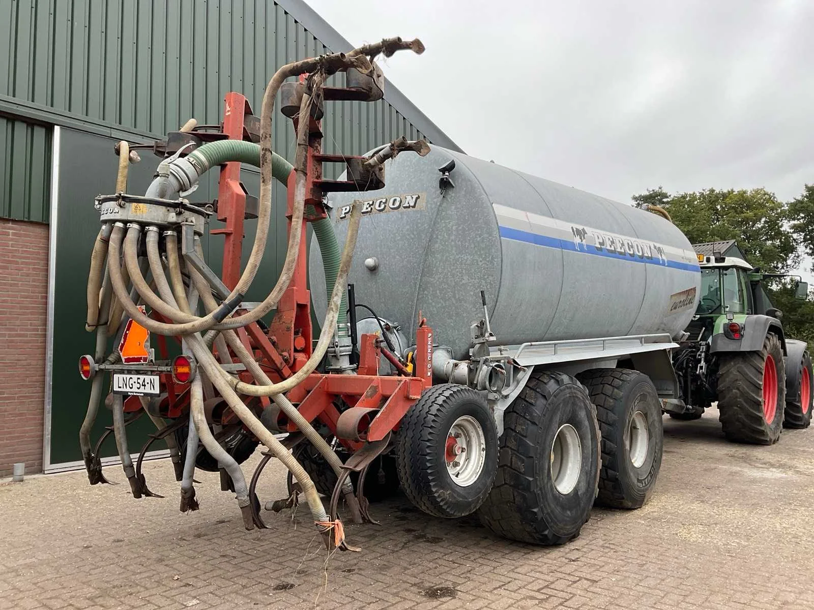 Voorzien van: K80 aanspan, geveerde dissel, Star 84 MV LA SX D100 STD aftakas aangedreven vacuümpomp (bouwjaar 2015, 14420l/min), Peecon 5 meter bouwlandbemester, 4-punt hefinrichting, hydraulische steunpoot, Nederlandse kentekenregistratie, Nee Merk: Peecon Type: Euroline 18000 Bouwjaar: 2000 Serienummer: 180500 Kenteken: LNG-54-N Tankinhoud: 18m³ Bandenmaat: 24R20.5 Type pomp: Vacuümpomp Hefinrichting: true Totale afmeting L: 10100mm Totale afmeting Breedte: 2900mm Totale afmeting Hoogte: 3500mm