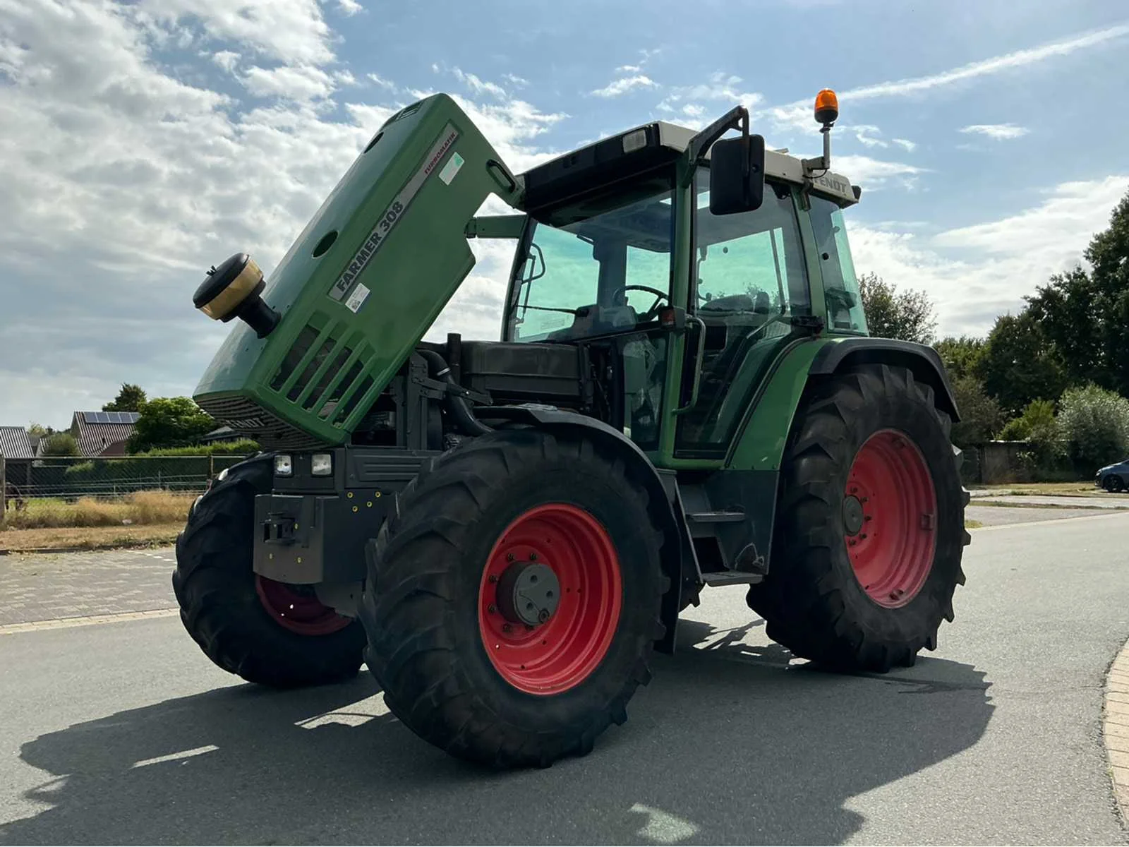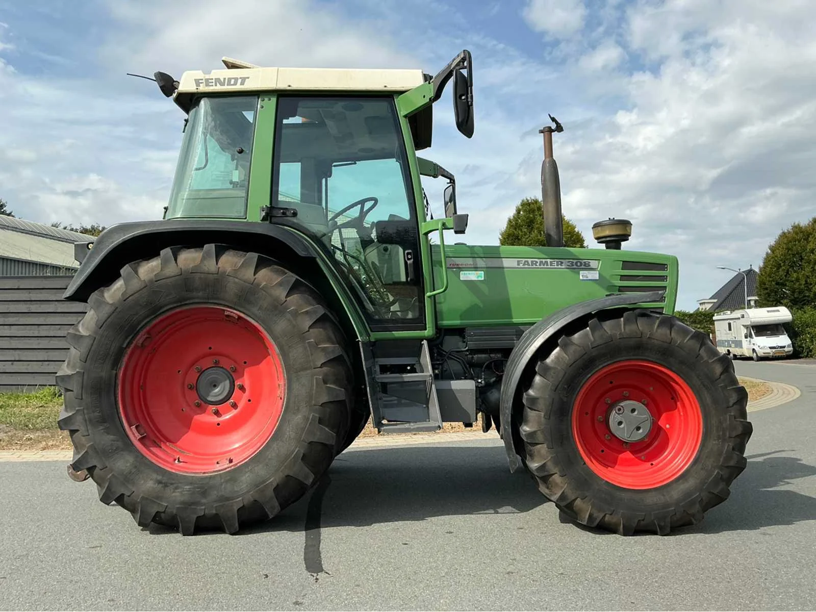 Voorzien van 4-cil' MWM' turbo dieselmotor; vermogen ca. 90 pk; 2x hydraulische omkeerinrichting en een hefvermogen van ca. 4000kg; luchtgeveerde stoel LET OP! dit voertuig heeft een Nederlandse kenteken registratie, bij afhalen dient u dit ter plaatste bij een derde partij te naam te stellen of te exporteren, hier zijn extra kosten aan verbonden. Nee Merk: Fendt Type: Farmer 308 Turbomatik Bouwjaar: 2000 Serienummer: 308214157 Kenteken: TNG-78-K Motorvermogen (kW): 65kW Afgelezen urenstand: 17440 Versnellingsbaktype: Handgeschakeld 21/21 Aantal hydraulische ventielen voor: 0 Aantal hydraulische ventielen achter: 2 Bandenmaat voor: 14.9R24 Bandenmaat achter: 18.4R34 Cabine: true Luchtgeveerde stoel: true Eigen gewicht: 4100kg Kentekenpapieren compleet?: true Chassisnummer: 308214157 Datum eerste toelating: 2000-06-30