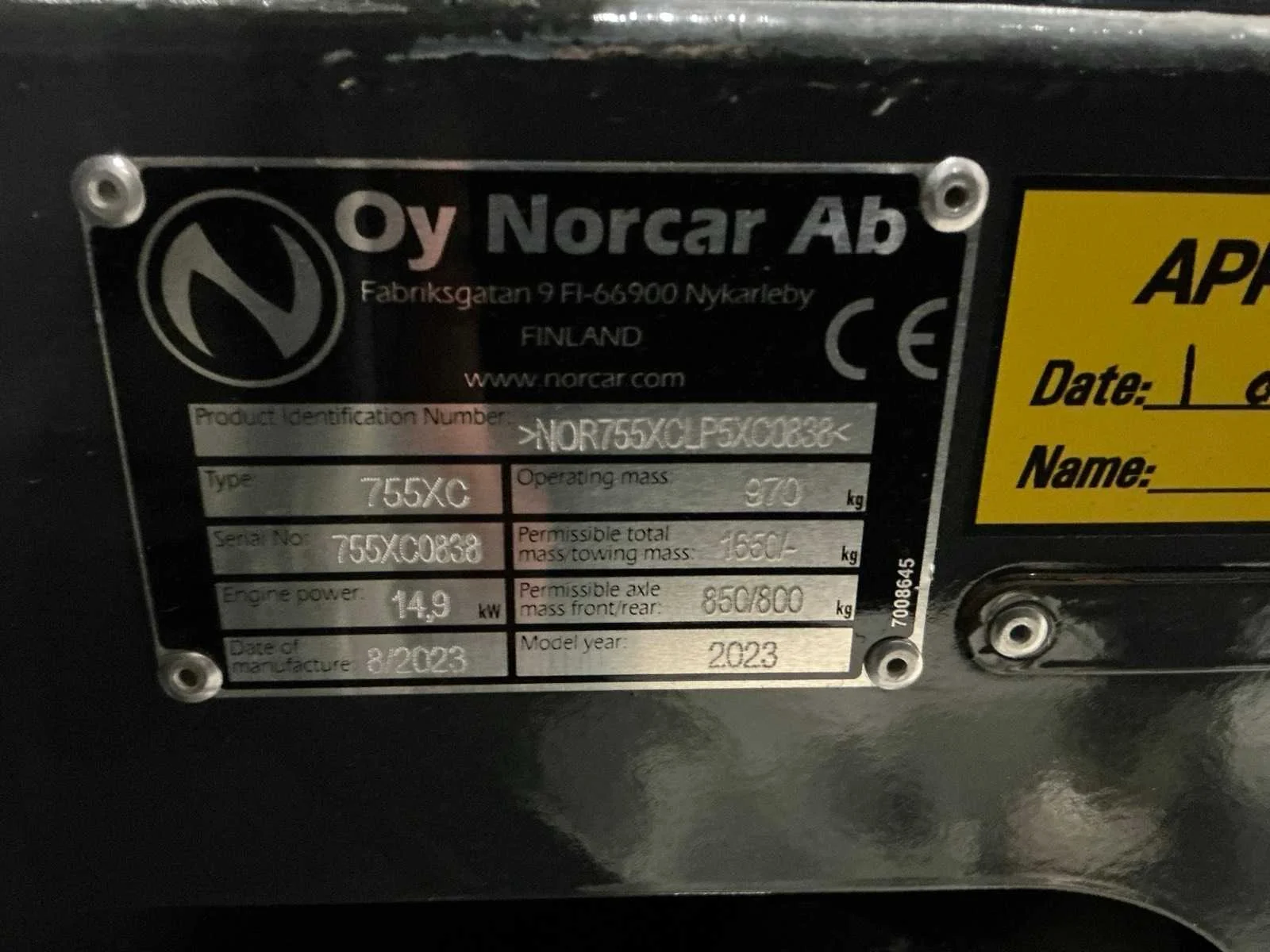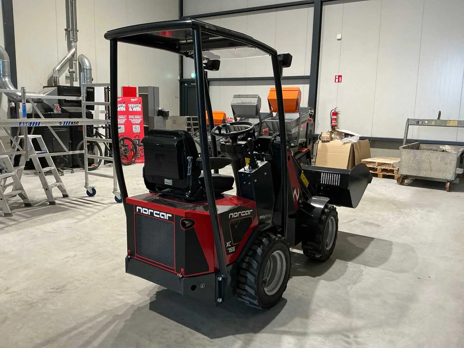 Voorzien van: Norcar 755XC (serienr 755X C0838, modeljaar 2023), eigen gewicht ≈ 970 kg, Kubota 722-motor 14,9 kW (20 pk), hydrauliek 29 l/min bij 200 bar, hefvermogen hydraulisch 1.150 kg, kiplast recht 750 kg / geknikt 490 kg, rijsnelheid tot 13 km/h, afmetingen ca. 2.270 × 900–1.100 × 1.980 mm Nee Merk: Norcar Type: 755XC Bouwjaar: 2023 Serienummer: 755XC0838 Merk motor: Kubota 722-motor 14,9 kW (20 pk) Motorvermogen (kW): 14.9kW Aantal cilinders: 3 Brandstof: Diesel Graafbak afm. l: 800mm Graafbak afm. b: 1180mm Graafbak afm. h: 600mm Bandenmaat: 23x8,5-12 Afgelezen urenstand: 5 Eigen gewicht: 970kg Totale afmeting L: 3000mm Totale afmeting Breedte: 1100mm Totale afmeting Hoogte: 2000mm