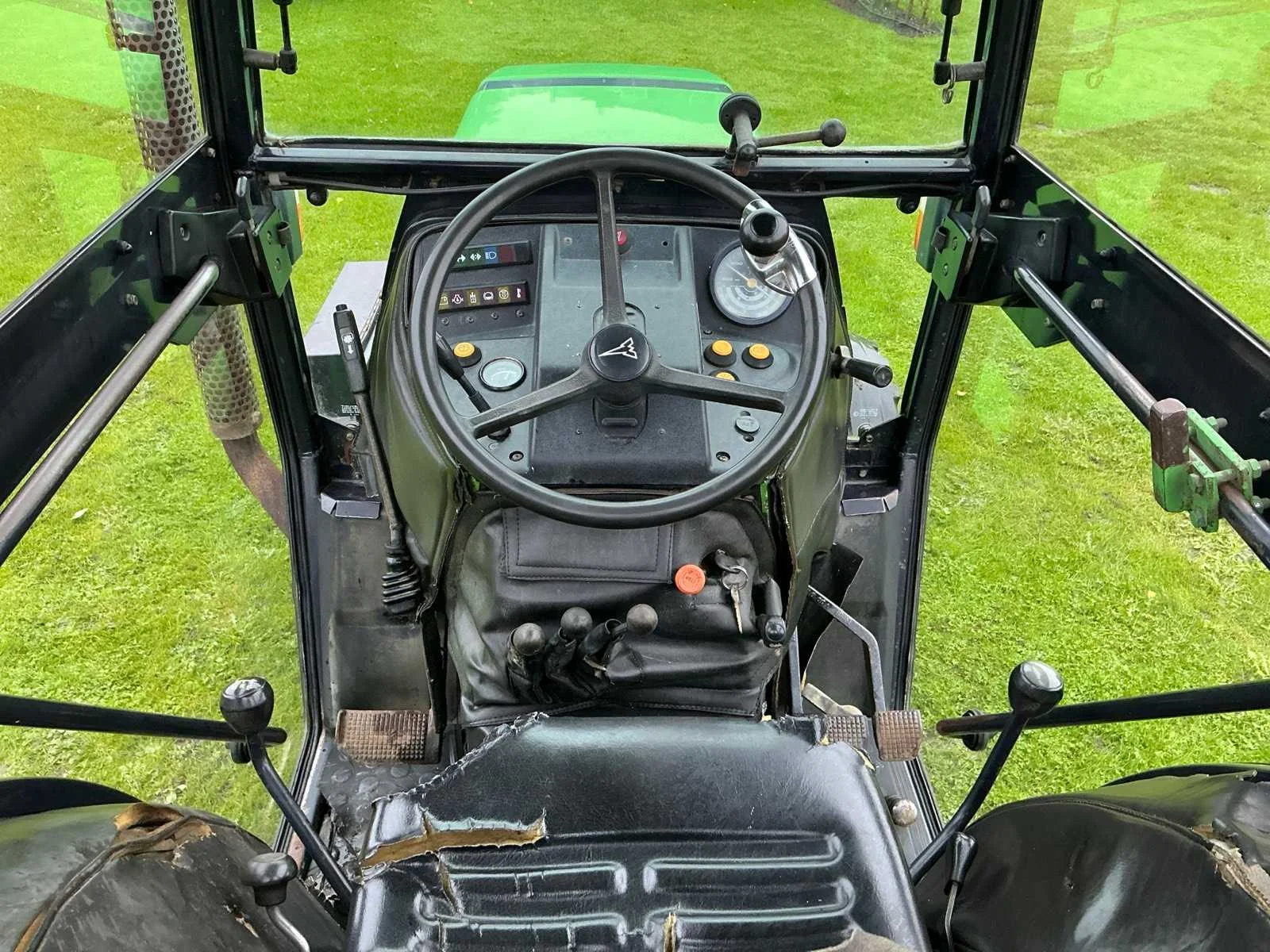 Voorzien van: 4cilinder Deutz dieselmotor, 2 xdubbelwerkende hydraulische ventielen, 1x enkelwerkend ventiel, remventiel, 540/750/1000 rpm aftakas Nee Merk: Deutz Type: DX 3.70F Bouwjaar: 1992 Kenteken: T-75-GHG Afgelezen urenstand: 7379 Versnellingsbaktype: Handgeschakeld Bandenmaat voor: 7.50-16 Bandenmaat achter: 380/85R28 Aantal hydraulische ventielen achter: 3 Cabine: true Chassisnummer: 77760419 Datum eerste toelating: 1992-05-19
